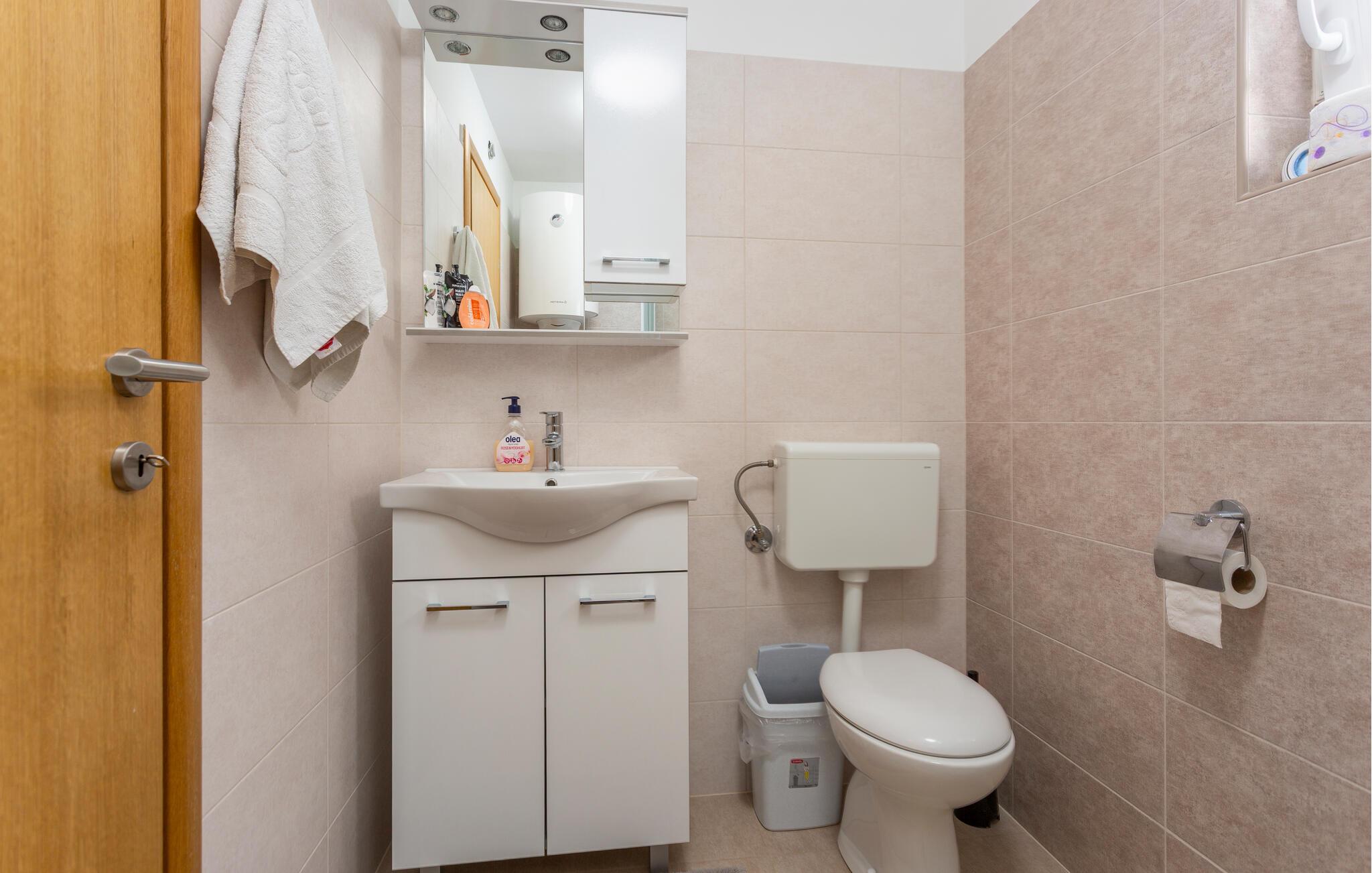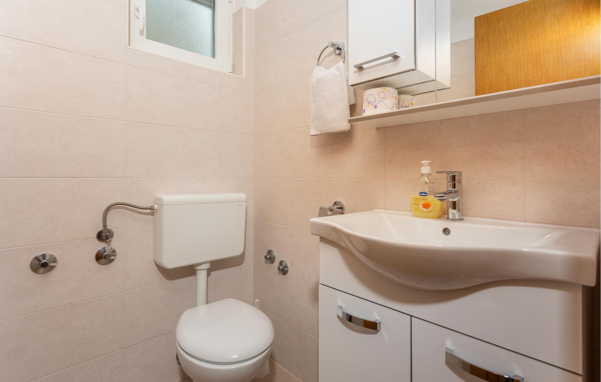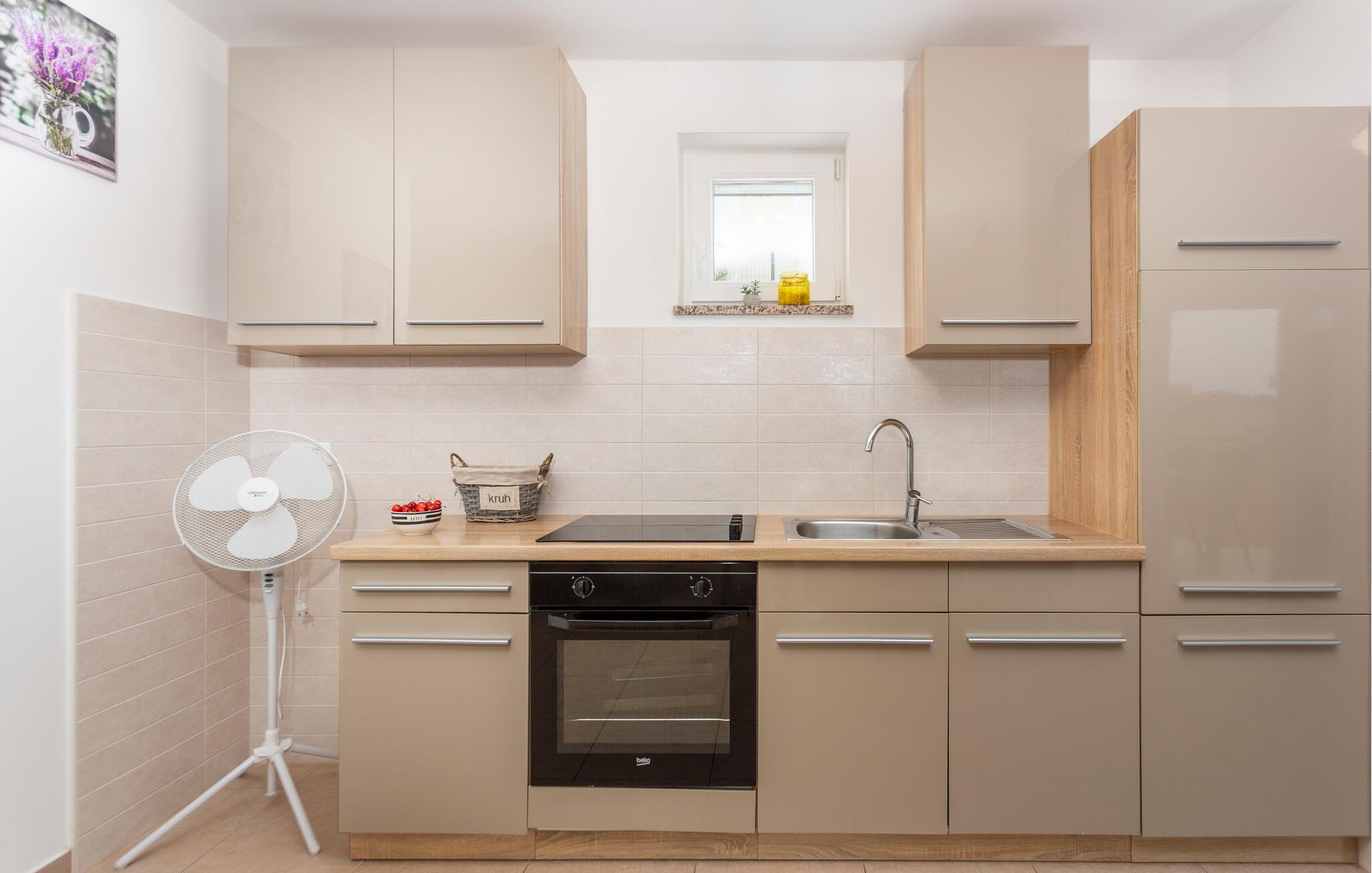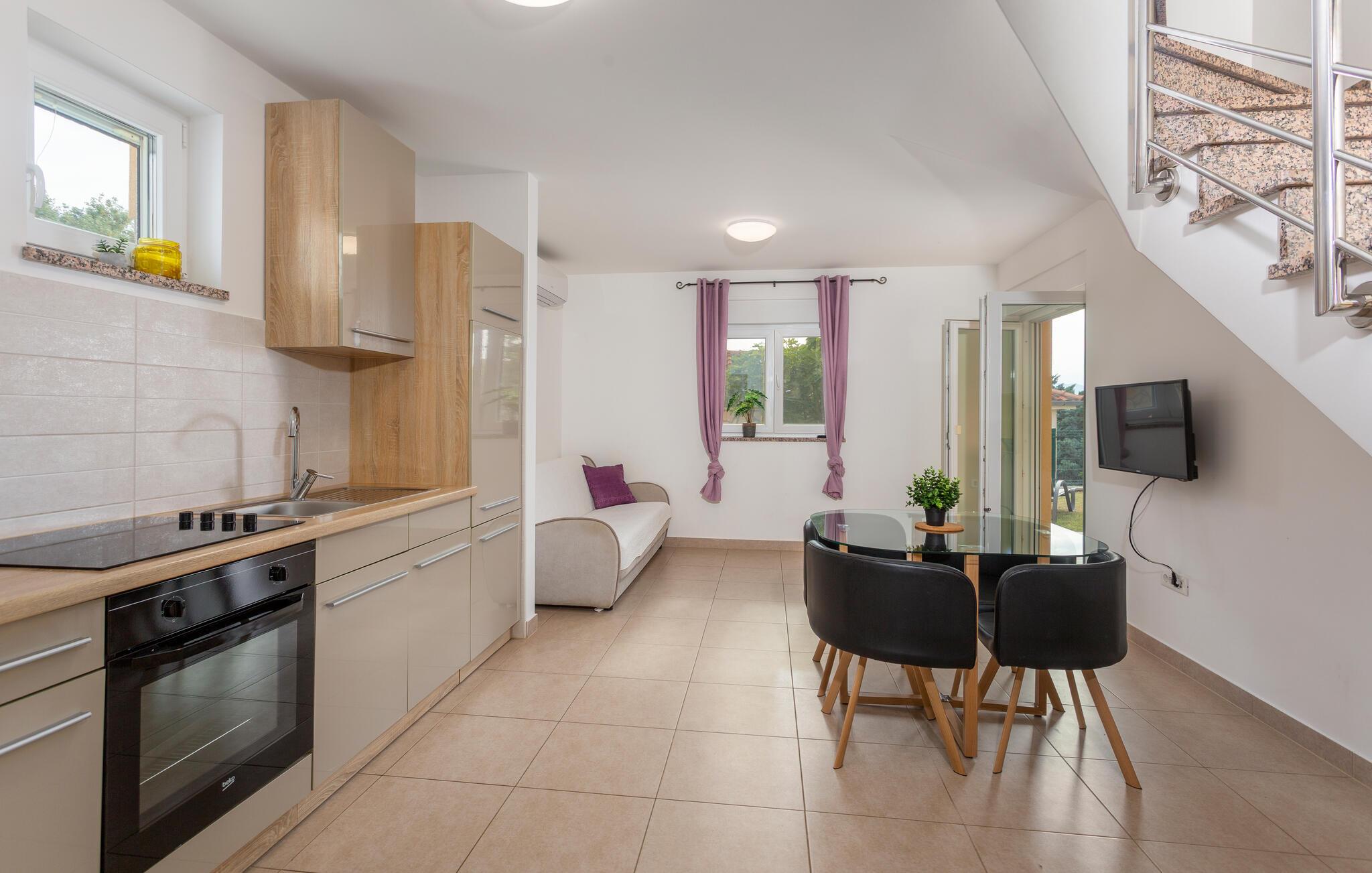 Denne stilfuldt indrettede ferielejlighed lægger op til en afslappende ferie ikke langt fra den fortryllende Adriaterhavskyst. Tilbered lækre retter i det moderne køkken og tag plads ved det elegante spisebord. Find jer godt til rette i sofaen med en spændende bog eller hel jer familien med en hyggelig spilleaften.