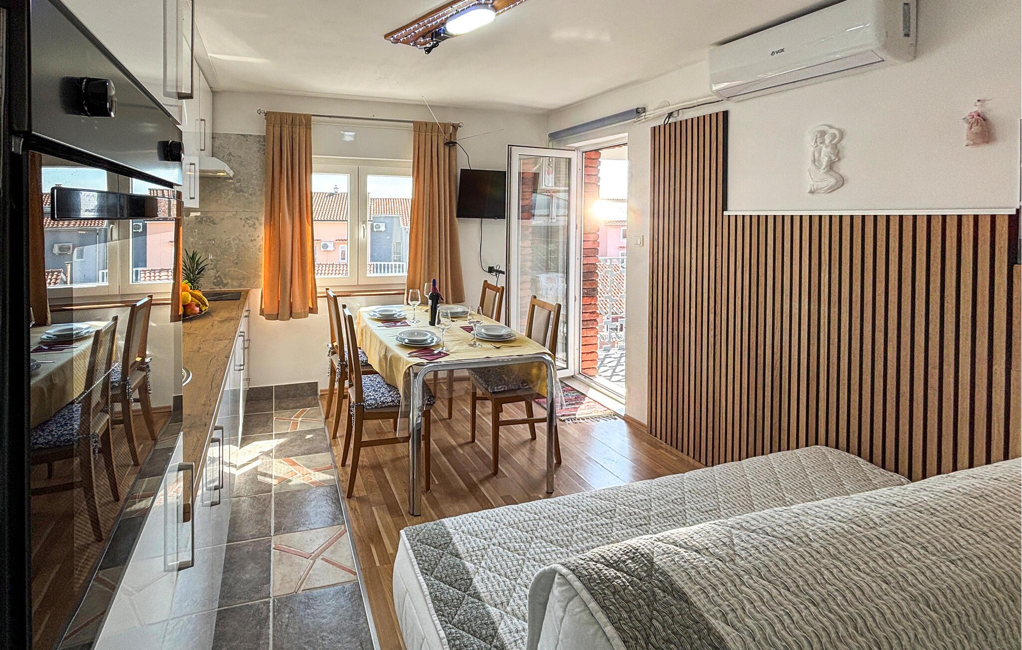 Nyd en betagende panoramaudsigt fra denne komfortable ferielejlighed nær stranden.