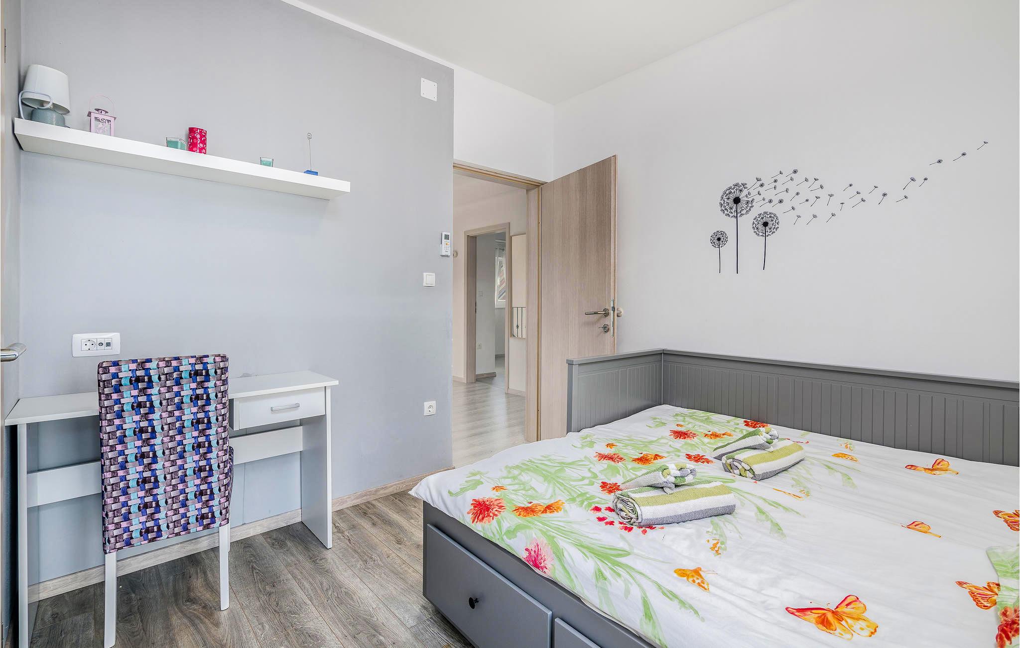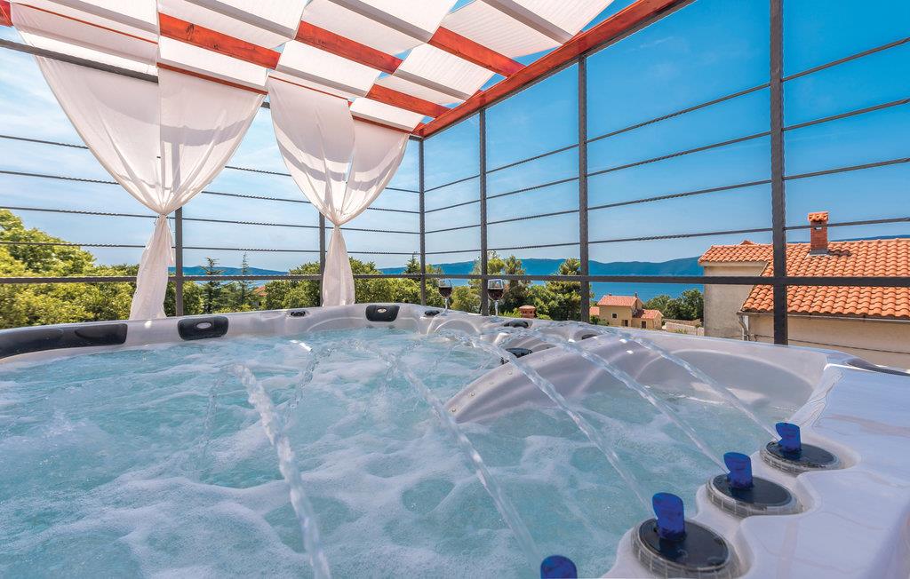 I denne lille by Pinezici på øen Krk ligger dette rækkehus til jeres næste ferie. Her er alt, hvad I har brug for til et behageligt og komfortabelt ophold. I stueplan ligger aktivitetsrummet med bordfodbold og dartskive og her er der også en stue med køkken. Indre trappe fører op til første sal med soveværelser og badeværelser og herfra er der udendørs trappe op til tagterrassen som er dejligt rummelig. Nyd den skønne udsigt og slap af i whirlpoolen. Besøg også de skønne strande, der er omgivet af pinjetræer og hvor der er aktivitetsmuligheder for alle aldre. Udforsk øen Krk med kulturelle og historiske seværdigheder og et bredt udvalg af restauranter, barer og cafeer.