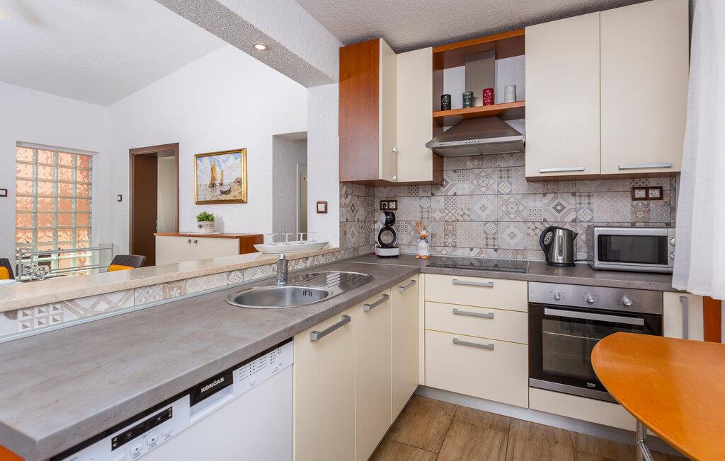 Velkommen til dette dejlige hus i den lille by Pinezici på den gyldne ø Krk. Huset har en skøn, rolig beliggenhed med en rummelig særdeles velholdt have, hvor I straks vil sanse duften af middelhavsurter. Huset består af tre separate lejligheder og er derfor ideelt til en stor familie med børn eller til en gruppe med flere familier. Her kan I nemlig nyde jeres privatliv i lejlighederne og så samles i den lyse og hyggelige hovedstue.