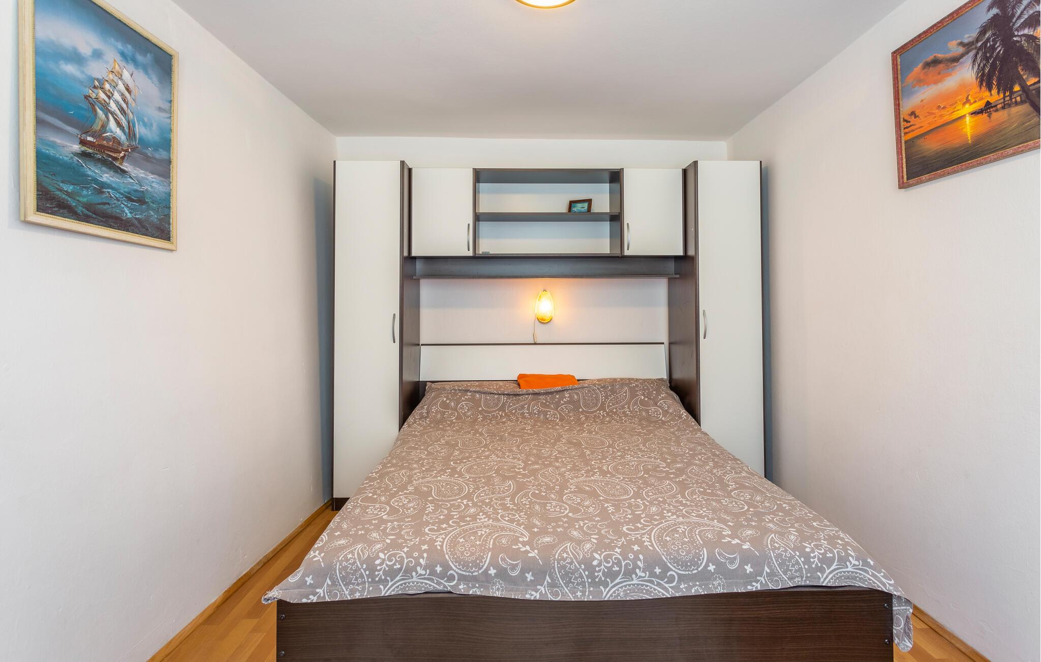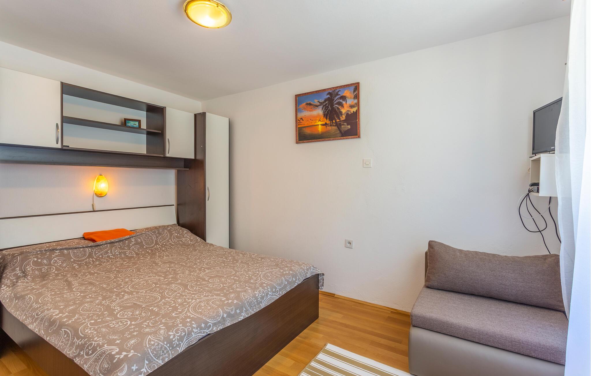 Dette rummelige dobbelthus byder jer velkommen i den rolige landsby Polje og tilbyder jer et praktisk hjem væk fra hjemmet, mens I slipper for den travle hverdag og er tæt på smukke strande. Her kan I trylle lækre retter frem, planlægge dagens aktiviteter og afslutte en begivenhedsrig dag med en spilleaften.