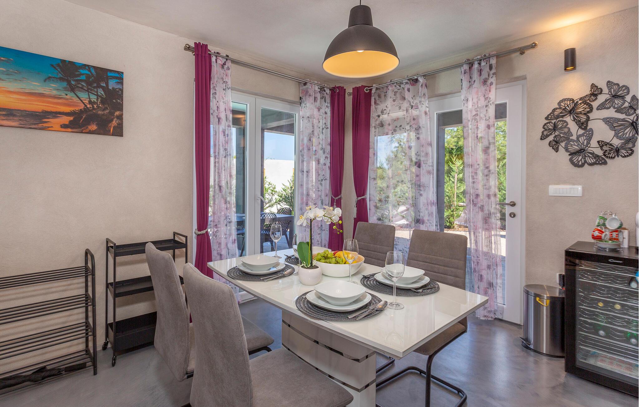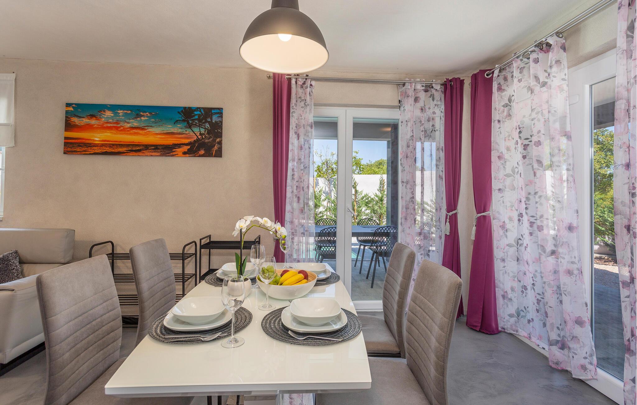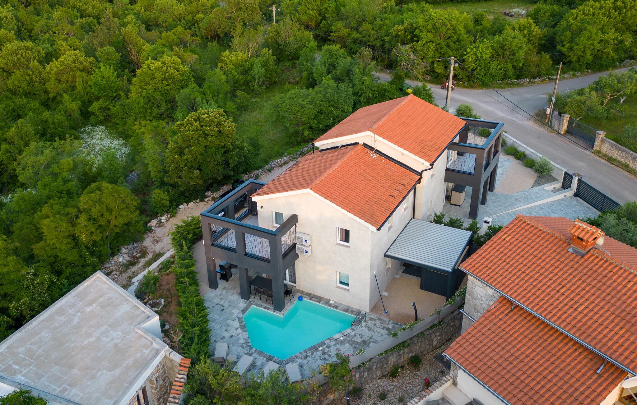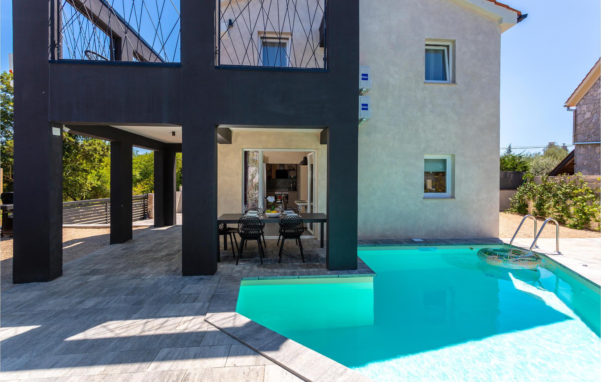 Tilbring en uforglemmelig ferie i denne fine bolig med pool på øen Krk i den lille landsby Sveti Ivan Dobrinjski. Huset ligger roligt og er omgivet af smuk natur. I den fuldt indhegnede gård kan I snuppe friske dukkert i udendørspoolen. I finder en grill og en overdækket terrasse, så I kommer sikkert til at tilbringe en god del af tiden udendørs.