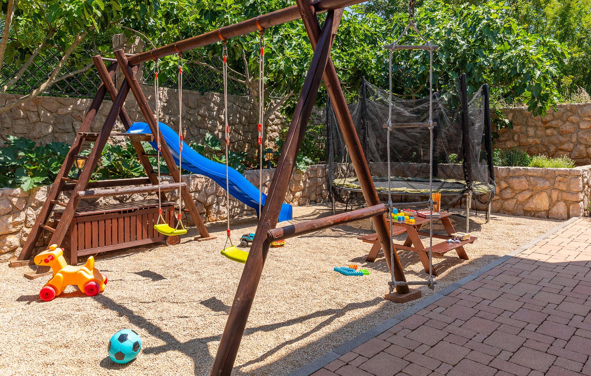 Nyd uforglemmelige dage med middelhavsstemning i dette luksuriøse feriehus med pool. Lad dig betage af den komfortable atmosfære i den rummelige og børnevenlige Villa Mia. Skab kulinariske lækkerier, glæd dig til harmoniske måltider, og hygg dig i stuen om aftenen for at streame en film. Det smukke udendørsområde tilbyder fuldstændig privatliv, mens du nyder den fredelige atmosfære, mens du spiser og solbader. Forfrisk dig selv i poolen, lad batterierne op på de behagelige liggestole, spil bordtennis, og lad dine børn nyde det charmerende legeområde i den overdækkede gårdhave. Nyd et glas vin i loungen ved solnedgang, og forbered en mindeværdig grillfest i udendørskøkkenet. Udforsk øen på mountainbike, fyld op med lokale råvarer i det omkringliggende område, og oplev skjulte bugter nær Baška på en kajaktur. Besøg Biserujka-hulen, og svøm i det turkisblå vand i Soline-bugten. Slentr gennem Krks gamle bydel, og prøv regionale specialiteter i hyggelige taverner. Bemærk venligst: Denne indkvartering accepterer ikke grupper af unge under 30 år eller polterabender. Sådanne bookinger kan blive afvist eller annulleret uden refusion – selv ved ankomst eller under dit ophold.
