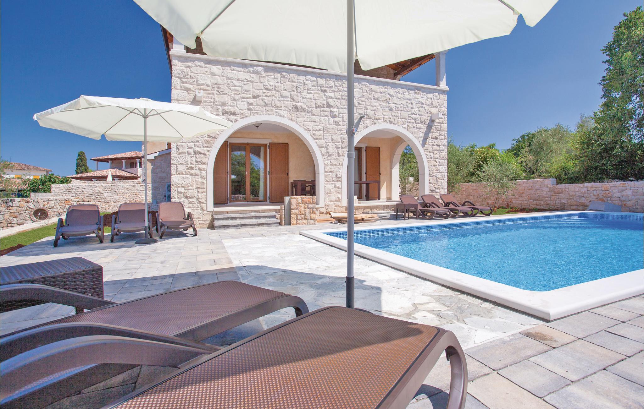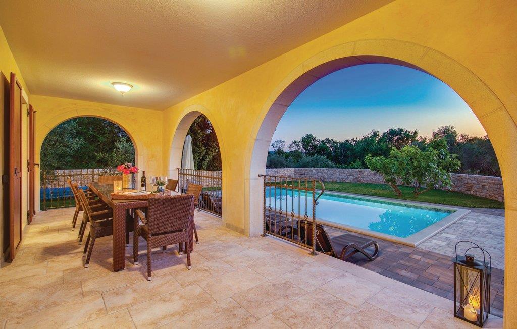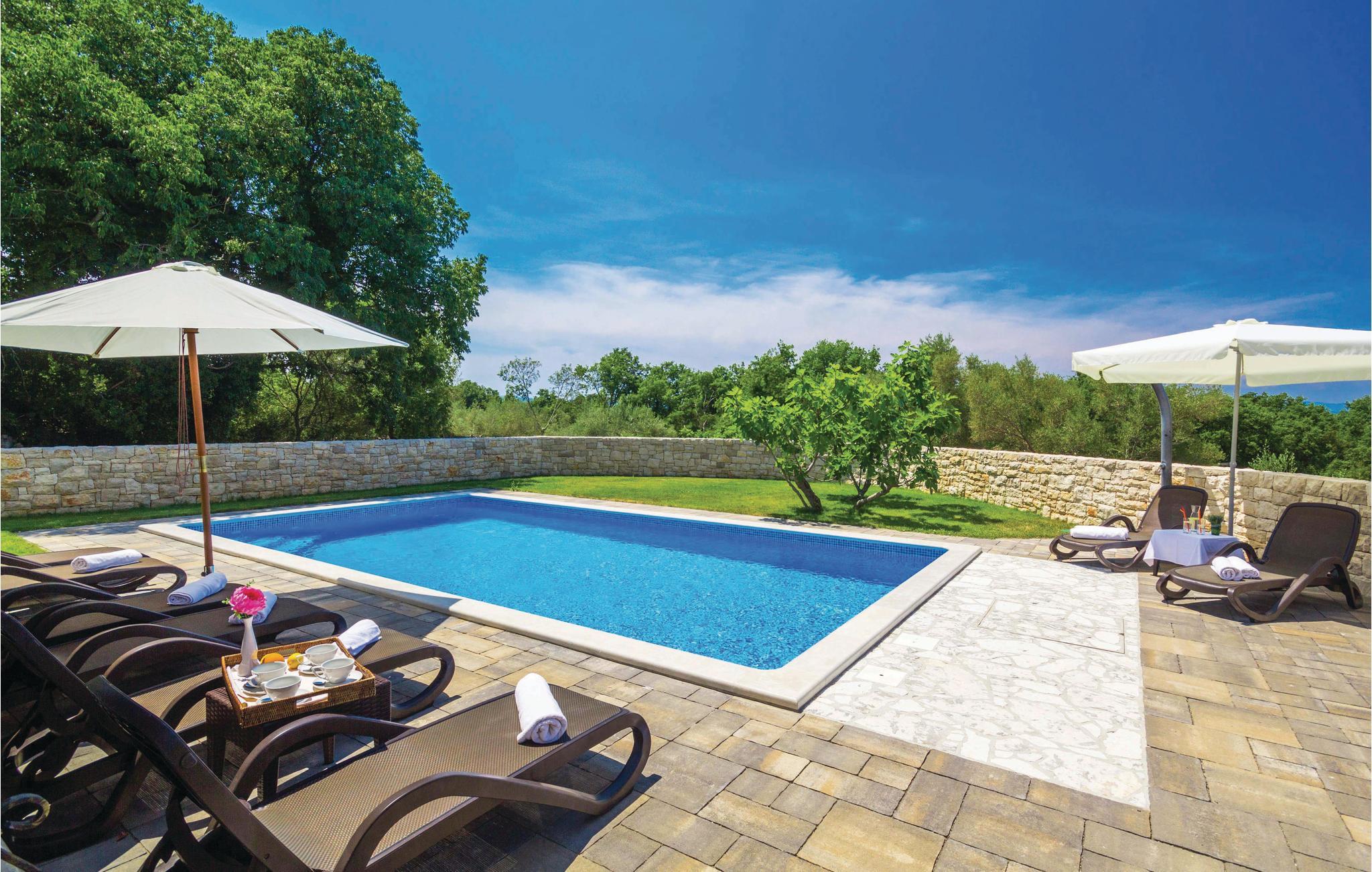 Denne dejlige og komfortable villa ligger i den lille by Turcic, kun få minutter fra havet og kiselstranden. Den tilhører en gruppe på fire huse, hvor I kan finde ro til en afslappet ferie. Hvert hus har en privat pool og en indhegnet have, der giver jer privatsfære, når I vil slappe af med solbad og en forfriskende svømmetur. Denne villa ligger som den sidste i rækken og har derfor mest privatsfære. Soveværelserne på første sal er rummelige og indrettet med god smag, hvert af dem har eget badeværelse. I stueplan kommer I ud på terrassen med pool fra den store opholdsstue. Besøg de omkringliggende små byers mange fine restauranter. Der er forskellige arrangementer sommeren igennem, som I kan deltage i. Her kan I holde en uforglemmeligt dejligt ferie.
