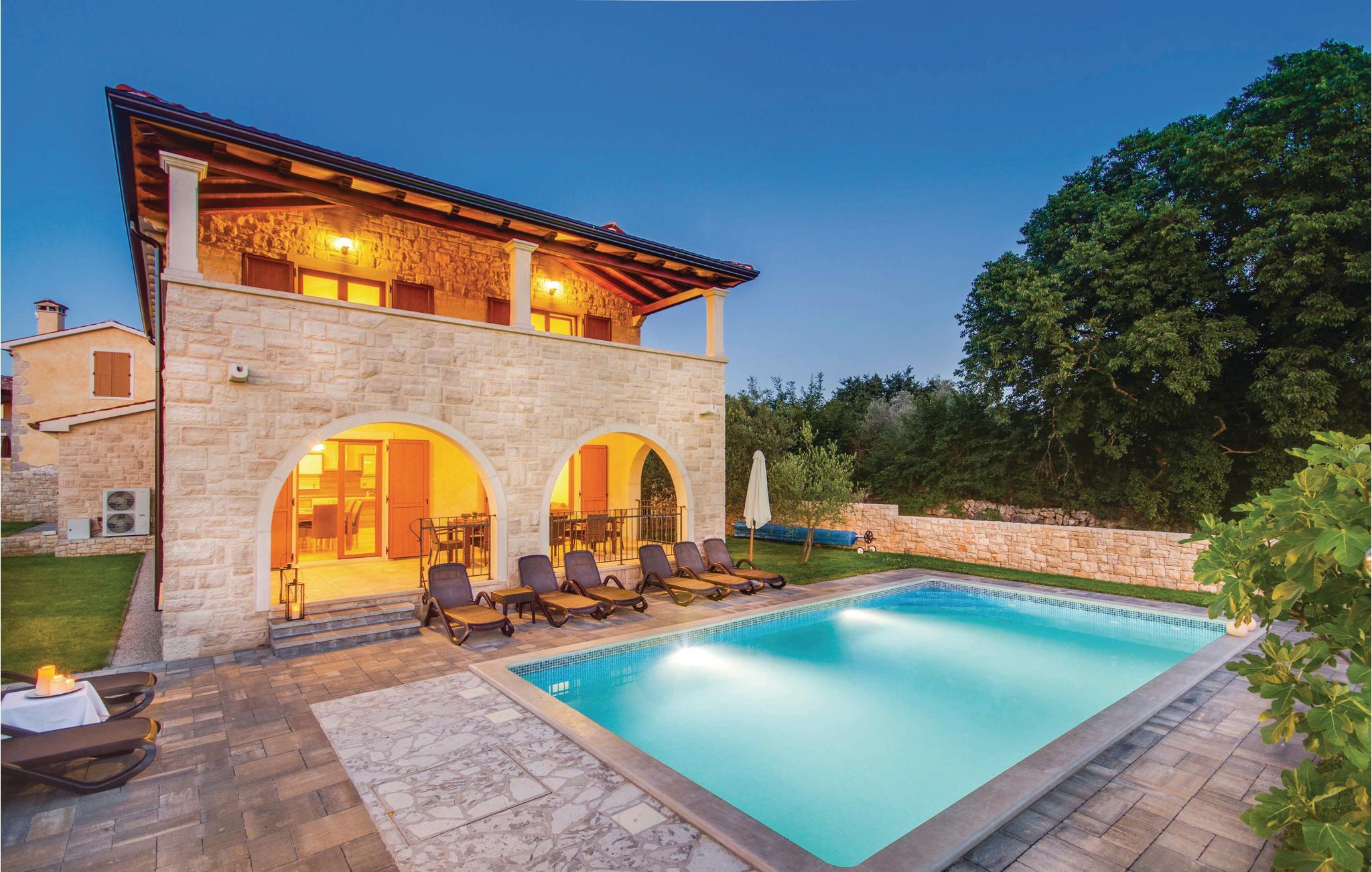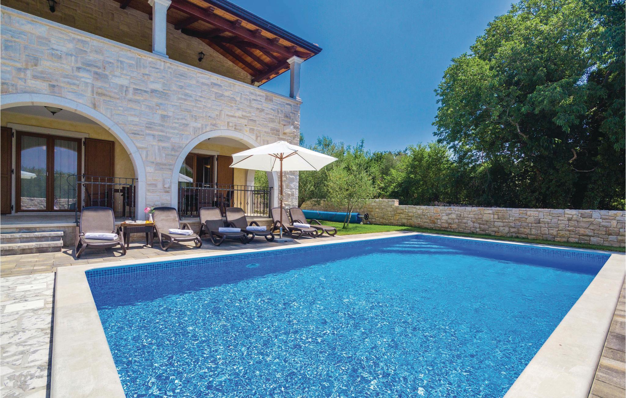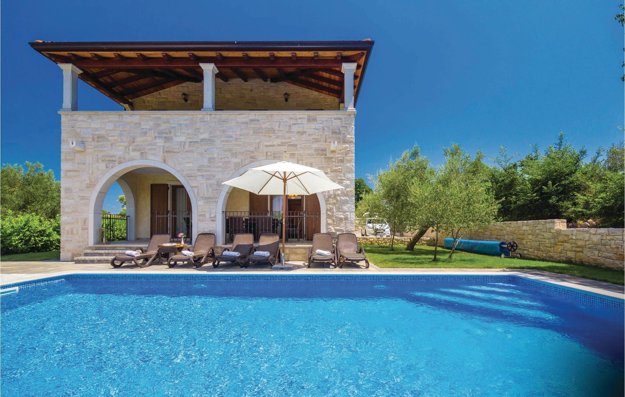 Denne dejlige og komfortable villa ligger i den lille by Turcic, kun få minutter fra havet og kiselstranden. Den tilhører en gruppe på fire huse, hvor I kan finde ro til en afslappet ferie. Hvert hus har en privat pool og en indhegnet have, der giver jer privatsfære, når I vil slappe af med solbad og en forfriskende svømmetur. Denne villa ligger som den sidste i rækken og har derfor mest privatsfære. Soveværelserne på første sal er rummelige og indrettet med god smag, hvert af dem har eget badeværelse. I stueplan kommer I ud på terrassen med pool fra den store opholdsstue. Besøg de omkringliggende små byers mange fine restauranter. Der er forskellige arrangementer sommeren igennem, som I kan deltage i. Her kan I holde en uforglemmeligt dejligt ferie.