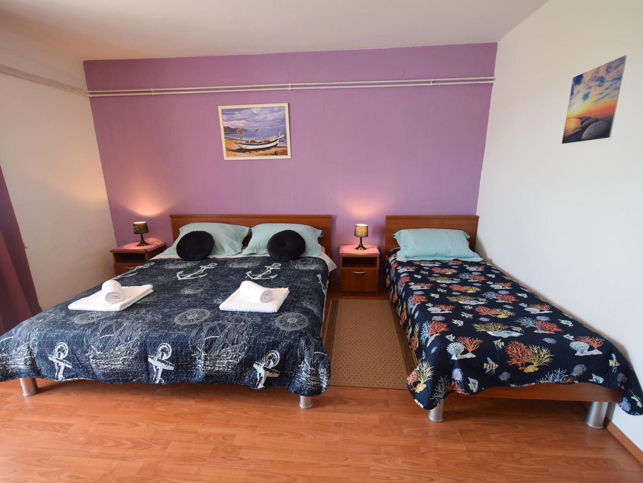 Ferienwohnung bietet Platz für 3 Gäste. Die Betten sind in Schlafzimmern, die es 1 gibt, innerhalb einer Gesamtfläche von 42m2, angeordnet. Die Gäste haben eine eigene Terrasse zur Verfügung, auf der sie in warmen Sommernächten genießen können. Es ist erlaubt, Speisen auf dem Gemeinschafts-Grill vorzubereiten. IM PREIS INBEGRIFFEN: Kurtaxe, Endreinigung, Klimatisierung, Zentralheizung, Parkplatz, Internet, Bügeleisen. VERBINDLICHE ZUSÄTZLICHE KOSTEN: Aufzahlung für Kurzaufenthalte (prozentualer Zuschlag pro Nächtigungsanzahl: 30% - 1, 20% - 2, 10% - 3). Die Verfügbarkeit zusätzlicher Dienstleistungen in Ihrem reservierten Termin und die Preise derselben (falls nicht aufgeführt) müssen im Voraus überprüft werden. Zusätzliche Dienstleistungen die in der Zahlungsaufforderung nicht aufgeführt sind werden direkt beim Vermieter bezahlt, angenommen der Gast nutzt auch diese.