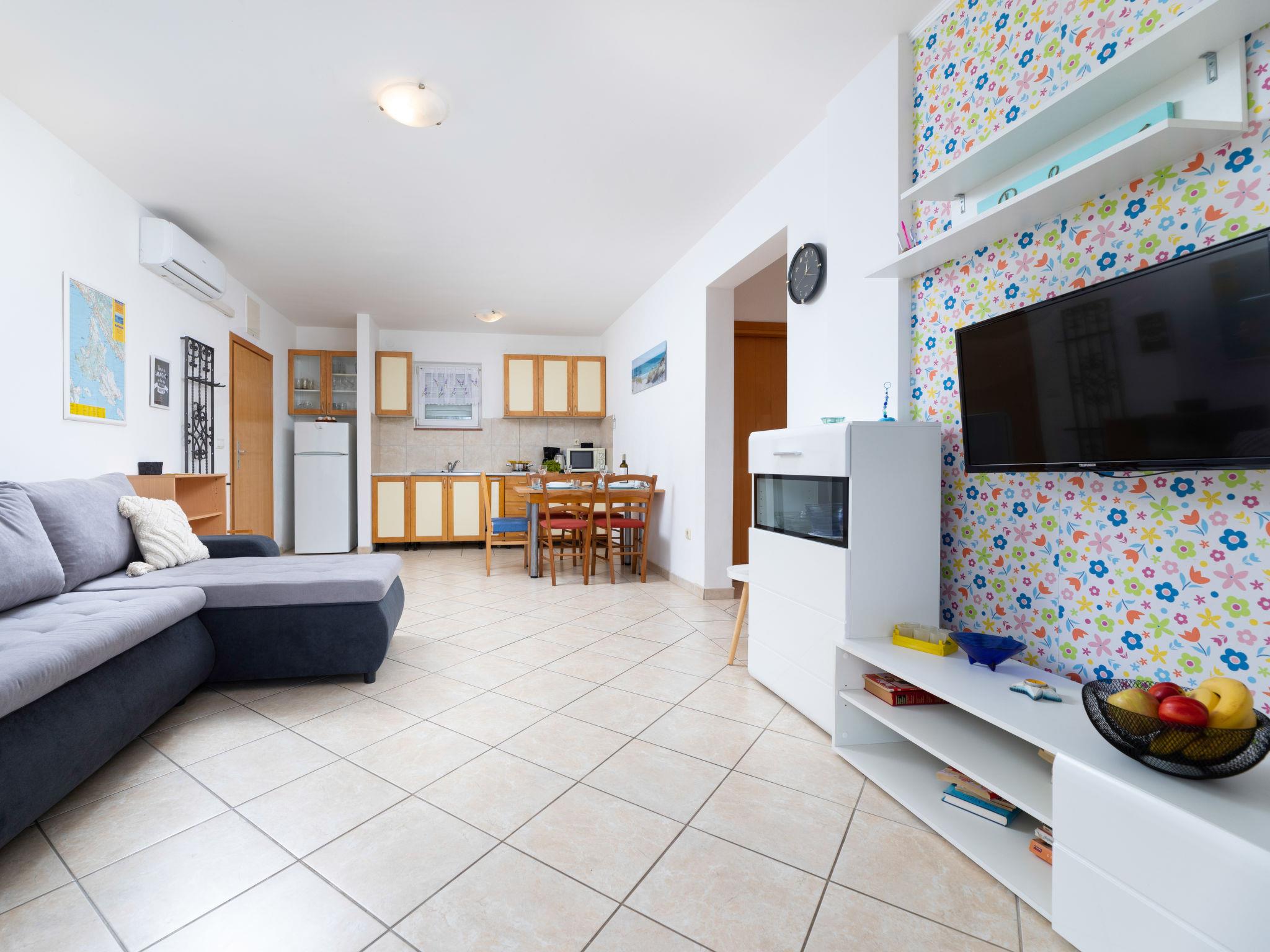 Apartment block "Mirta". 50 m from the centre of Cižici, 15 km from the centre of Vrbnik, 9 km from the centre of Malinska, 50 m from the sea, 50 m from the beach. Private: natural garden (fenced). In the house: internet access. Parking at the house. Shop 100 m, restaurant 50 m, bus stop 7.5 km, pebble beach 50 m. Please note: airfield 13 km from the property.