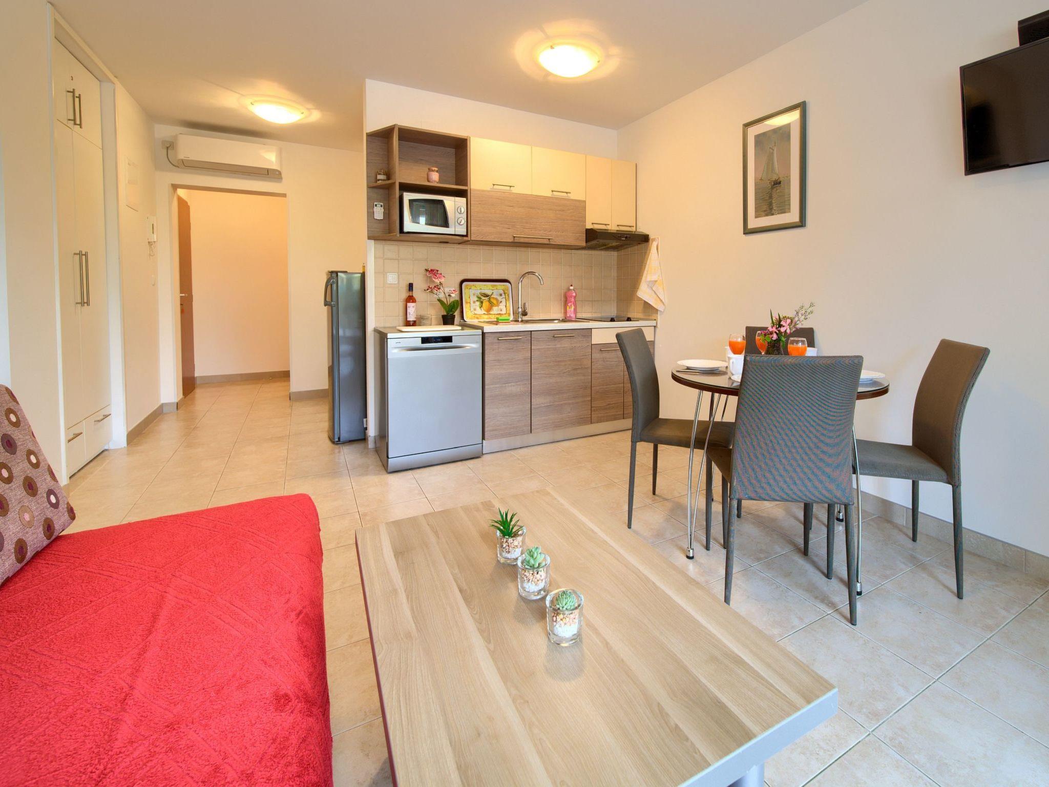 The apartment has a separate bedroom, bathroom with shower and dining room with a well-equipped kitchen which includes: a table for four persons, a fridge, a microwave, a coffee maker, a stove and an oven.