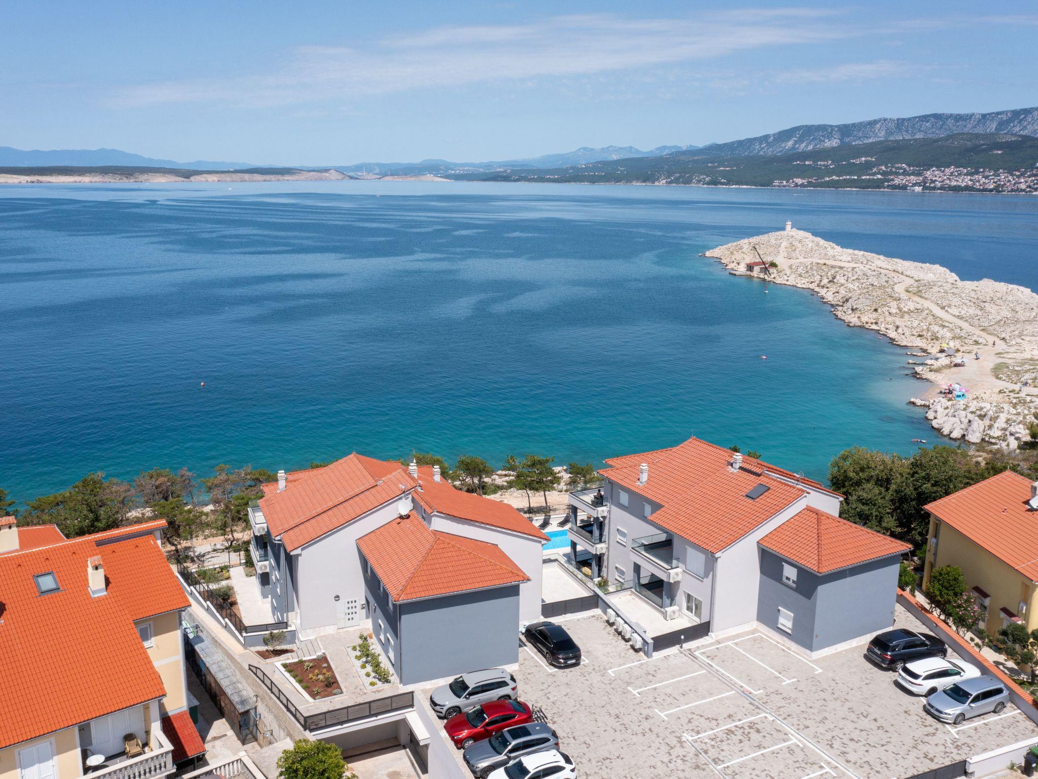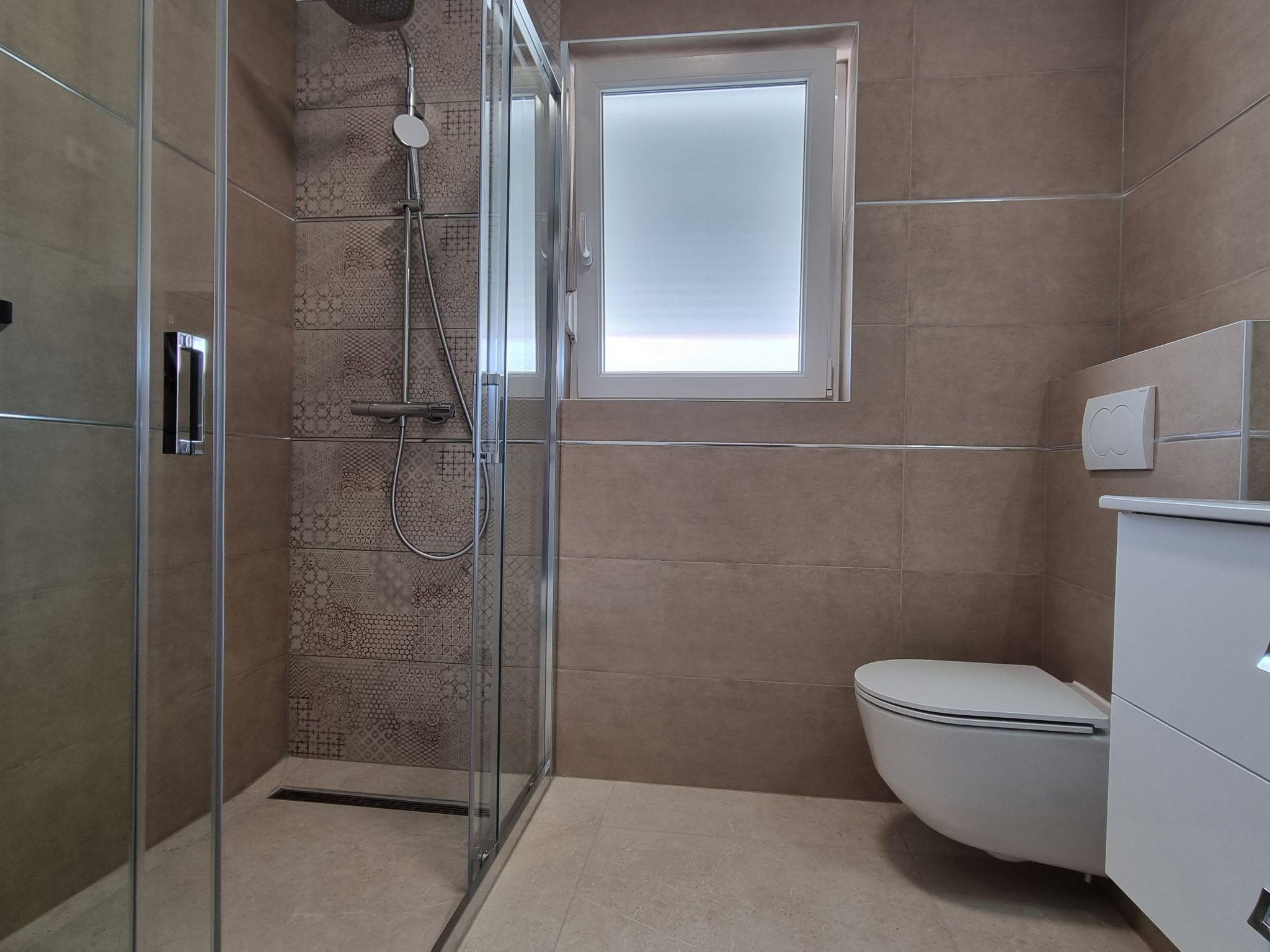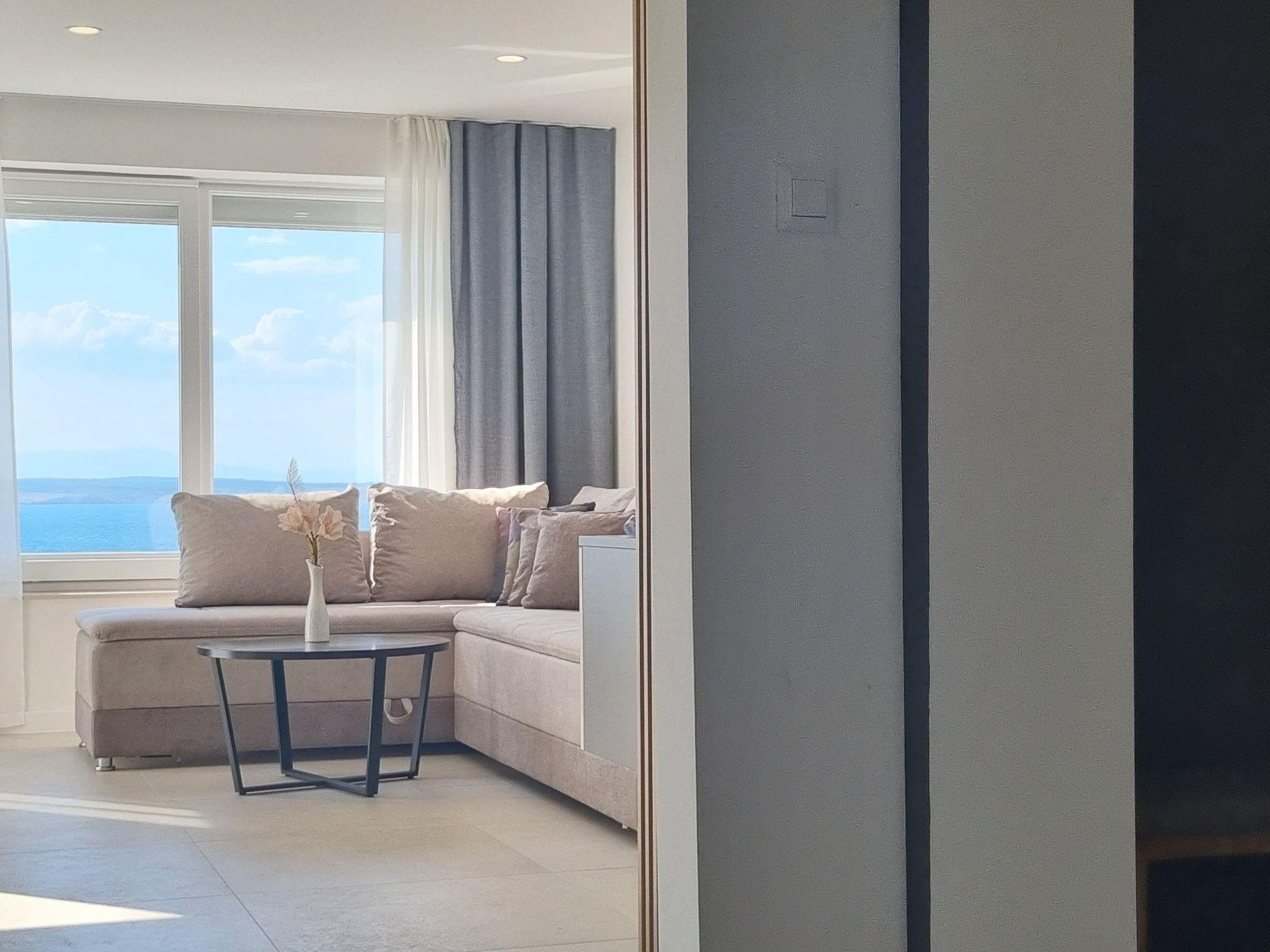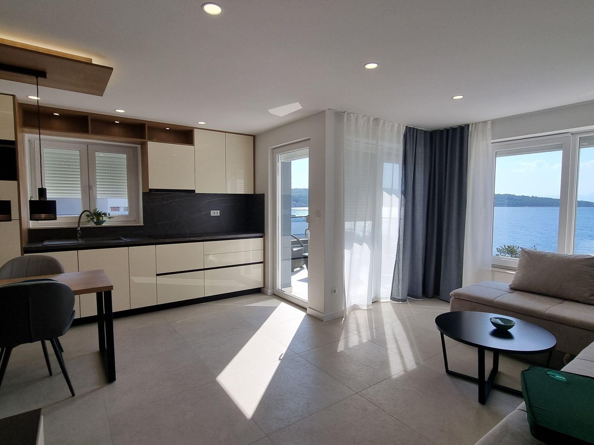 This luxurious and modern flat is located in a quiet apartment complex just 30 metres from the sea, surrounded by nature, many bays, pebble beaches and hiking trails. It offers a communal saltwater pool (36 m2), which is open from May to October and whose temperatures usually reach 20-26 °C. The flat is located on the 2nd floor and has a bedroom with a double bed, a modern kitchen with induction hob, fridge-freezer, kettle, coffee machine, toaster, microwave and dishwasher. The bathroom has a shower and toilet. The dining area and living room offer a cosy space with a sofa and smart TV, while free WiFi is available throughout the building.