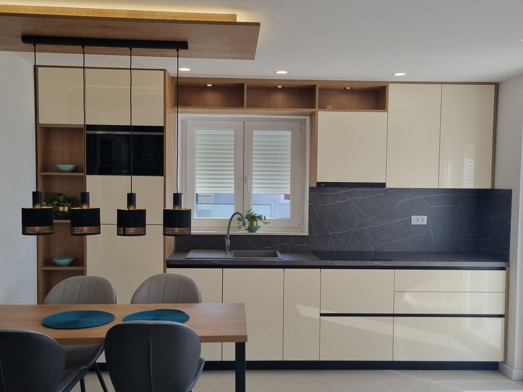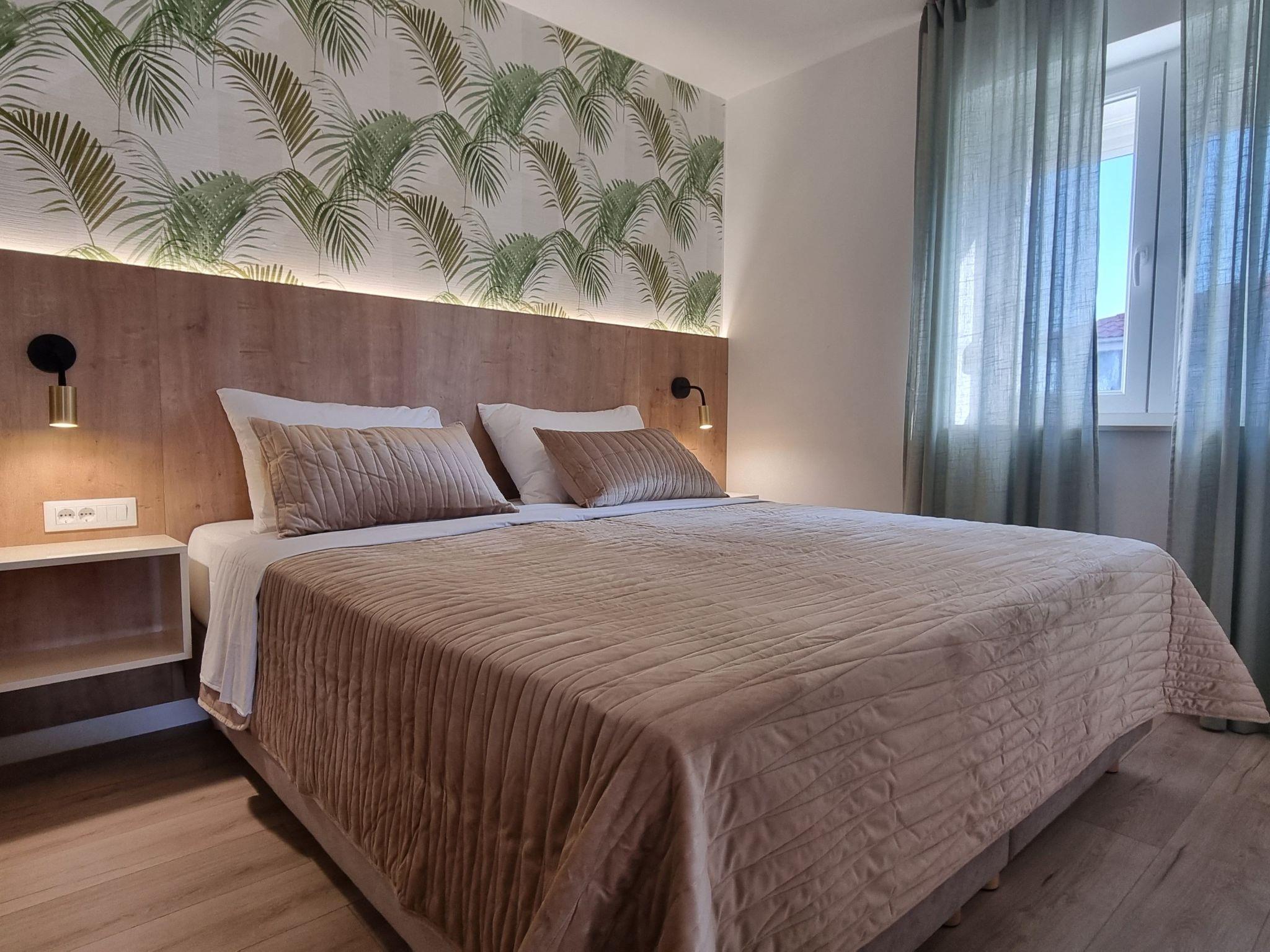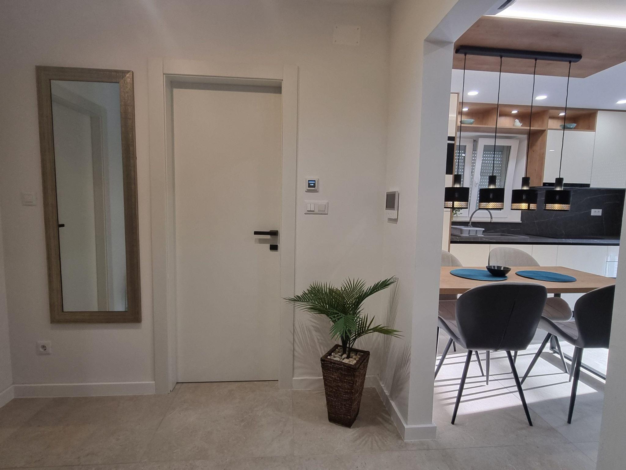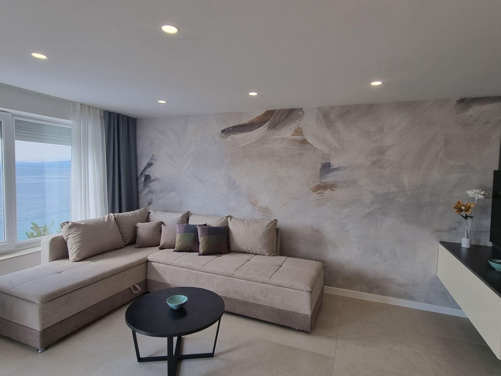 This luxurious and modern flat is located in a quiet apartment complex just 30 metres from the sea, surrounded by nature, many bays, pebble beaches and hiking trails. It offers a communal saltwater pool (36 m2), which is open from May to October and whose temperatures usually reach 20-26 °C. The flat is located on the 2nd floor and has a bedroom with a double bed, a modern kitchen with induction hob, fridge-freezer, kettle, coffee machine, toaster, microwave and dishwasher. The bathroom has a shower and toilet. The dining area and living room offer a cosy space with a sofa and smart TV, while free WiFi is available throughout the building.