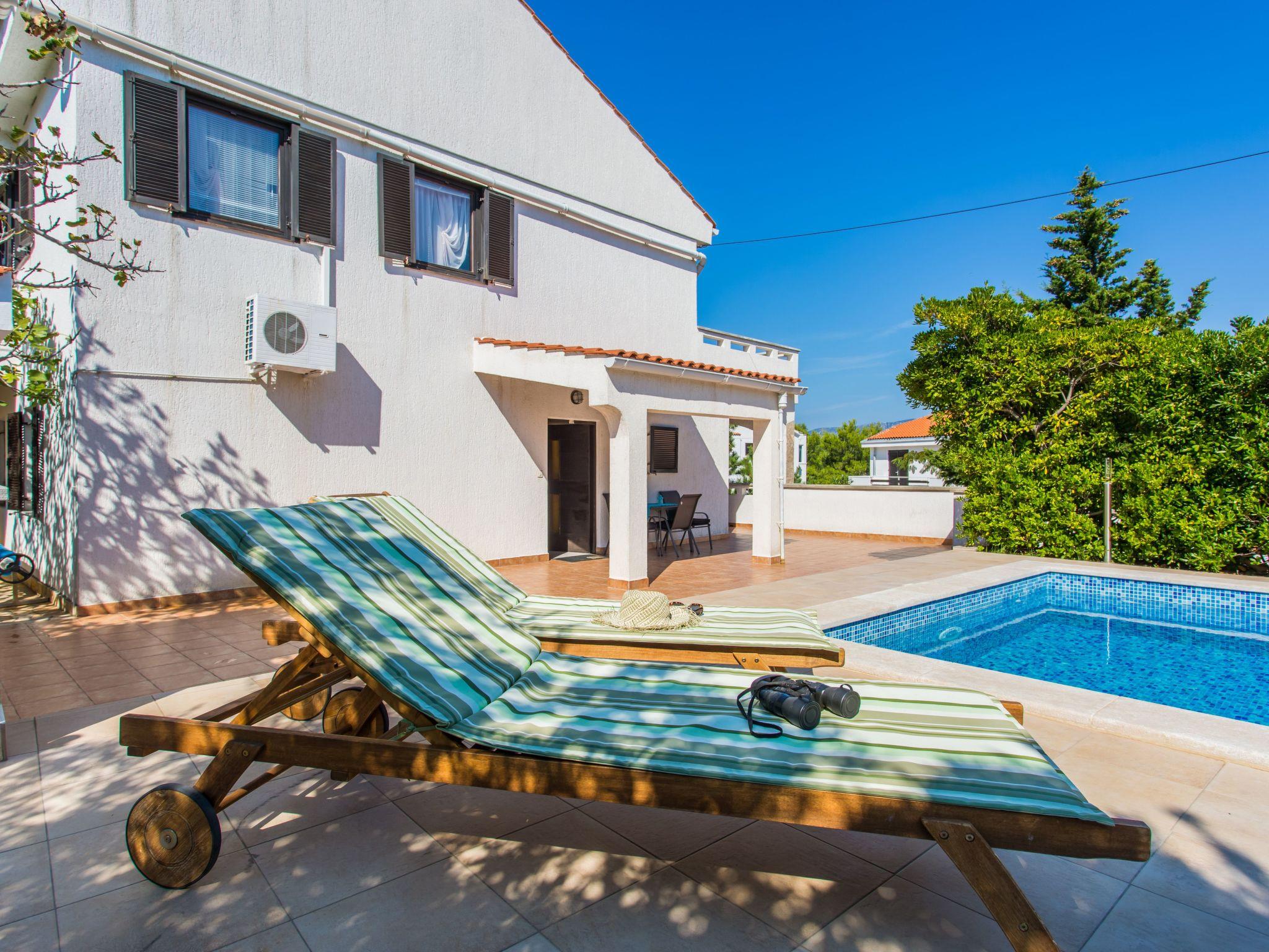 The bathroom has a shower, toilet and hairdryer. Guests have a private, furnished, covered terrace (30 m2) at their disposal, which is ideal for relaxing moments outdoors. The pool (25 m2) is available to all guests of the house and offers sun loungers, an outdoor shower and a barbecue area. The pool area (60 m2) offers a perfect place for sunbathing.