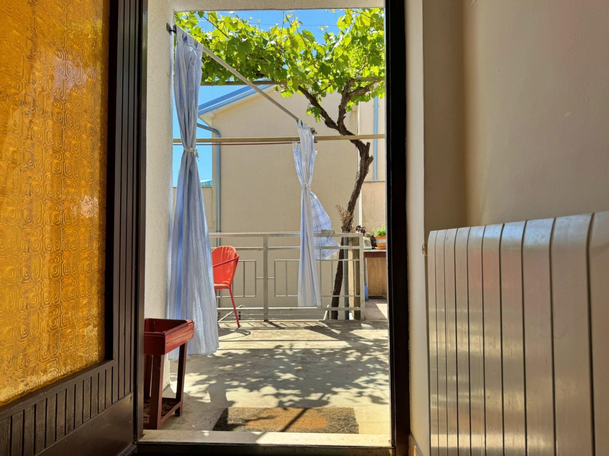 Located about 500 metres from the centre and 600 metres from the nearest beach, this studio offers peace and comfort on summer days. The 5 m2 terrace at the entrance offers a breathtaking view of the sea and the village and serves as a cosy dining area. Air conditioning, WLAN and a free car park are included. The flat is comfortably furnished and offers everything you need for a relaxing holiday.