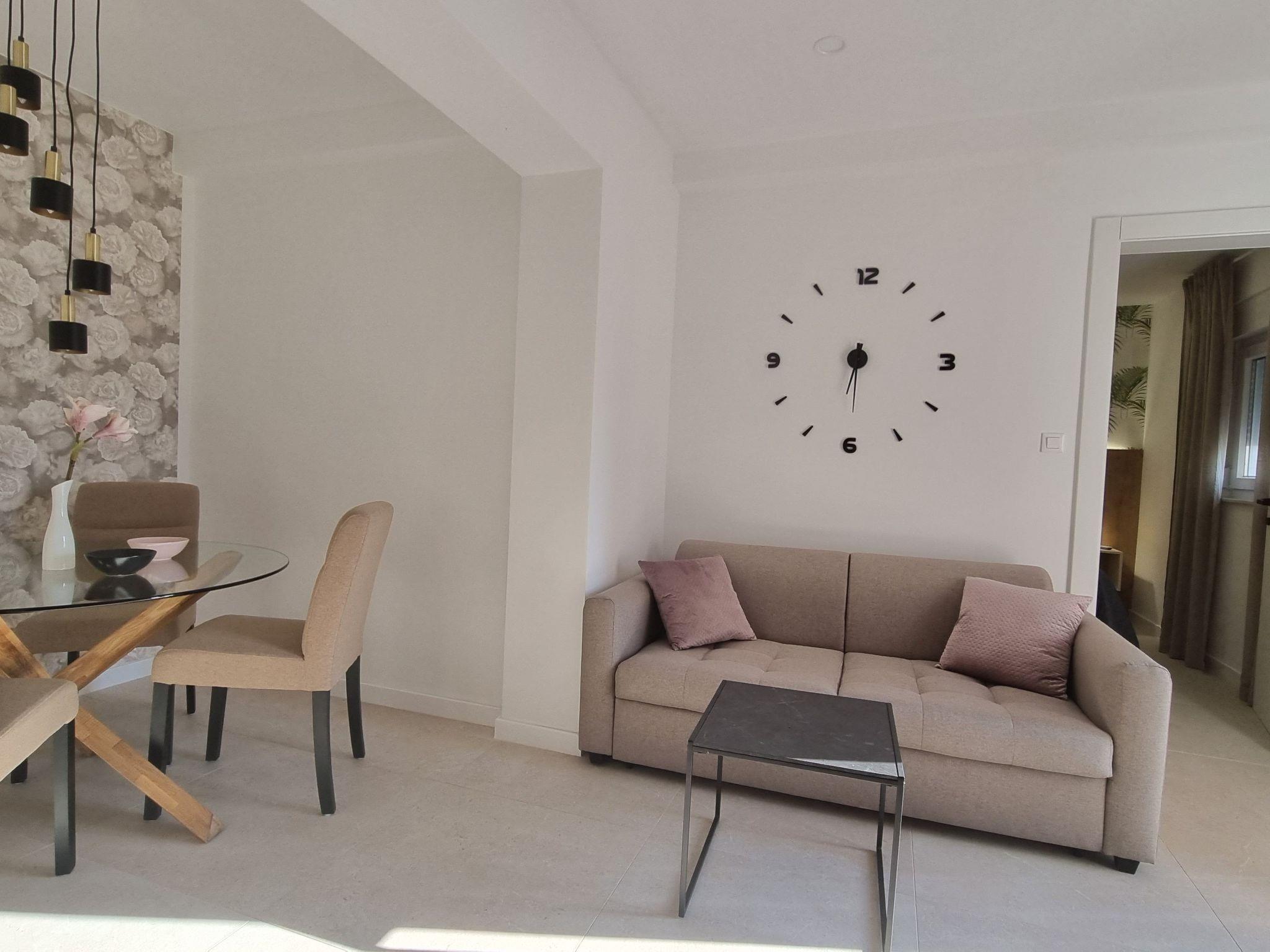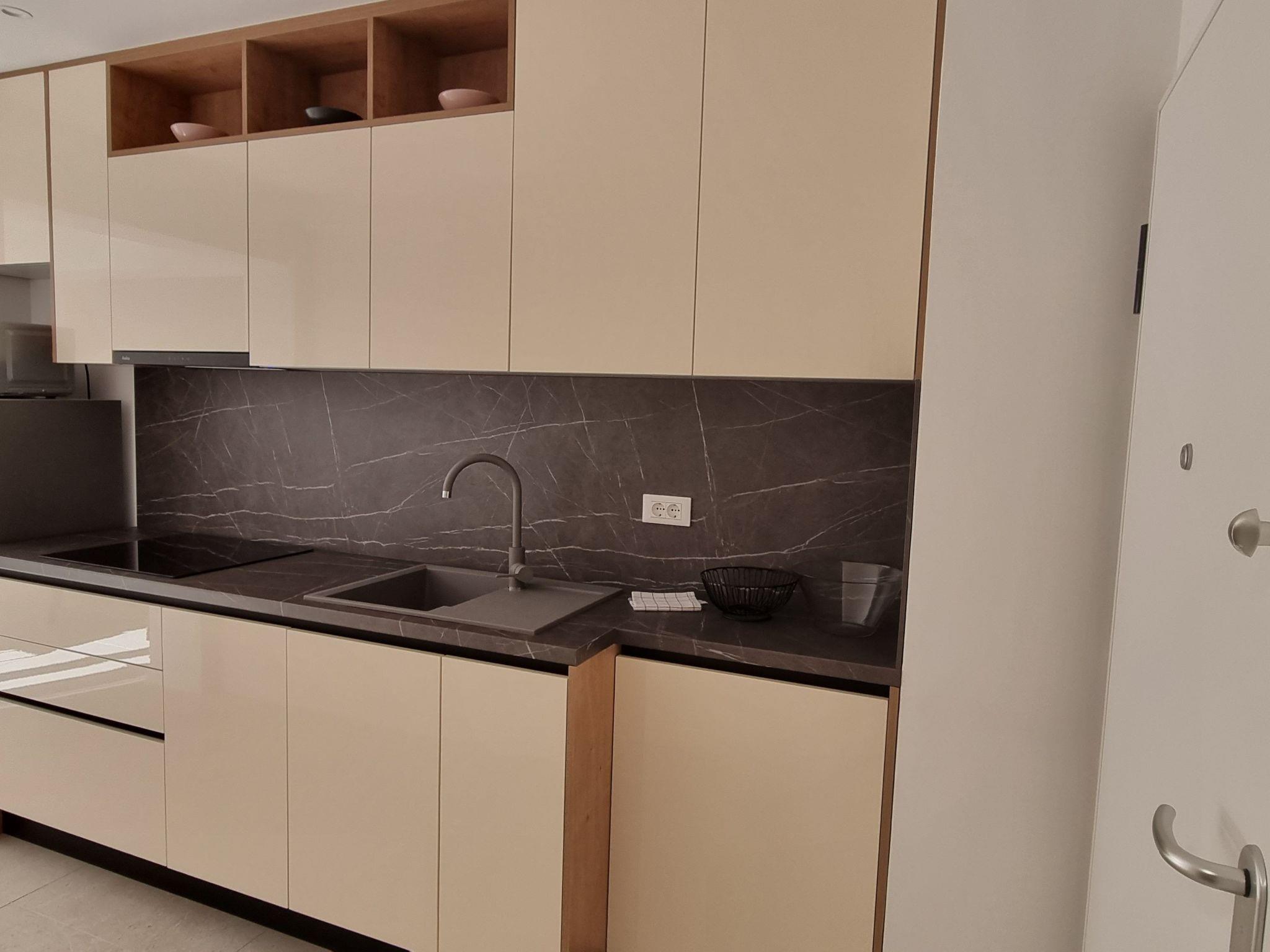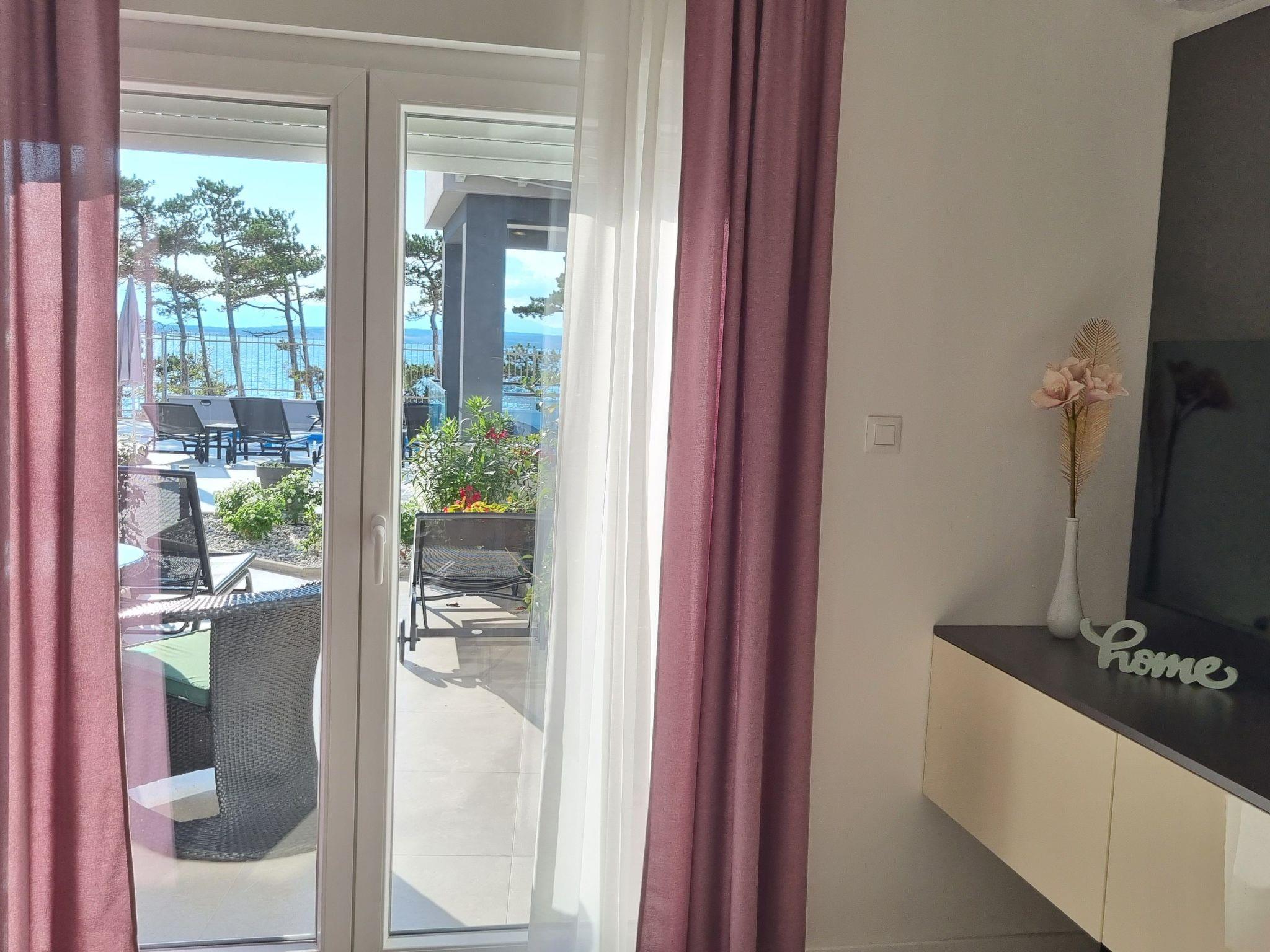 This luxurious and modern flat is located in a quiet apartment complex just 30 metres from the sea, surrounded by nature, many bays, pebble beaches and hiking trails. It offers a communal saltwater pool (36 m2), which is open from May to October and whose temperature usually reaches 20-26 °C. The flat is located on the ground floor and has a bedroom with a double bed, a modern kitchen with induction hob, fridge-freezer, kettle, coffee machine, toaster, microwave and dishwasher. The bathroom has a shower and toilet. The dining area and living room offer a cosy space with a sofa and smart TV, while free WiFi is available throughout.