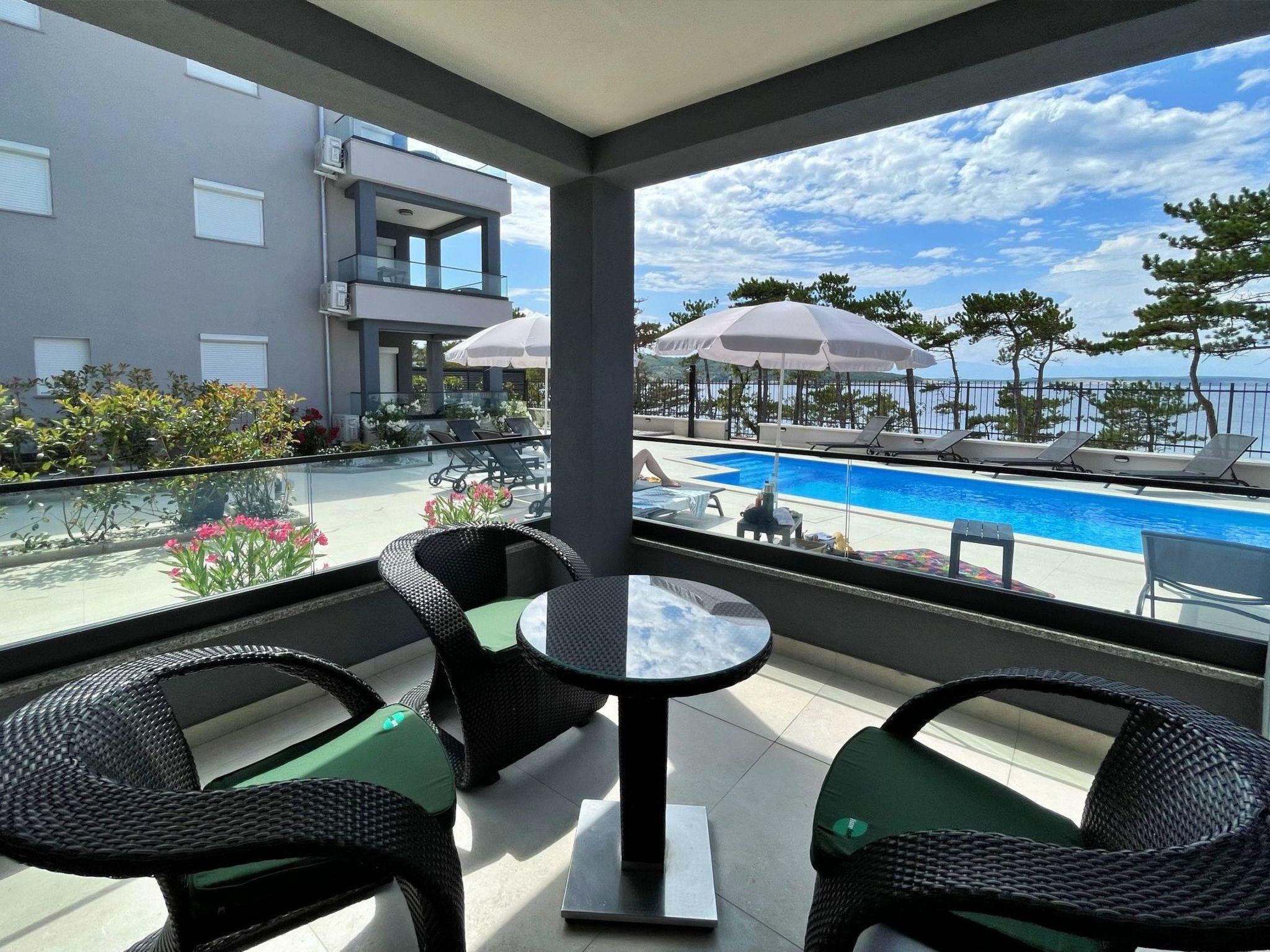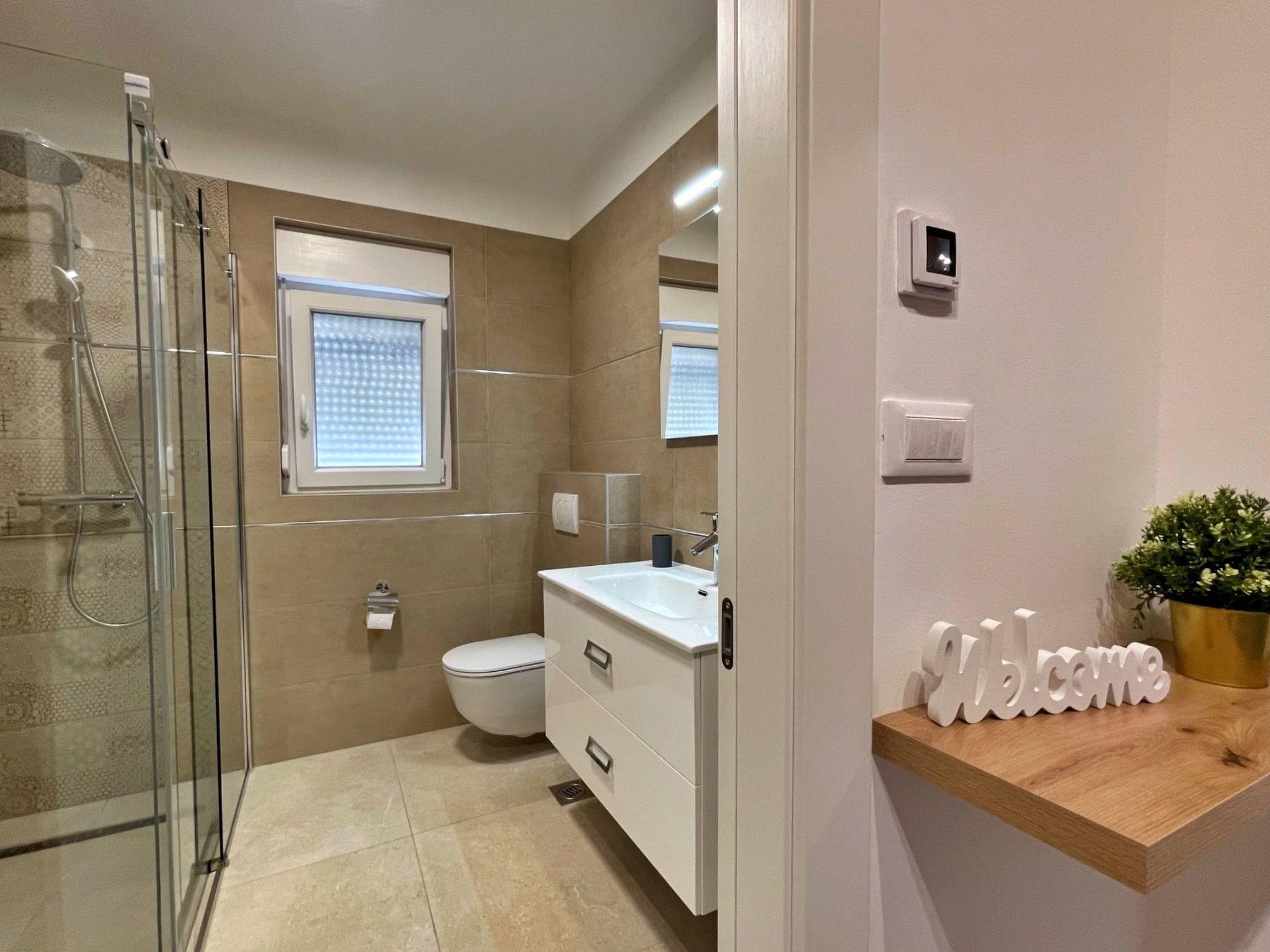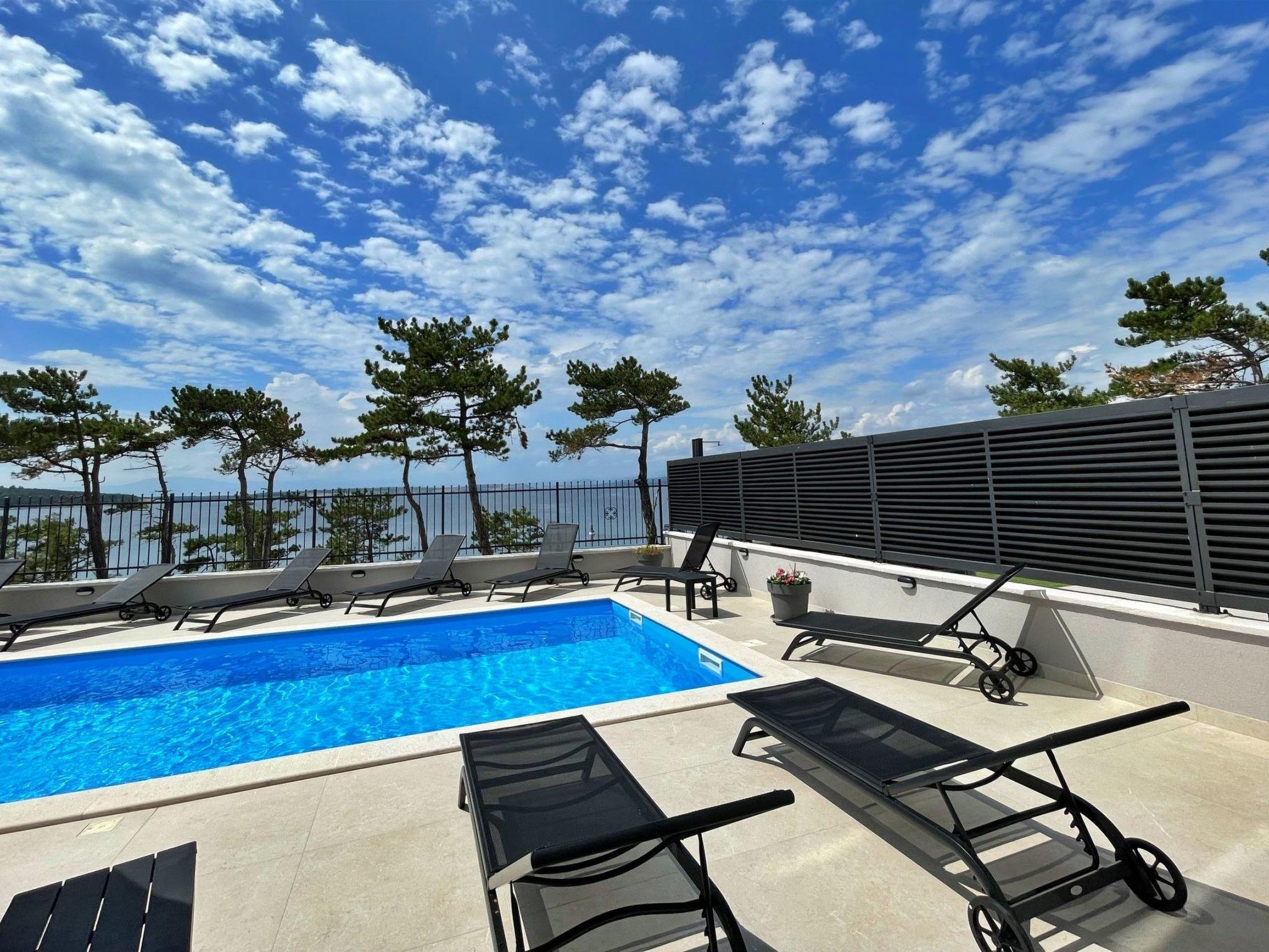 This luxurious and modern flat is located in a quiet apartment complex just 30 metres from the sea, surrounded by nature, many bays, pebble beaches and hiking trails. It offers a communal saltwater pool (36 m2), which is open from May to October and whose temperature usually reaches 20-26 °C. The flat is located on the ground floor and has a bedroom with a double bed, a modern kitchen with induction hob, fridge-freezer, kettle, coffee machine, toaster, microwave and dishwasher. The bathroom has a shower and toilet. The dining area and living room offer a cosy space with a sofa and smart TV, while free WiFi is available throughout the building.
