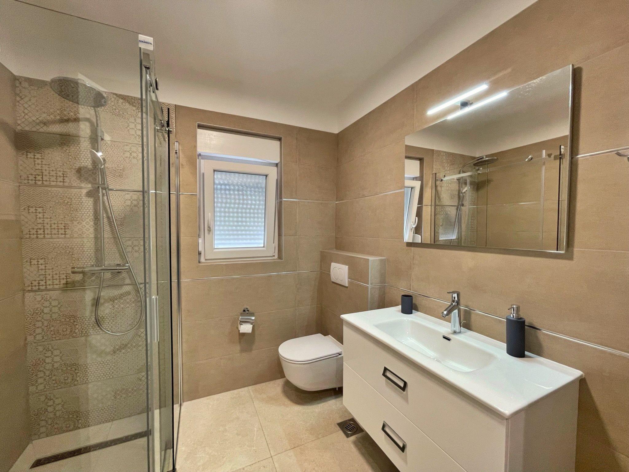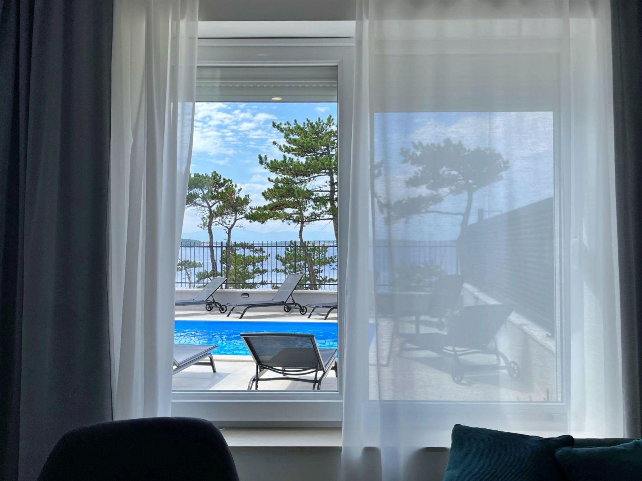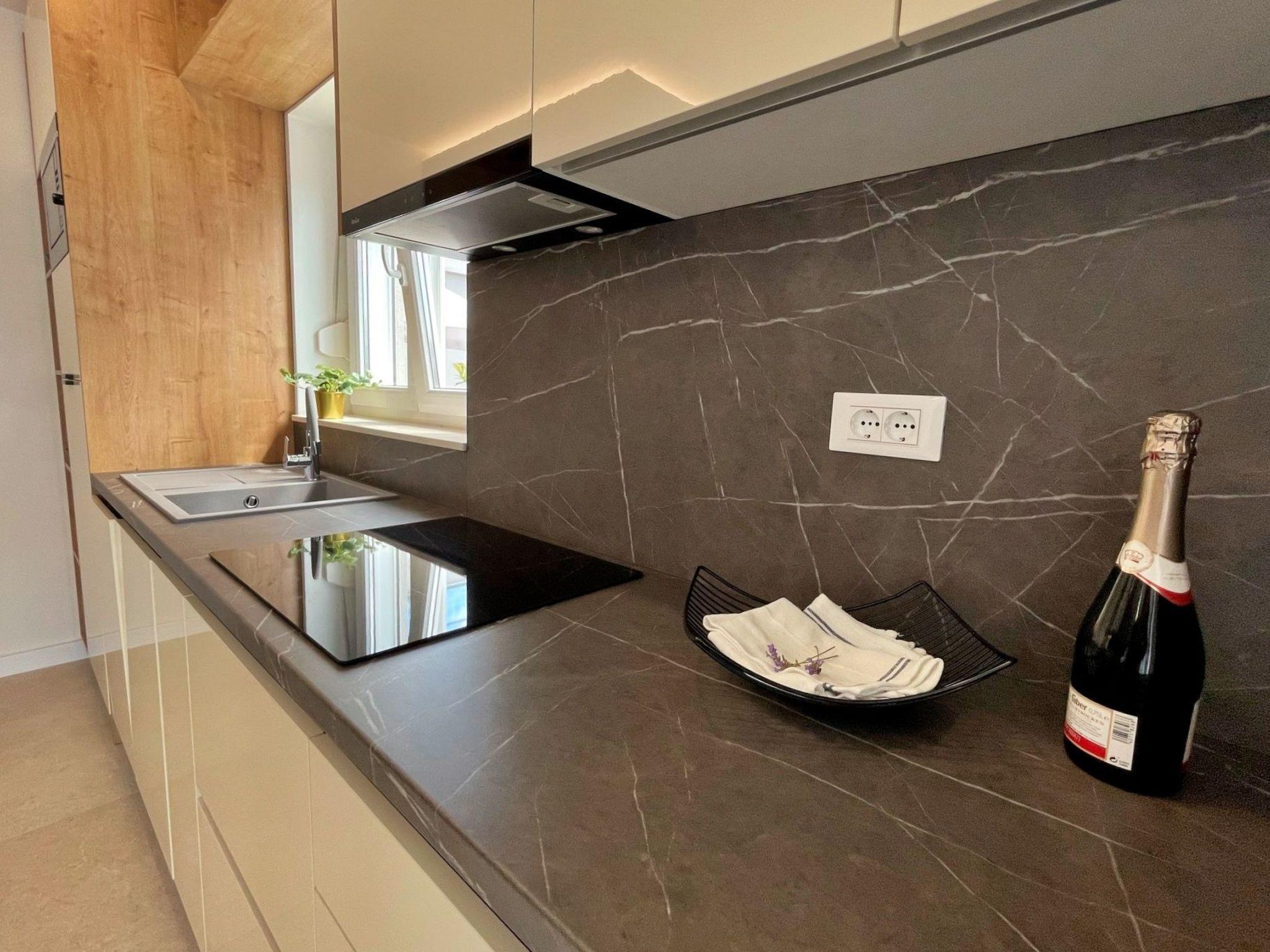 This luxurious and modern flat is located in a quiet apartment complex just 30 metres from the sea, surrounded by nature, many bays, pebble beaches and hiking trails. It offers a communal saltwater pool (36 m2), which is open from May to October and whose temperature usually reaches 20-26 °C. The flat is located on the ground floor and has a bedroom with a double bed, a modern kitchen with induction hob, fridge-freezer, kettle, coffee machine, toaster, microwave and dishwasher. The bathroom has a shower and toilet. The dining area and living room offer a cosy space with a sofa and smart TV, while free WiFi is available throughout the building.
