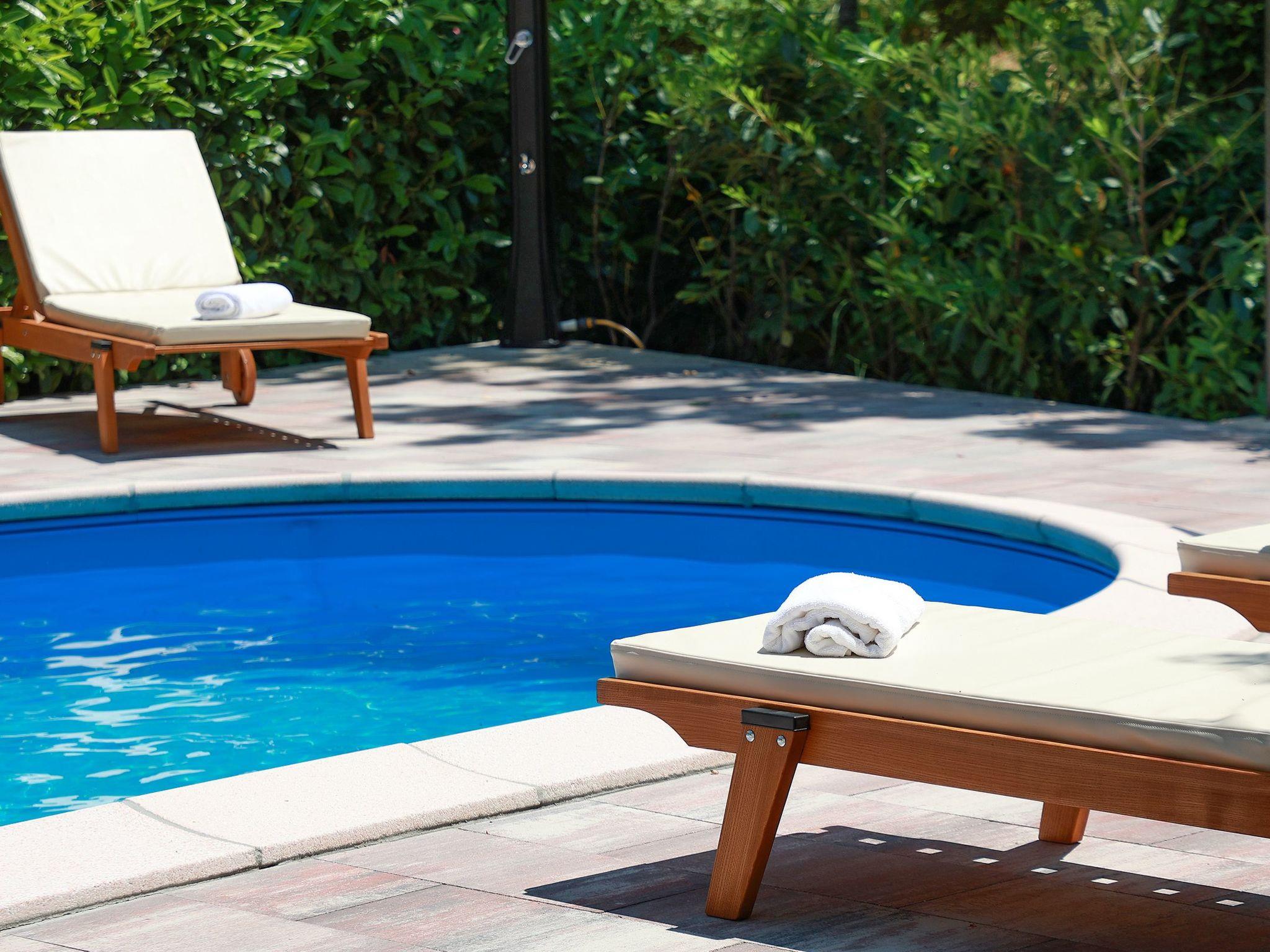 The outdoor area of this property exudes as much charm and utility as its interior. Beyond the heated pool, guests can enjoy a lovely garden on the ground floor, complete with a grill for delightful BBQ evenings. The convenience extends to parking, with a private space readily available by the house, ensuring peace of mind for those traveling by car.