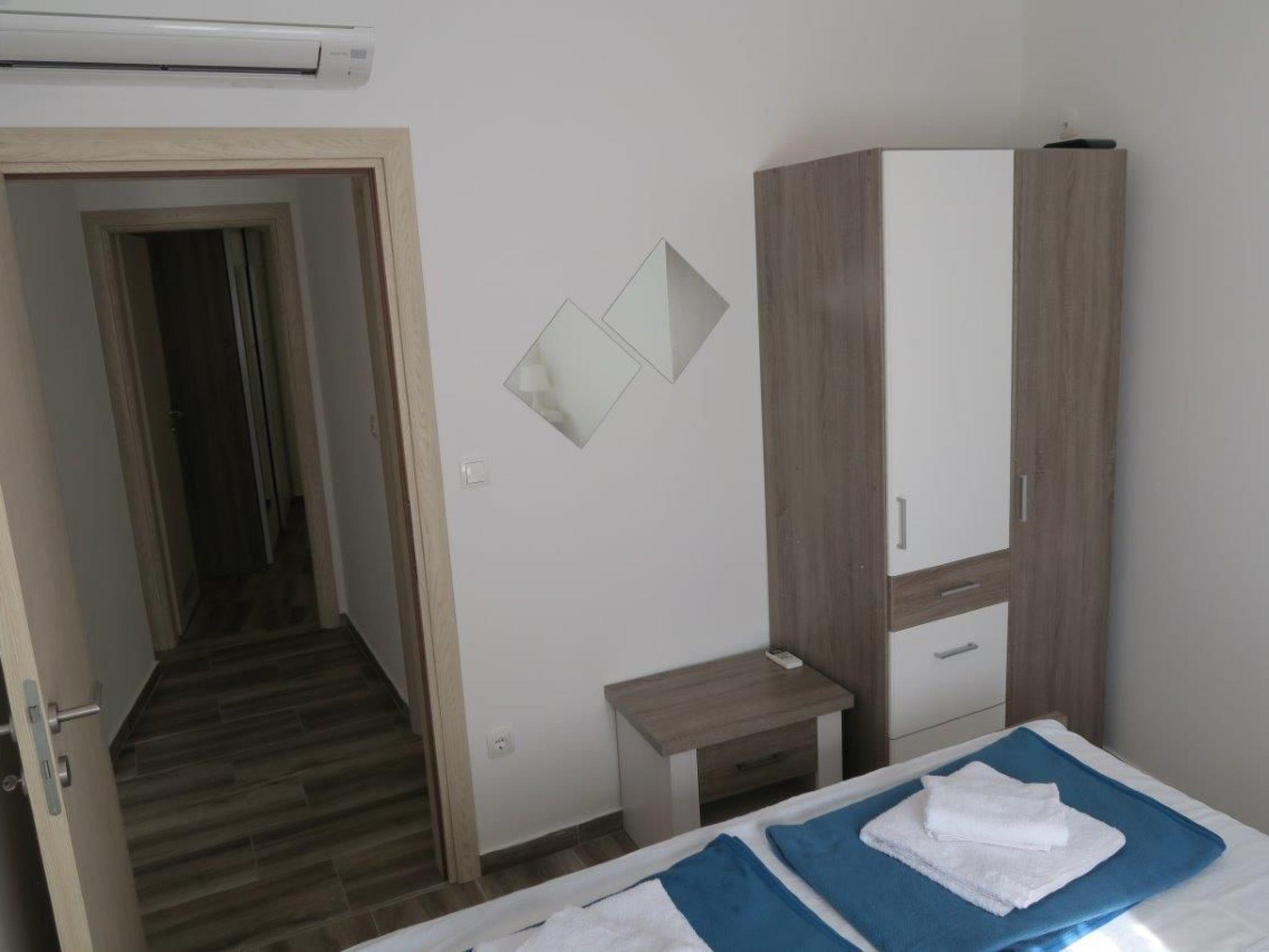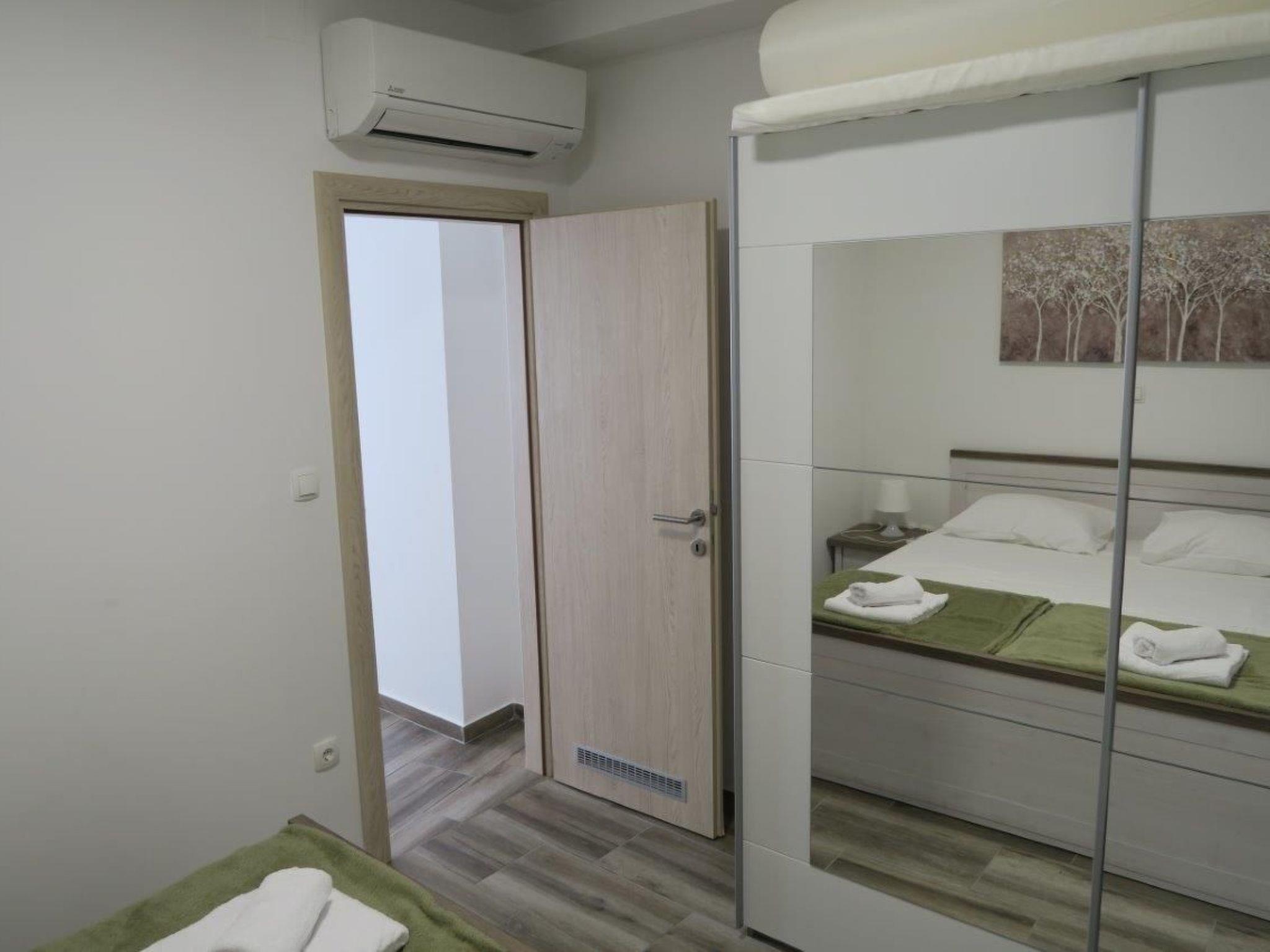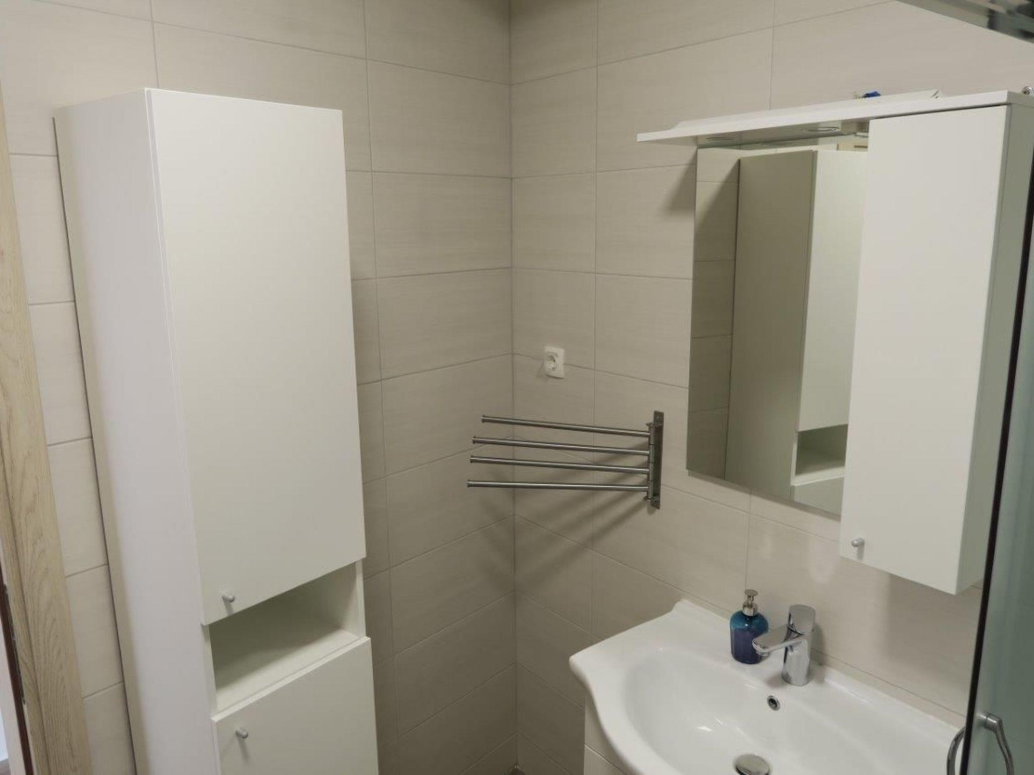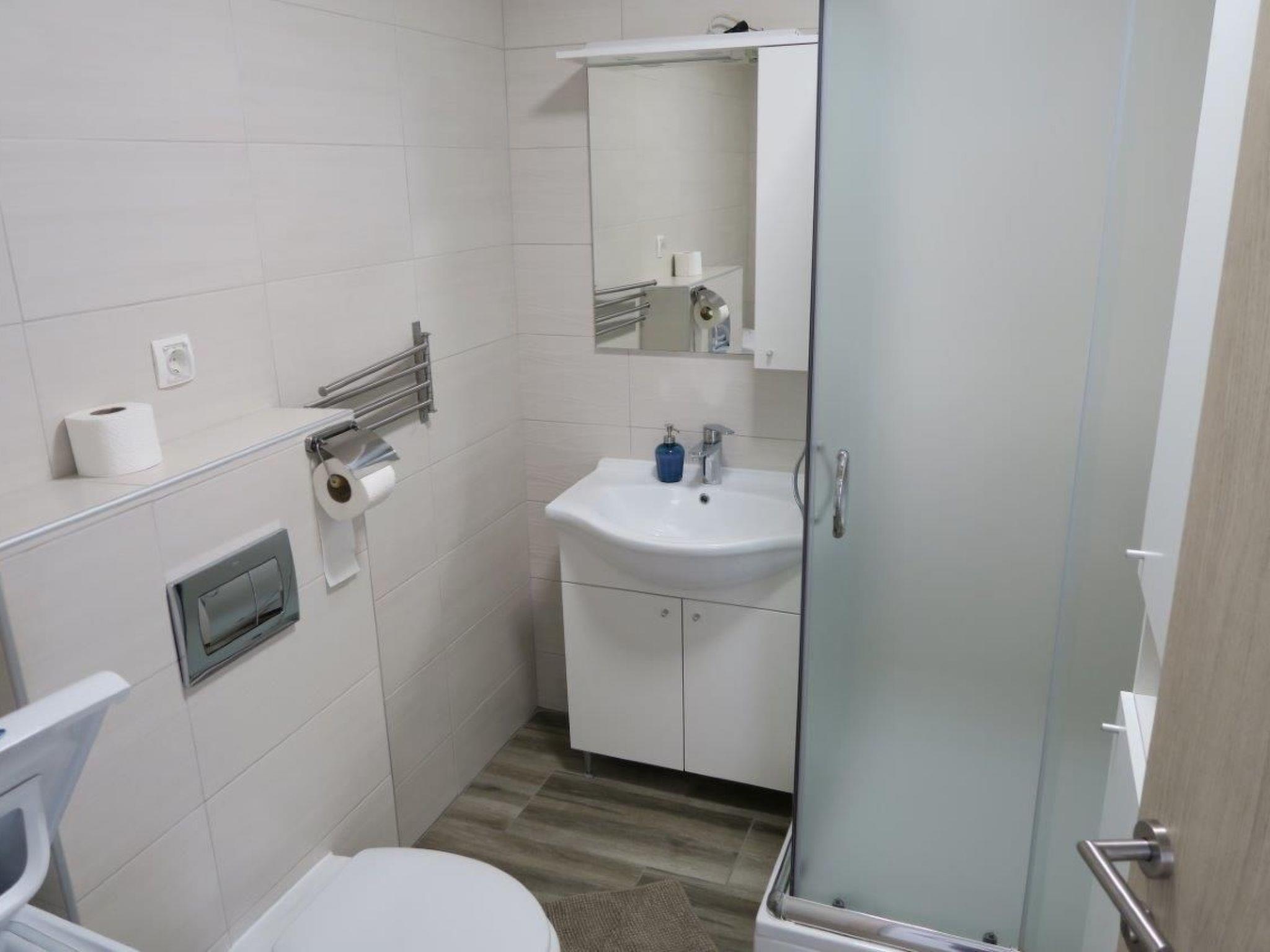 2 bathrooms with a shower, WC, hairdryer and washbasin with a cupboard underneath and washingmachine. The apartment has a 2 big bedroom with a double bed (180 x 200cm) and one bedroom with 2 beds measuring 90 x 200cm. In all roomsm are cupboards. All the rooms in the apartment have air conditioning. Internet access is available in whole apartment.