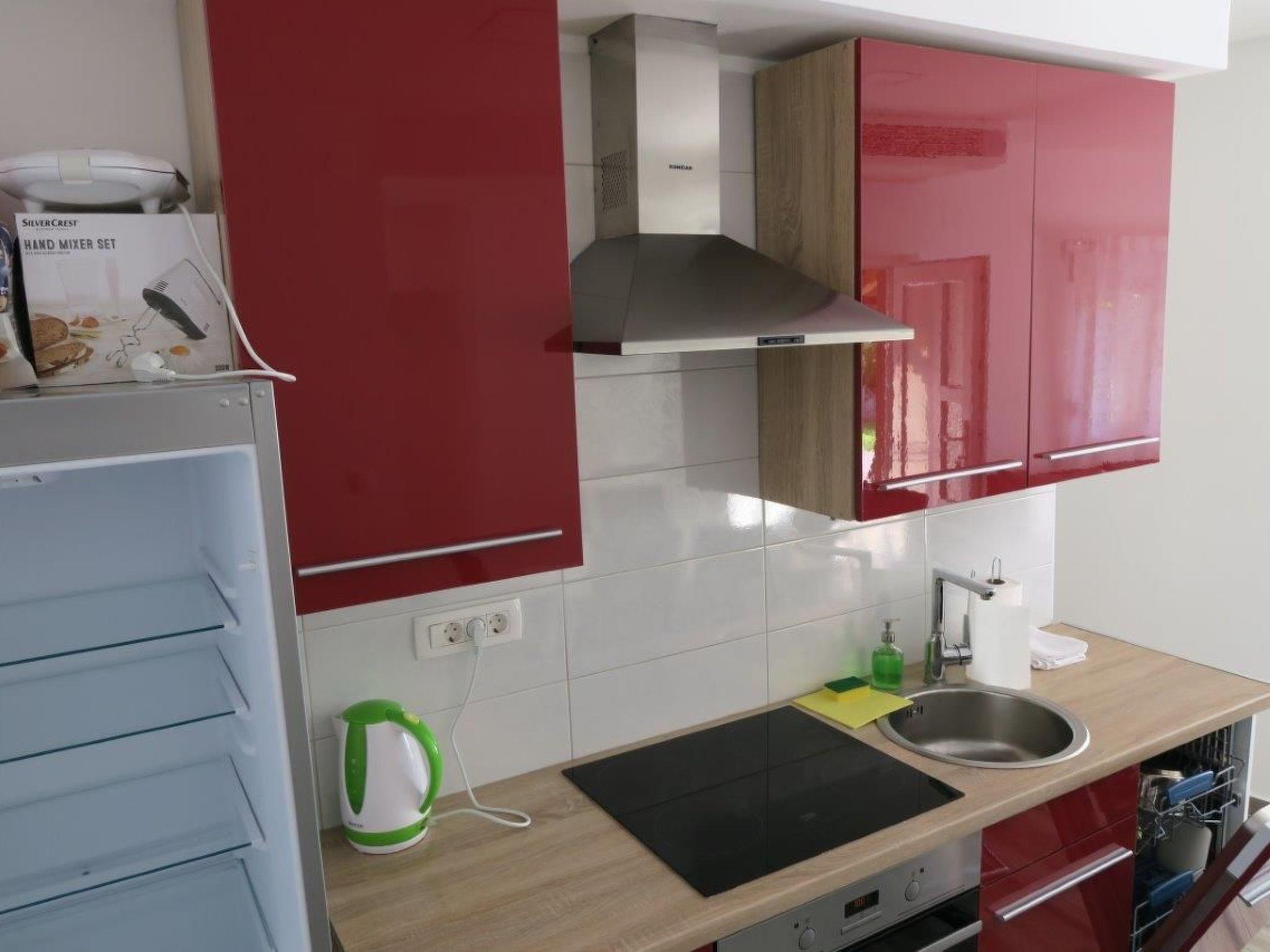 The three bed apartment provides 90m² of living space. The apartment has an open kitchen, fully-equipped with a stove, oven, fridge, microwave, dishwasher and kettle. It has a nice big table with 6 chairs, where you can enjoy meals. The kitchen has an adjoining living room with a flatscreen TV, stereo system and double sofa bed. The sofa measures 90 x 200cm and 180 x 200cm when pulled out. The apartment also has a