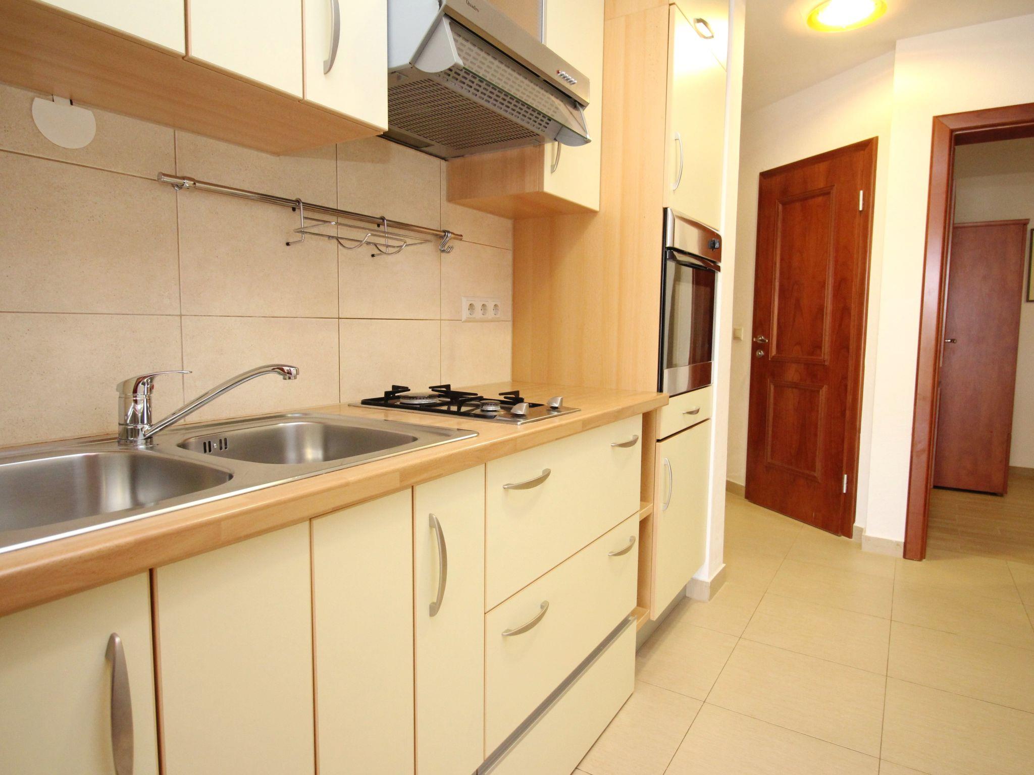 No. of persons: 4-5 Places: 50 m2 (1st floor) Balcony : a private balcony, overlooking the sea, tables and chairs for the balcony are available. Info: Satellite TV, bed linen is provided once a week, towels available (1 large, 1 small / per person and week), use of air conditioning is included in the price of the accommodation, pets are not allowed, final cleaning not included in the price. Equipment holiday flat: Bedroom No.1 : Double room , Double bed , Parquet Bedroom No.2 double room , separate beds , parquet flooring Living area : living room, dining room and kitchen are one unit ; one additional sleeping possibility on a sofa bed ; with balcony ; parquet flooring Kitchen : kitchenette, dining table and seating for all persons, crockery, cooking pots, cutlery etc. available, dish towels available, gas cooker, number of hotplates: 2, oven, fridge with freezer compartment Bathroom : bathroom with WC, with shower Possibility to book Sunday-Sunday.