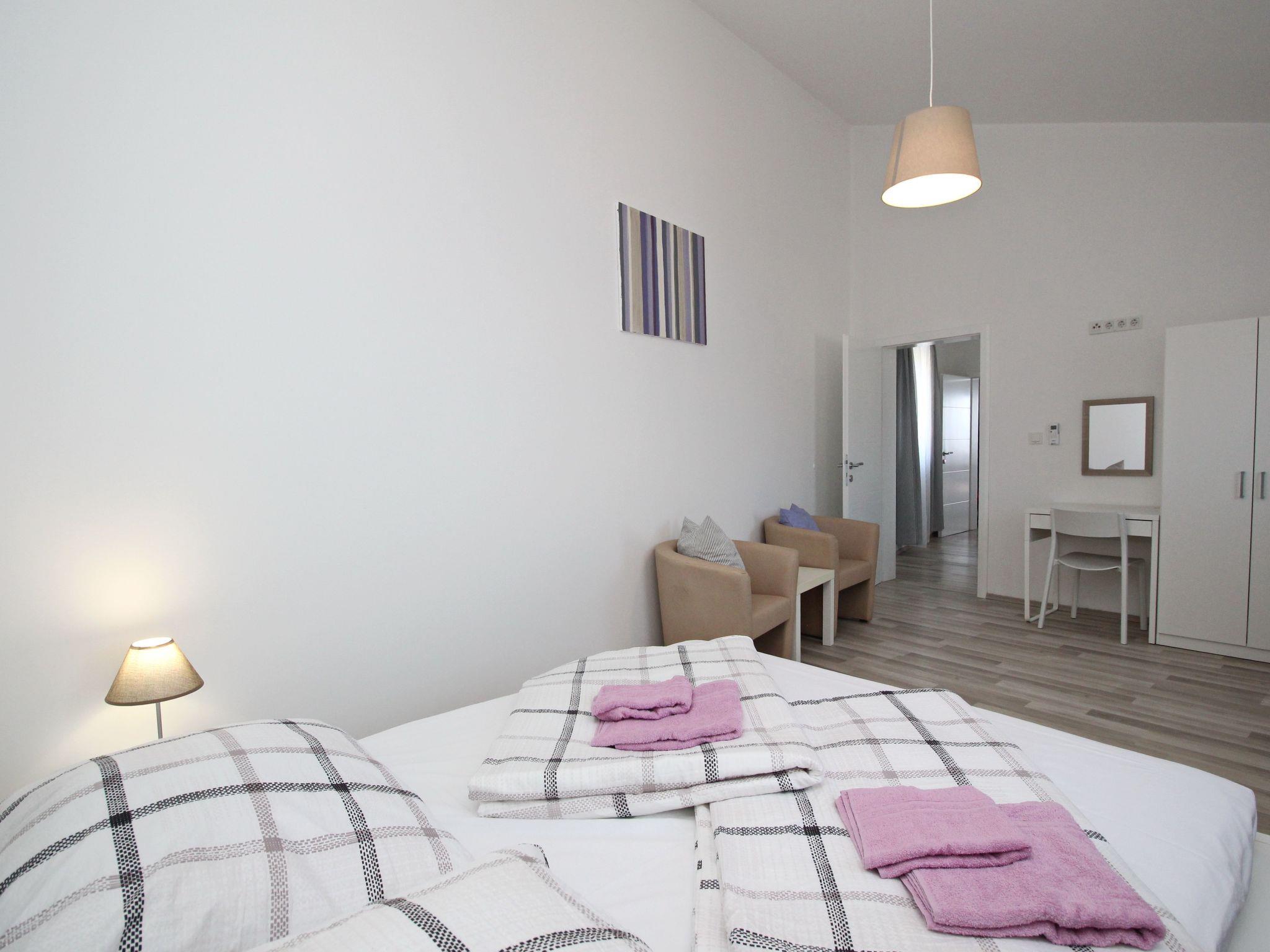 bedroom No.1 double room ; double bed ; laminated wood flooring ; with sea viewbedroom No.2 double room ; double bed ; laminated wood flooring ; with sea viewliving roomdining room, living room and kitchen - one unit; table and chairs for every person; two additional possibilities for sleeping on one sleeping couch; with a balcony; laminated wood flooringkitchenkitchen utensils, pots, cutlery, etc. provided; dish clothes; electric cooker; number of rings: 3; oven; refrigerator with a freezer compartment; coffee machine; toasterbathroombathroom with toilet; with a showerspecial features of the apartment Air-conditioning; air conditioning included in the price: Number 1; Sat-TV; bedding (changed weekly, or every 2 weeks for longer stays); towels (1 large, 1 small/per person and week); One pet permitted (up to 45 cm shoulder height); Internet (WLAN), use free of charge; Prices include the following: change of bedlinen (weekly), final clean at the end of your stay, usage of electricity, gas and water. Informationbalcony own balcony; partially roofed; balcony with sea view; Table and seats provided for balcony; area of balcony: 11m²outside area parking lot