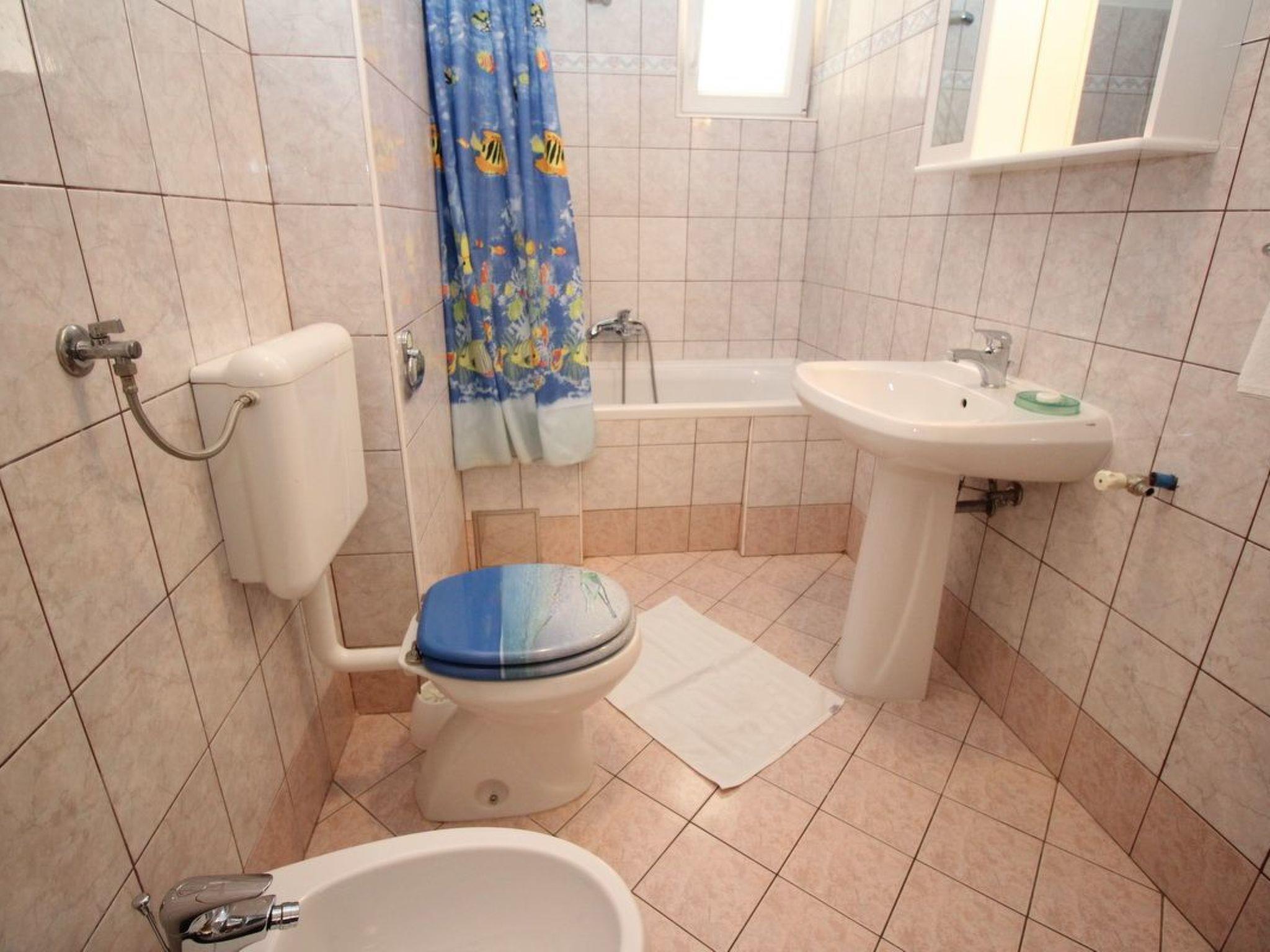 No. of persons: 6 Places: 80 m2 (2nd floor) Balcony : a private balcony, covered, overlooking the sea, tables and chairs for the balcony are available. Info: Satellite TV, bed linen is provided once a week, towels available (1 large, 1 small / per person and week), use of air conditioning is included in the price of the accommodation, pets are not allowed. Equipment holiday flat: Bedroom No.1 : Double room , Double bed , Laminate Bedroom No.2 : Double room , Double bed , Laminate Bedroom No.3 : double room , double bed , laminate living area : living room, dining room and kitchen are one unit ; dining table and seating for all persons ; with balcony ; tiled kitchen : kitchenette, crockery, pots and pans, cutlery etc. are available, tea towels provided, electric cooker, number of hotplates: 4, oven, fridge with freezer compartment, coffee machine bathroom no.1 : bathroom with WC, with bathtub bathroom no.2 : bathroom with WC, with shower