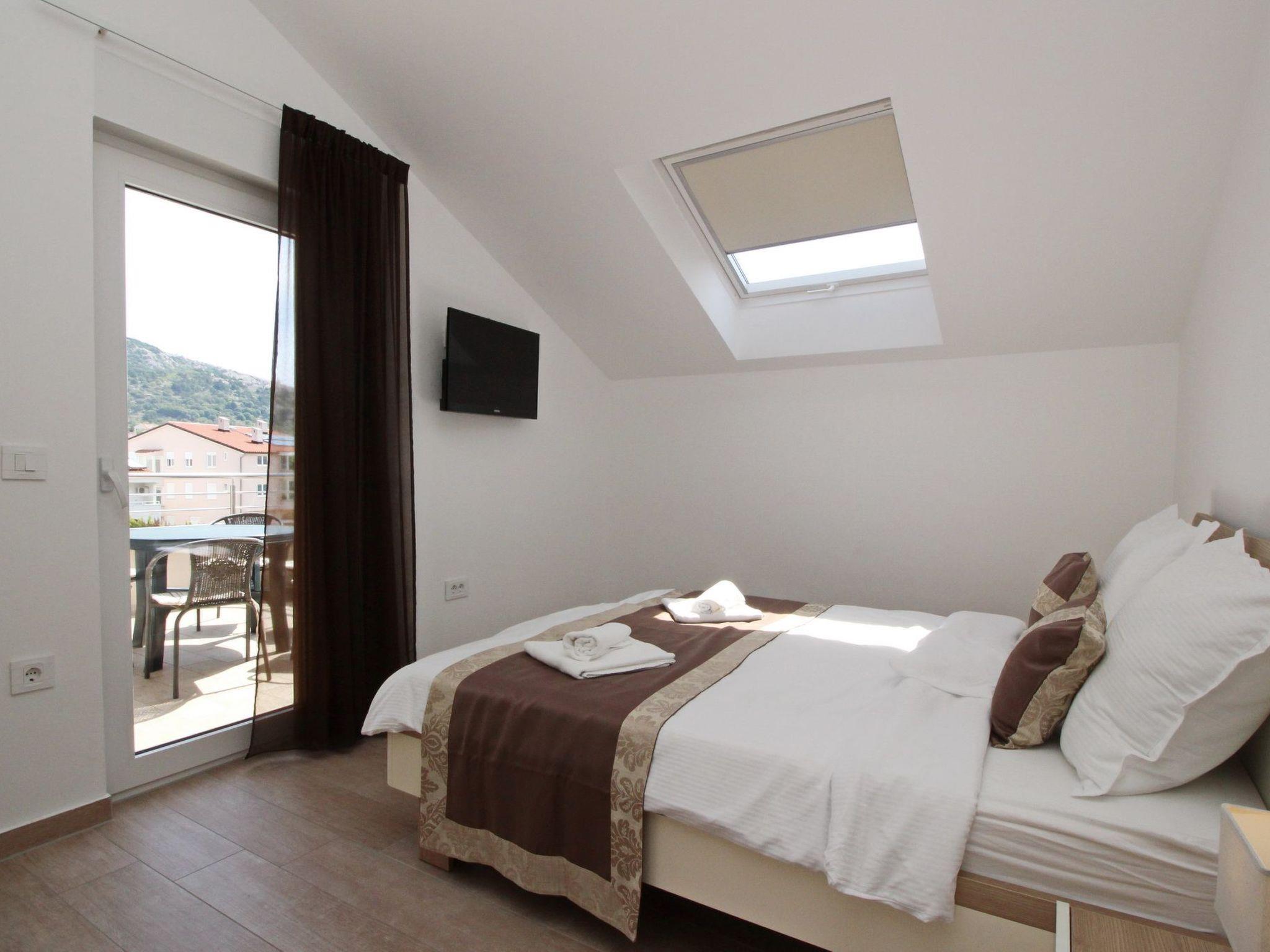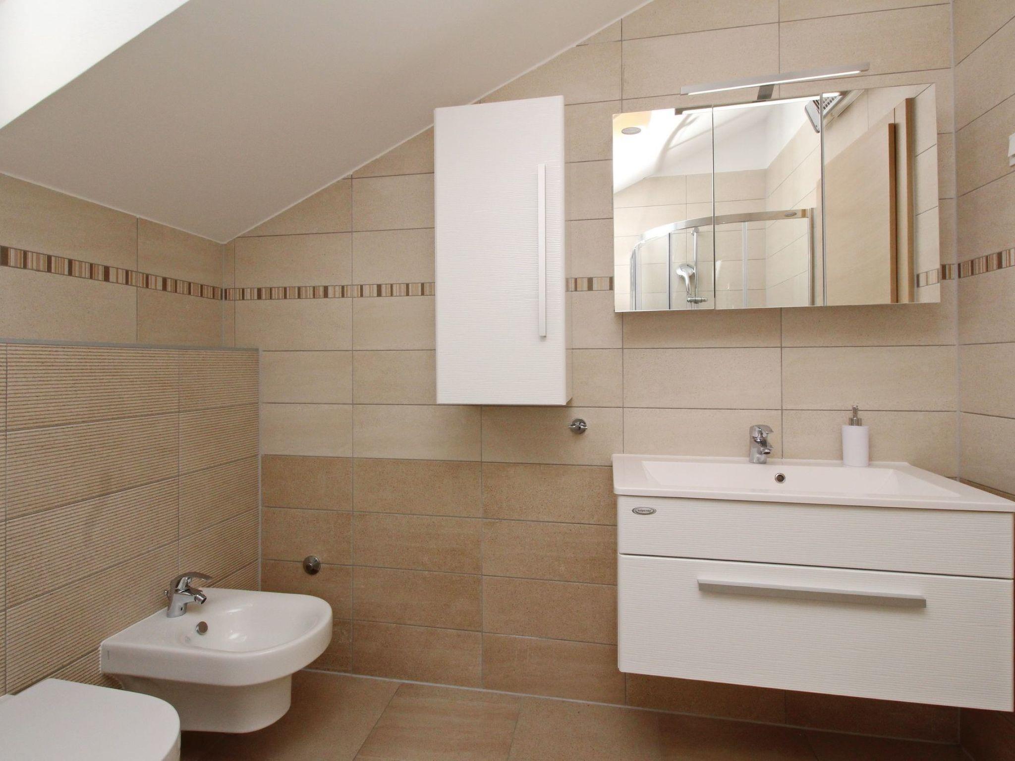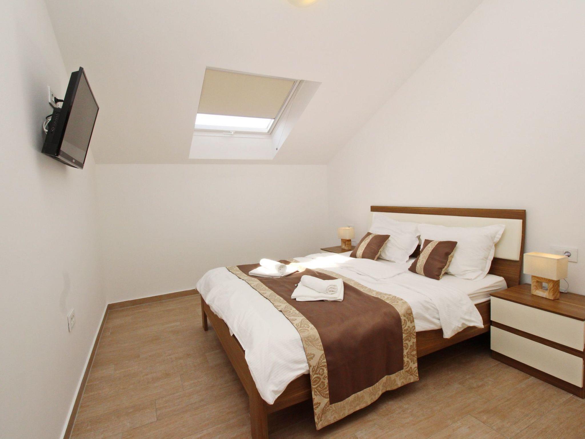 No. of persons: 4-6 Places: 65 m2 (2nd floor) Terrace: private balcony, partly covered, tables and chairs for balcony are available. Info: satellite TV, bed linen is provided once a week, towels available (1 large, 1 small / per person and week), use of air conditioning is included in the price of the accommodation, free Wi-Fi, pets are allowed. Flat facilities: Bedroom no.1 : double room , double bed , exit to balcony, tiled, LCDtv Bedroom no.2 : double room , double bed , tiled, LCDtv Living area : living room, dining room and kitchen are one unit ; one additional sleeping possibility on a sofa bed ; exit to the balcony; tiled Kitchen : kitchenette, dishes, cooking pots, cutlery etc. are available, dish towels available, electric cooker, number of hotplates: 4, refrigerator with freezer compartment, coffee machine, dishwasher Bathroom : bathroom with toilet, with shower Each flat has its own parking space.