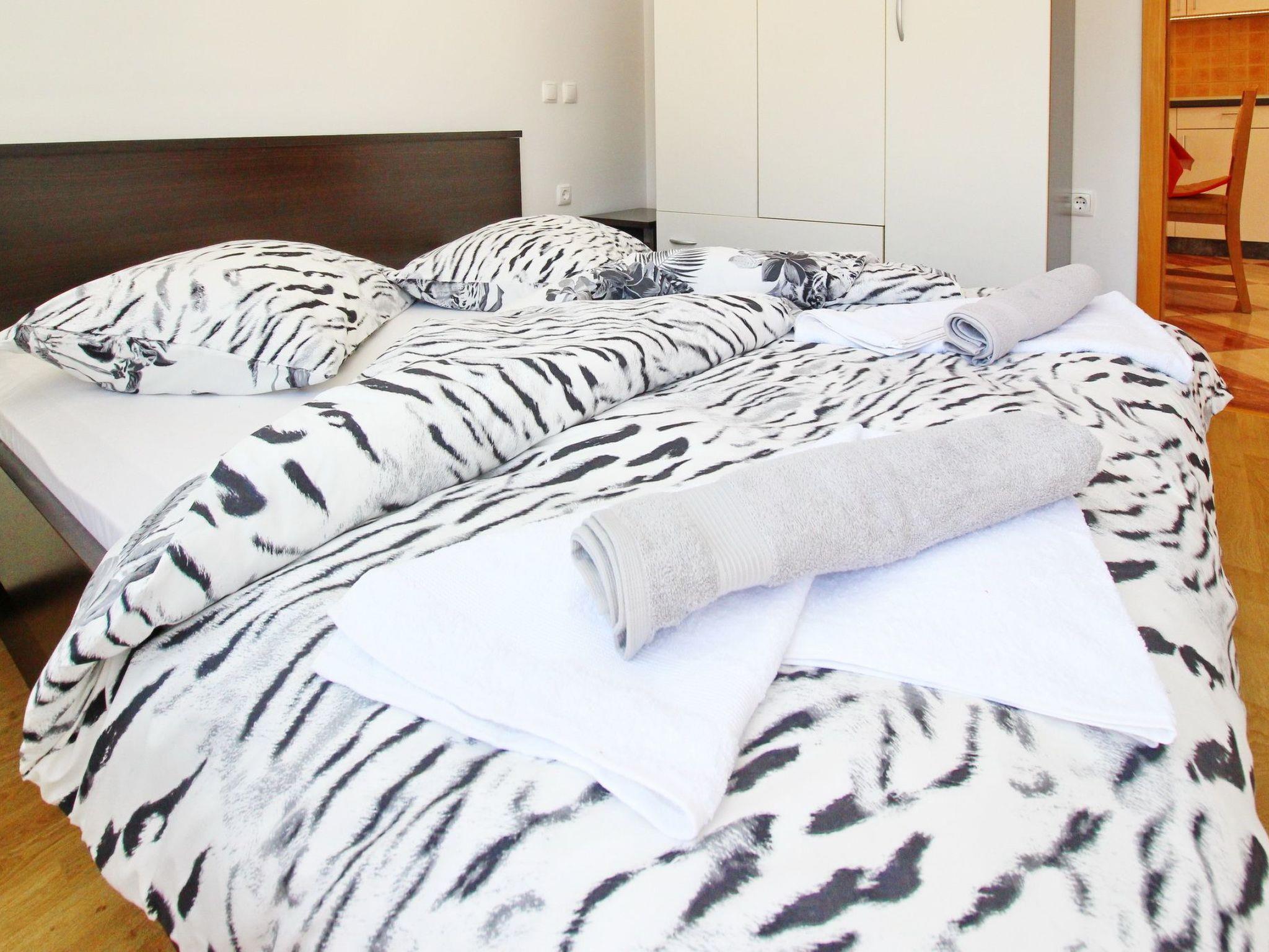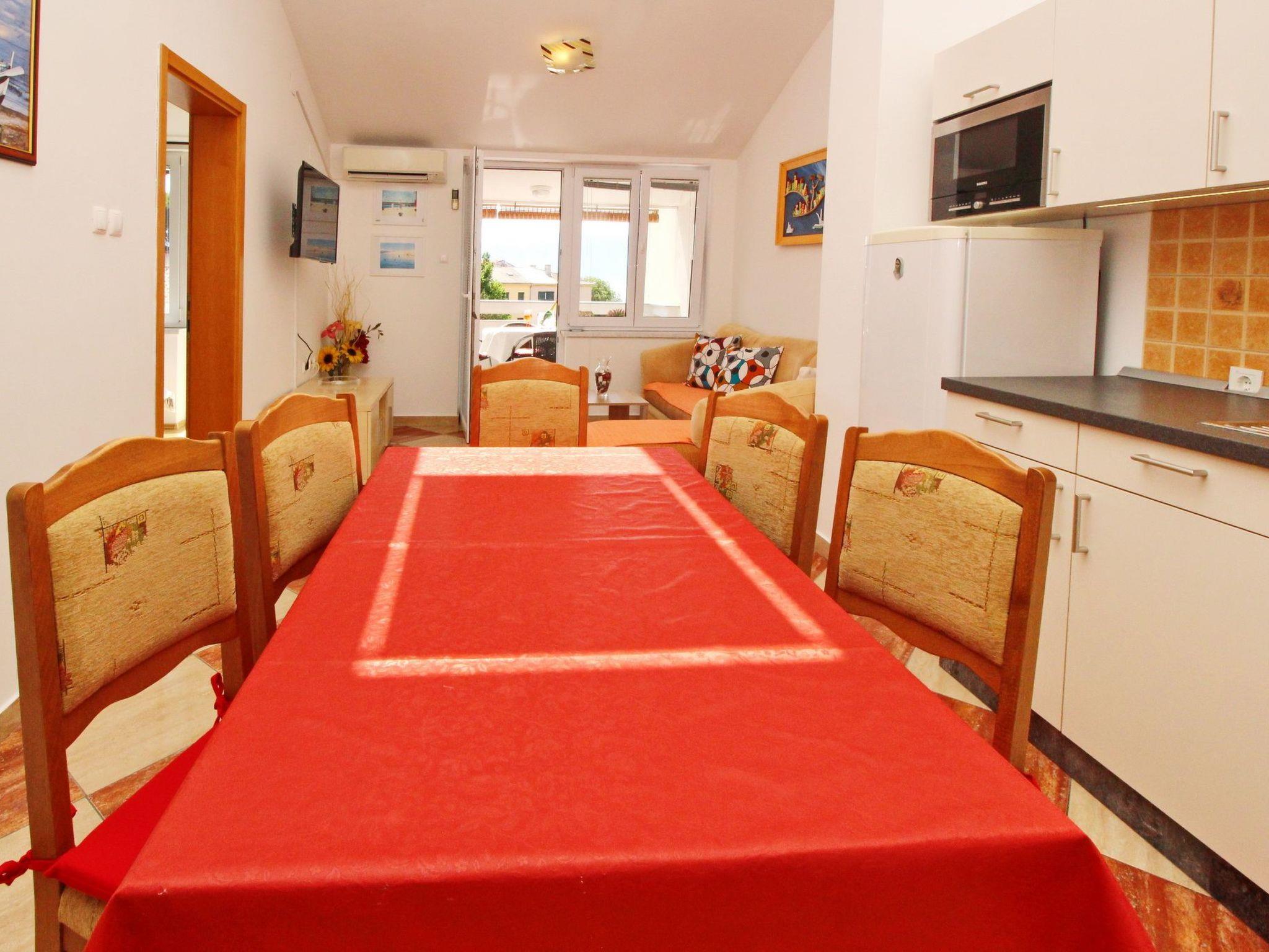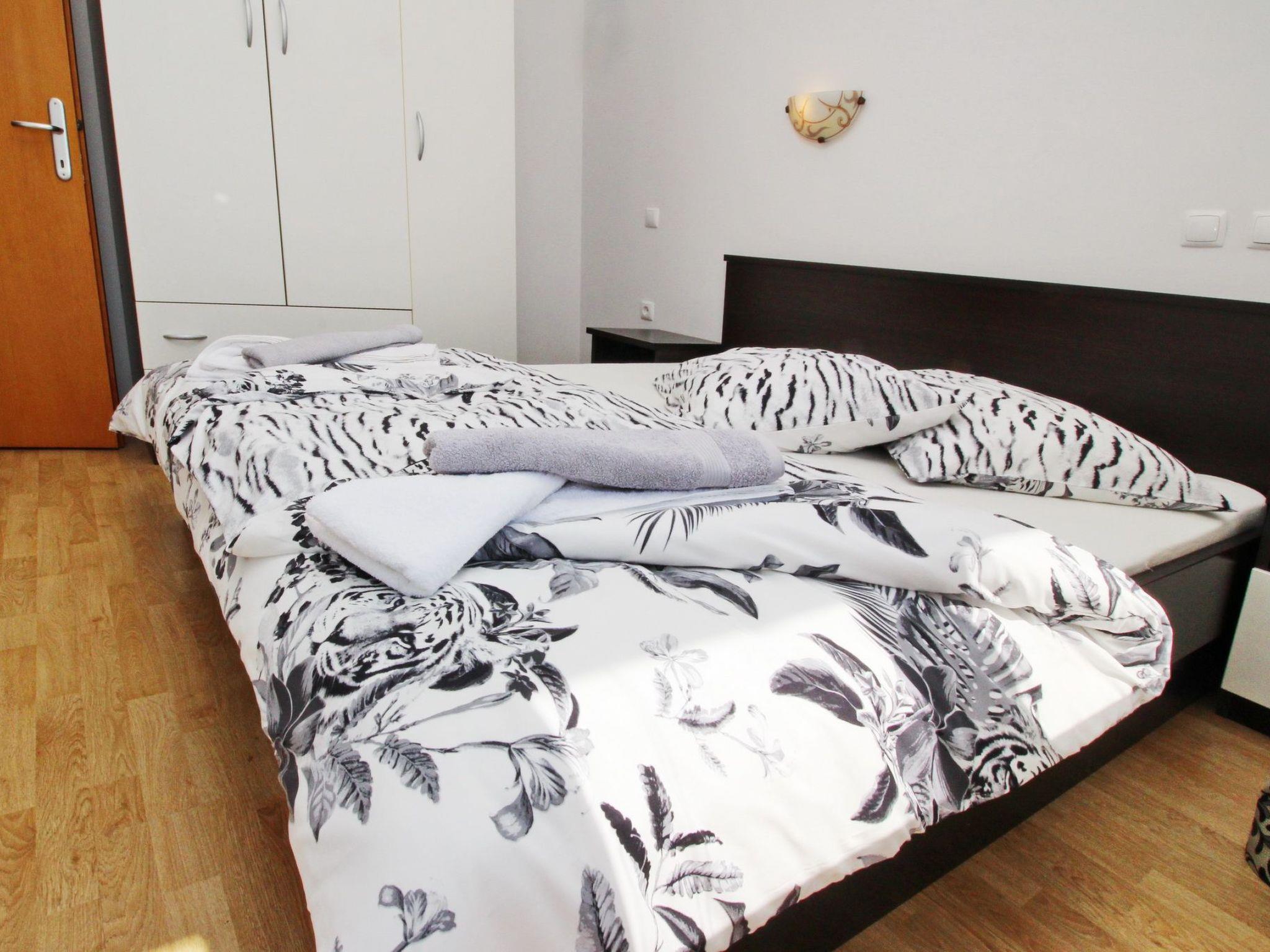 No. of persons: 4 Places: 65 m2 (2nd floor) Balcony : a private balcony (approx. 7 square metres), covered, overlooking the sea, tables and chairs for the balcony are available. Free Wi-Fi, pets are not allowed, car park in the yard. Flat facilities: Bedroom no.1 : double bed , with balcony , laminate Bedroom no.2 : double bed , with balcony , laminate Bathroom : bathroom with toilet, with shower Living area : living room, dining room and kitchen are one unit ; dining table and seating for all persons ; with balcony ; tiled kitchen : kitchenette, dining table and seating for all persons, crockery, pots and pans, cutlery etc. are available, tea towels available, electric cooker, number of hotplates: 4, oven, refrigerator without freezer compartment, coffee machine.