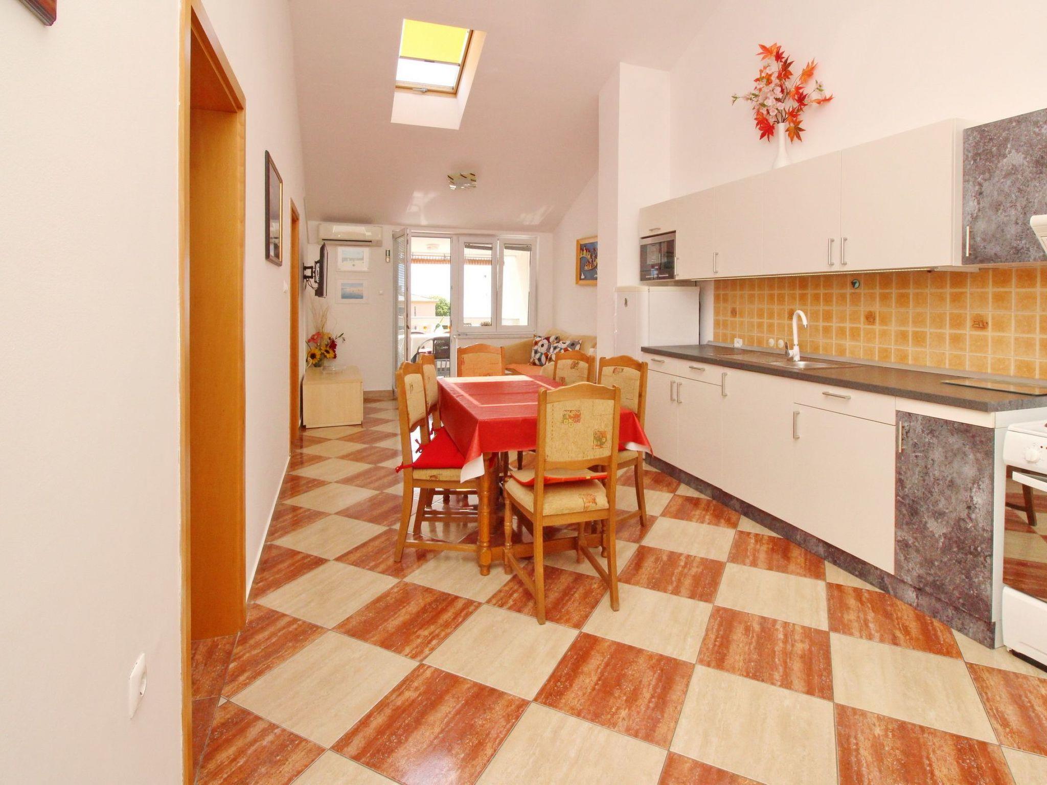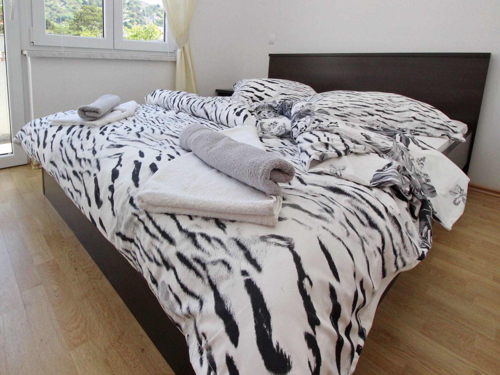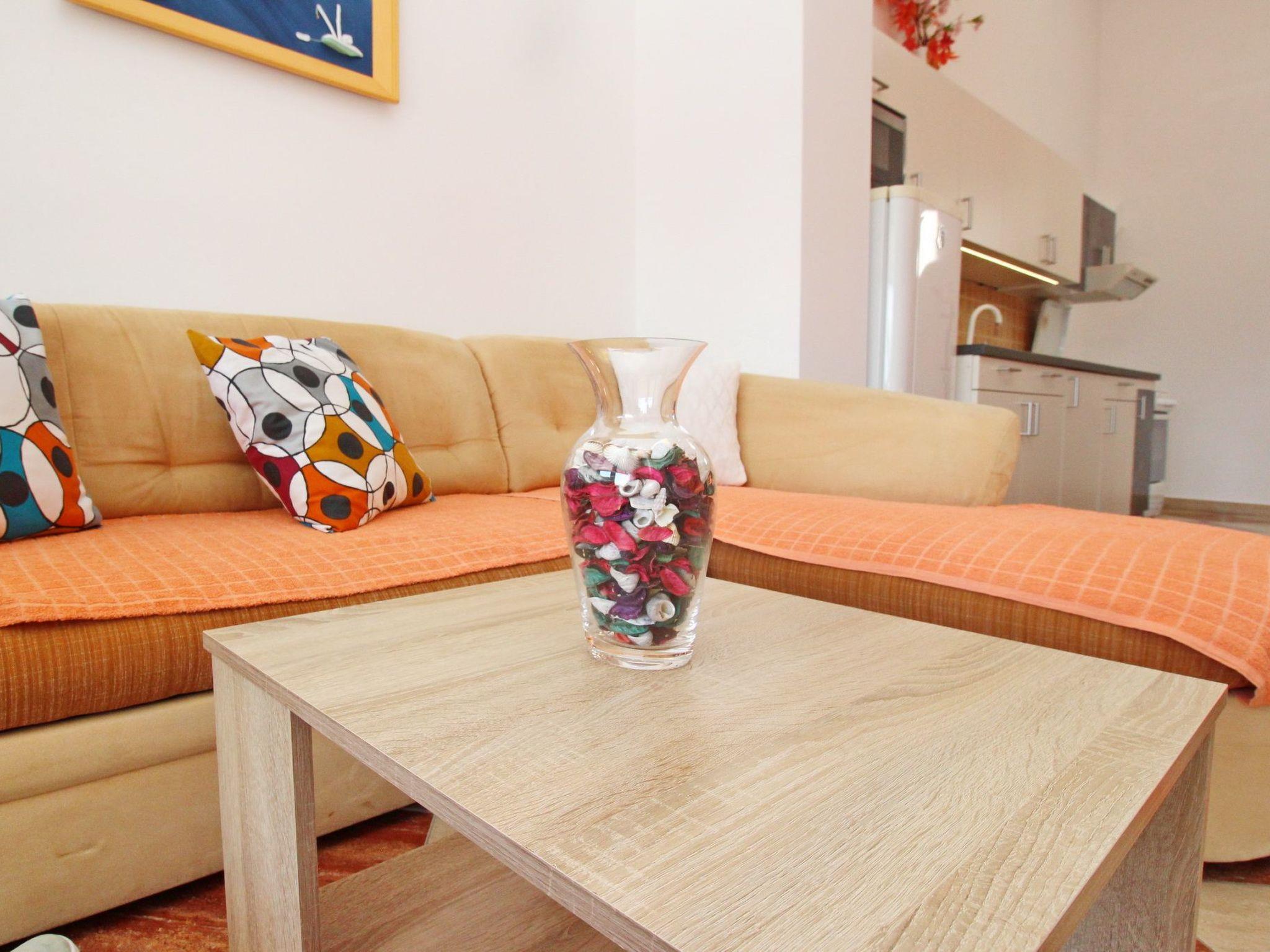 No. of persons: 4 Places: 65 m2 (2nd floor) Balcony : a private balcony (approx. 7 square metres), covered, overlooking the sea, tables and chairs for the balcony are available. Free Wi-Fi, pets are not allowed, car park in the yard. Flat facilities: Bedroom no.1 : double bed , with balcony , laminate Bedroom no.2 : double bed , with balcony , laminate Bathroom : bathroom with toilet, with shower Living area : living room, dining room and kitchen are one unit ; dining table and seating for all persons ; with balcony ; tiled kitchen : kitchenette, dining table and seating for all persons, crockery, pots and pans, cutlery etc. are available, tea towels available, electric cooker, number of hotplates: 4, oven, refrigerator without freezer compartment, coffee machine.