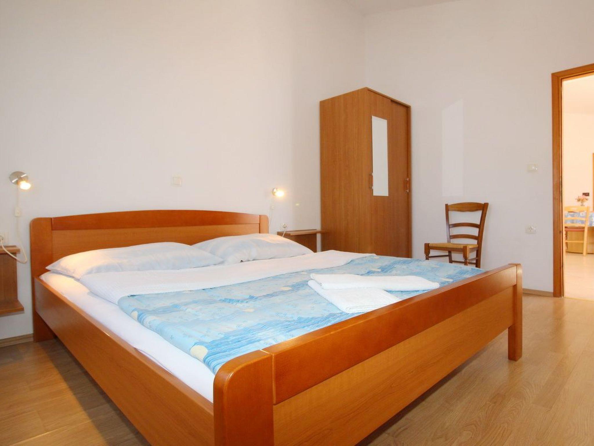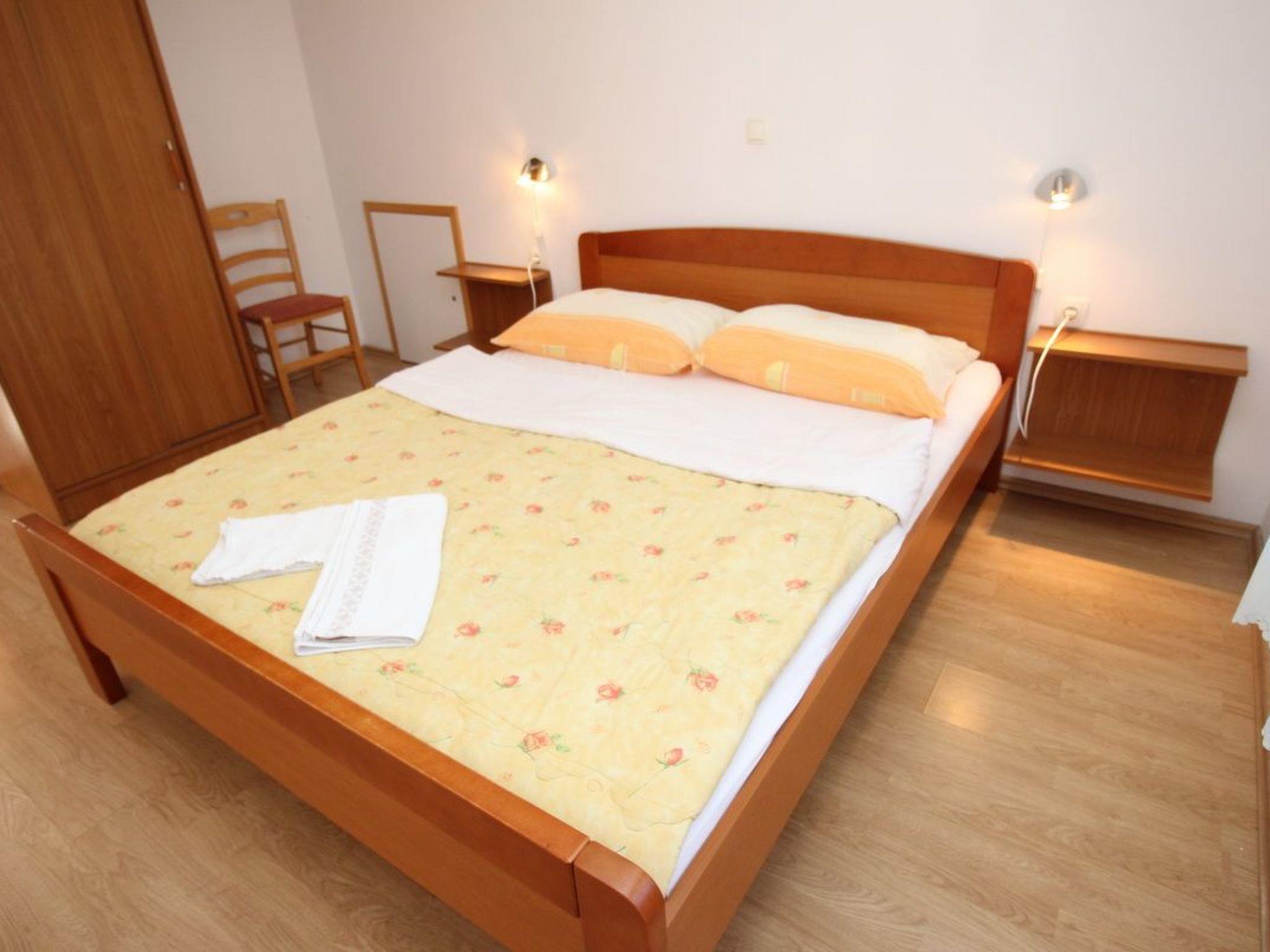 No. of persons: 4 Places: 45 m2 (3rd floor) Balcony : a private balcony, overlooking the sea, tables and chairs for the balcony are available. Info: Satellite TV, bed linen is provided once a week, towels available (1 large, 1 small / per person and week), use of air conditioning is included in the price of the accommodation, pets are not allowed. Flat facilities: Bedroom no.1 : Double room , Double bed , Laminate Bedroom no.2 : Double room , Double bed , Laminate