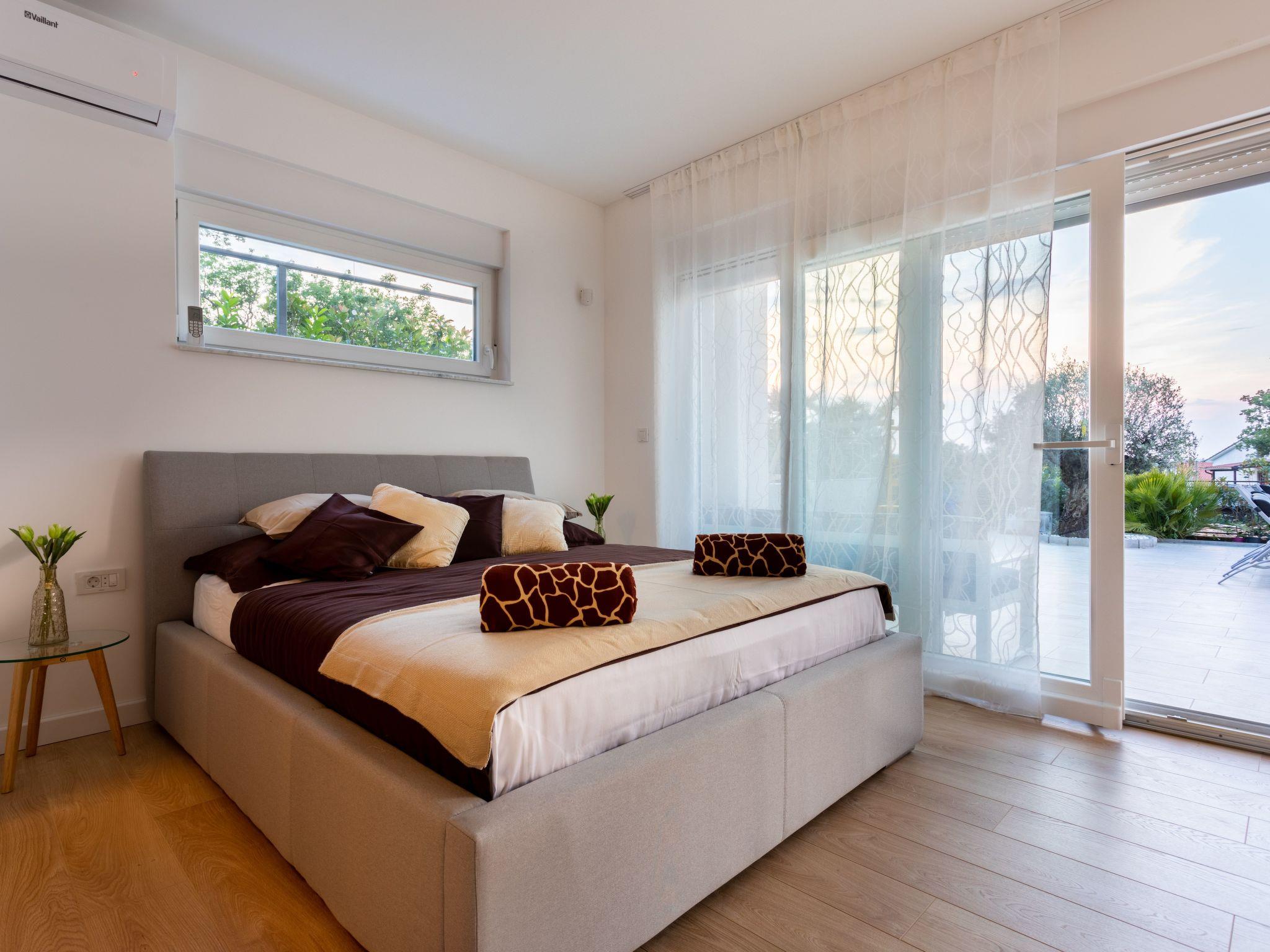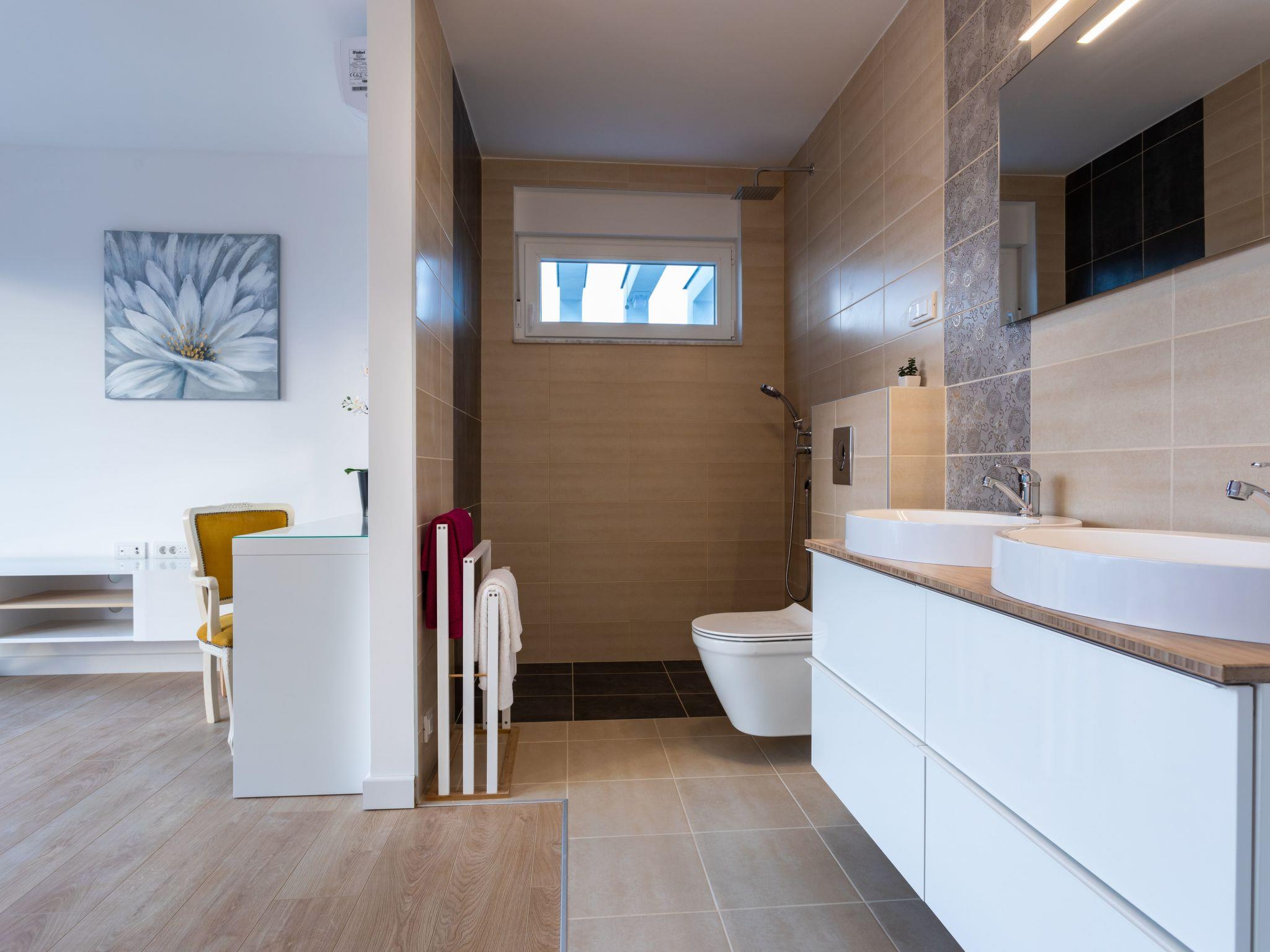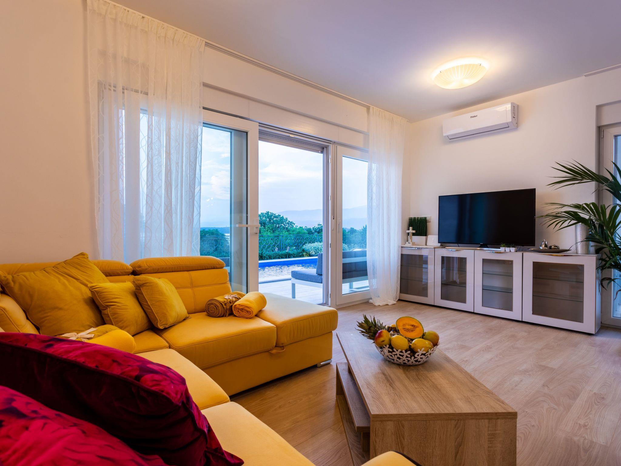 The beautiful Villa Zara***** with swimming pool, hot tub and sauna is located in the small tourist town of Klimno on the island of Krk, which is far enough away from the tourist bustle, crowds and traffic, but at the same time it is located near beautiful beaches and promenades where you can enjoy in summer days. The nearest beach is only 150 meters from the villa, and there are also shops, restaurants and other facilities nearby that will complete your stay.Villa Zara, which is equipped according to the highest standards, extends over two floors and can host up to 8 people in four bedrooms with double beds, one of which contains a sauna, and consists of 4 bathrooms and a separate toilet, a spacious living room with a dining room and a fully equipped kitchen on the ground floor of the house. Here you can also find a hot tub that overlooks the terrace and garden.At the exit of the villa there is a wonderful terrace with a view of the heated swimming pool and the sea, where you will surely enjoy the relaxing atmosphere and rest from the busy everyday life.Villa Zara is ideal to stay at any time of the year because it is fully air-conditioned and also has central heating, a romantic fireplace in the living room, a heated swimming pool and a heated hydromassage tub. Villa Zara is perfect for your vacation and it is exactly what you deserve!