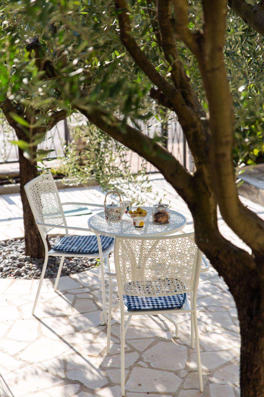 Like in the other ground-floor apartment, you can enjoy your morning coffee in rural peace and quiet in the mornings on the big terrace, nestled amidst abundant greenery.