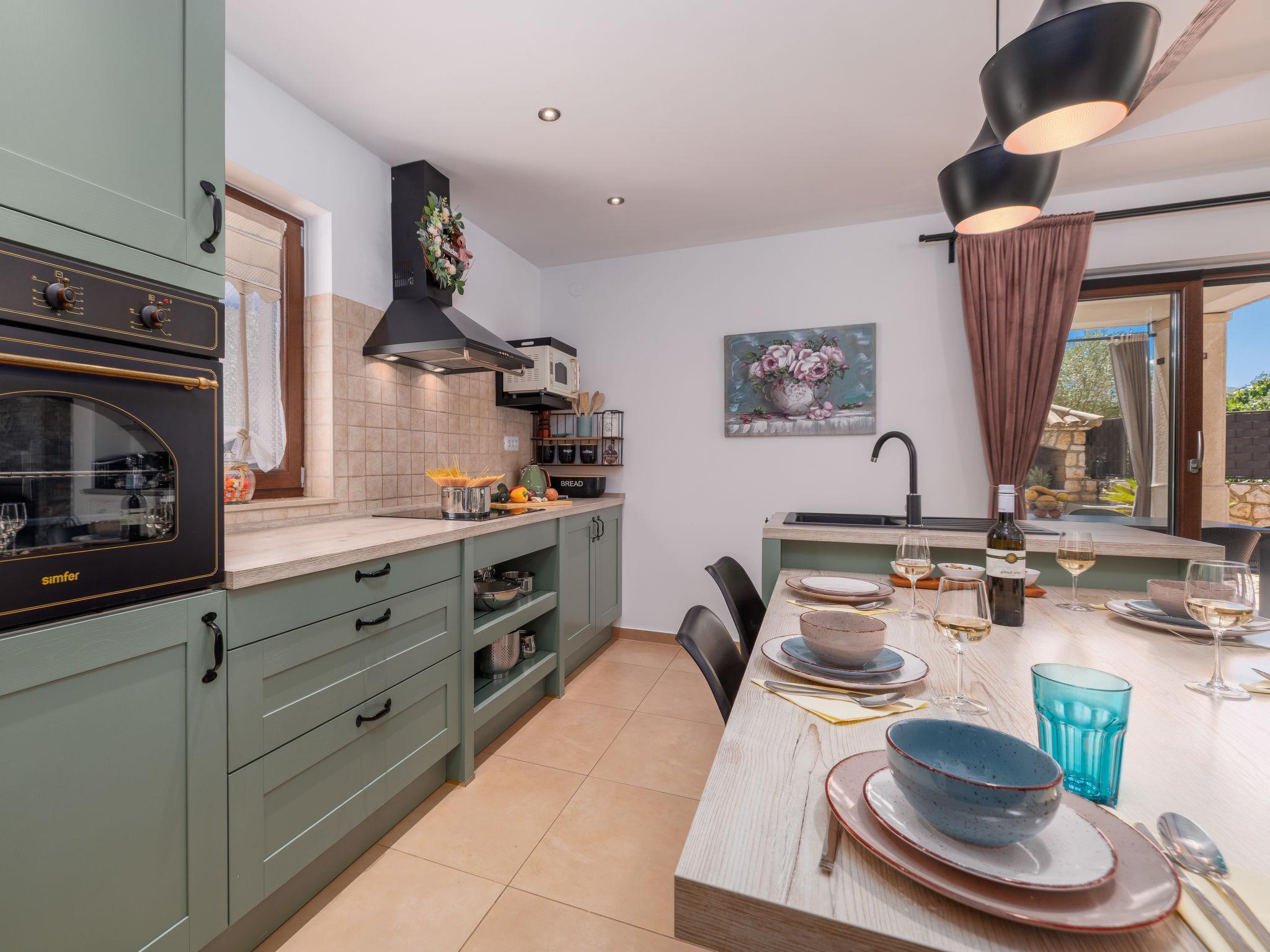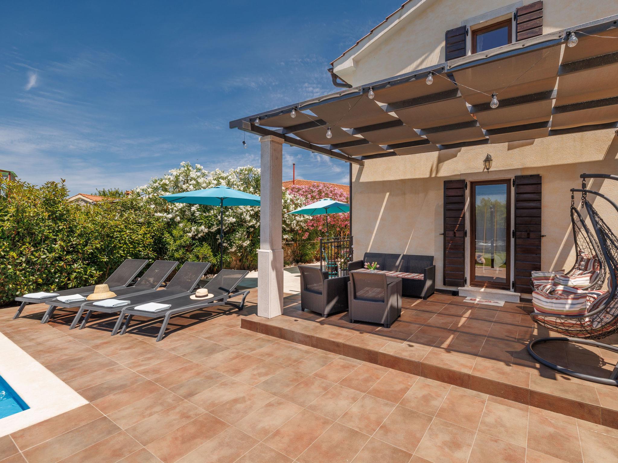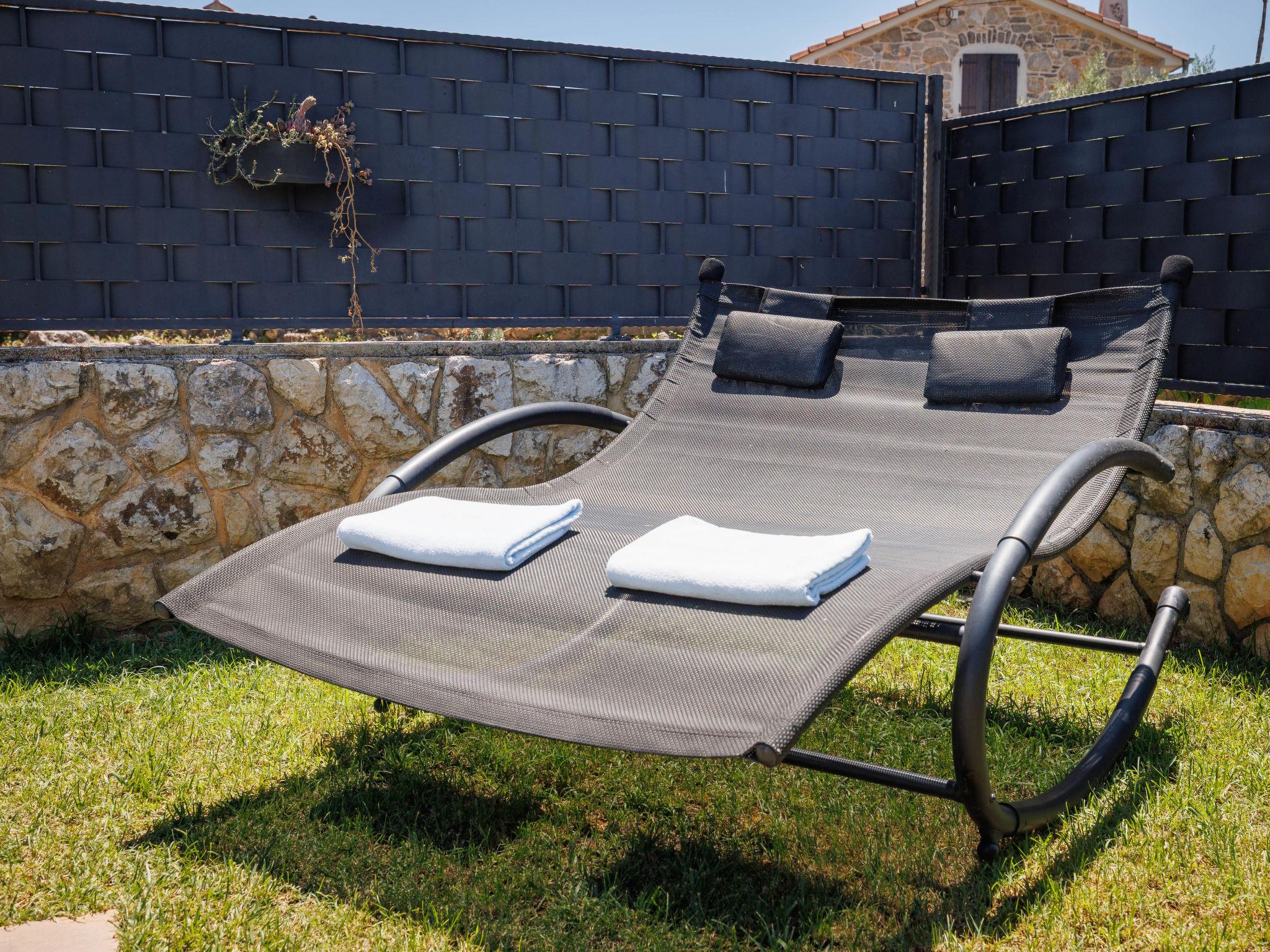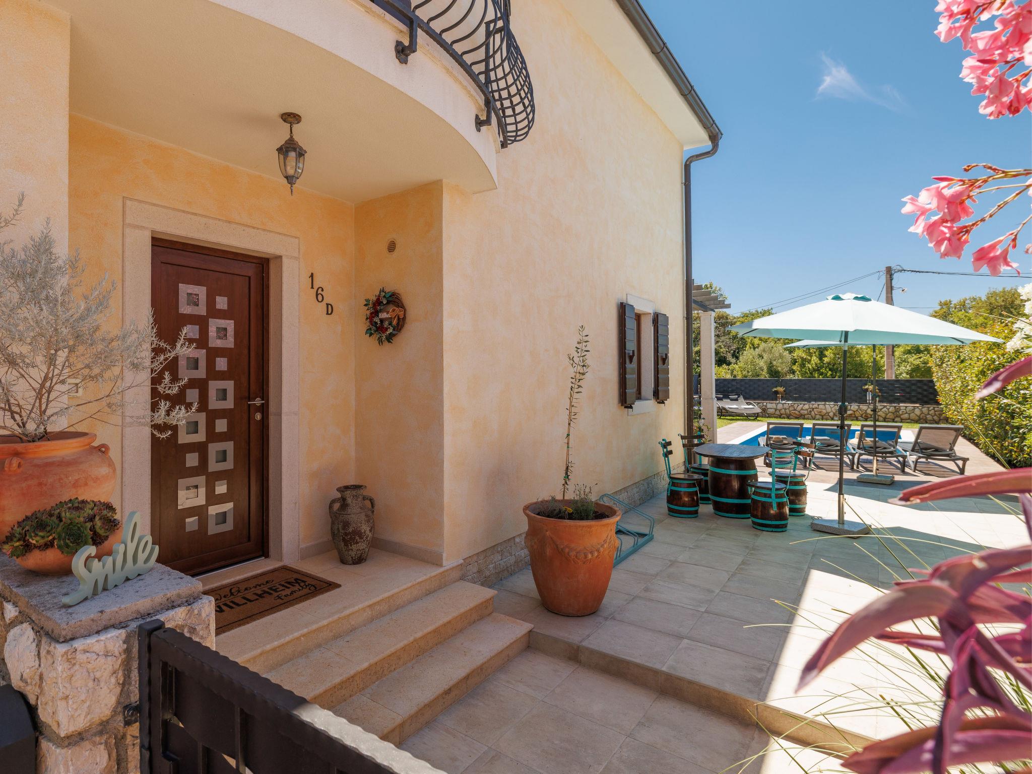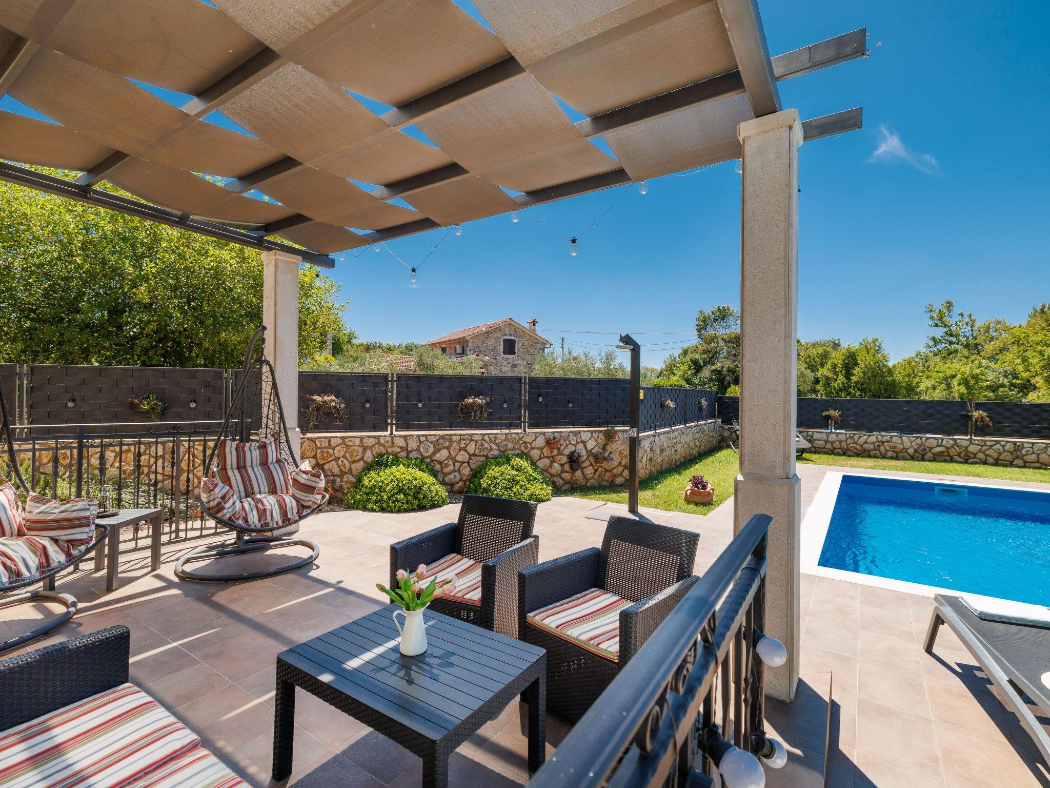 Sv.Ivan Dobrinjski 5 km from Dobrinj: Beautiful single-family house "Villa Willheim", 2 storeys. 4.5 km from the centre of Soline, 6 km from the centre of Malinska, 10 km from the centre of Šilo, in a sunny position, 3.5 km from the sea, 4 km from the beach. Private: property 500 m2 (fenced) with wildlife garden, beautiful garden to relax, swimming pool angular (6 x 3 m, 20 m2, depth 145 cm, seasonal availability: 18.Apr. - 10.Oct.) with internal staircase. Outdoor shower, barbecue, children's playground, pool maintenance by the owner/gardener. In the house: internet access, washing machine. Parking (for 2 cars) at the house on the premises. Shop 3 km, supermarket 5 km, restaurant 3 km, bus stop 4 km, pebble beach 4 km, concrete beach 4 km. Please note: airfield 18 km from the property.
