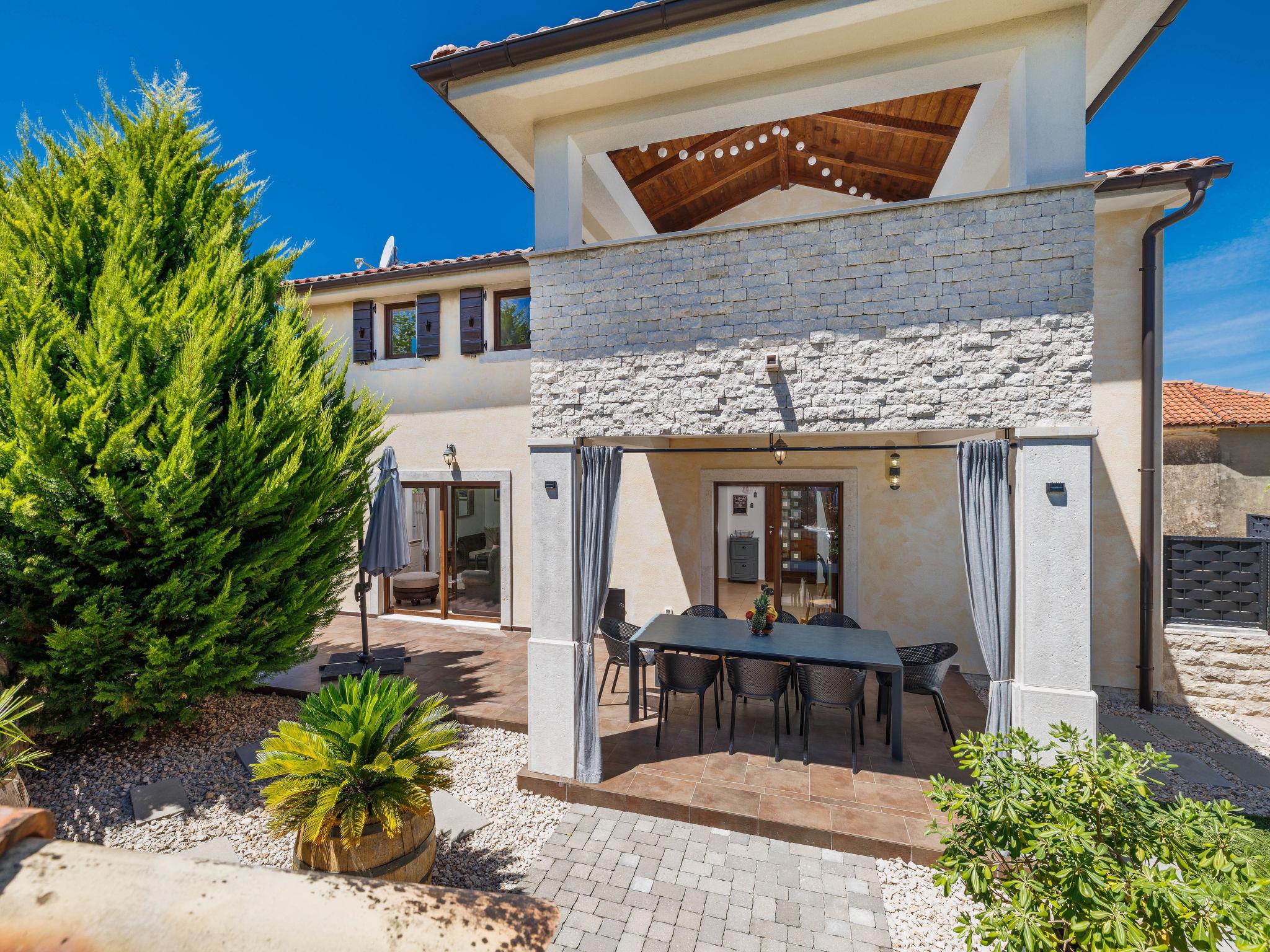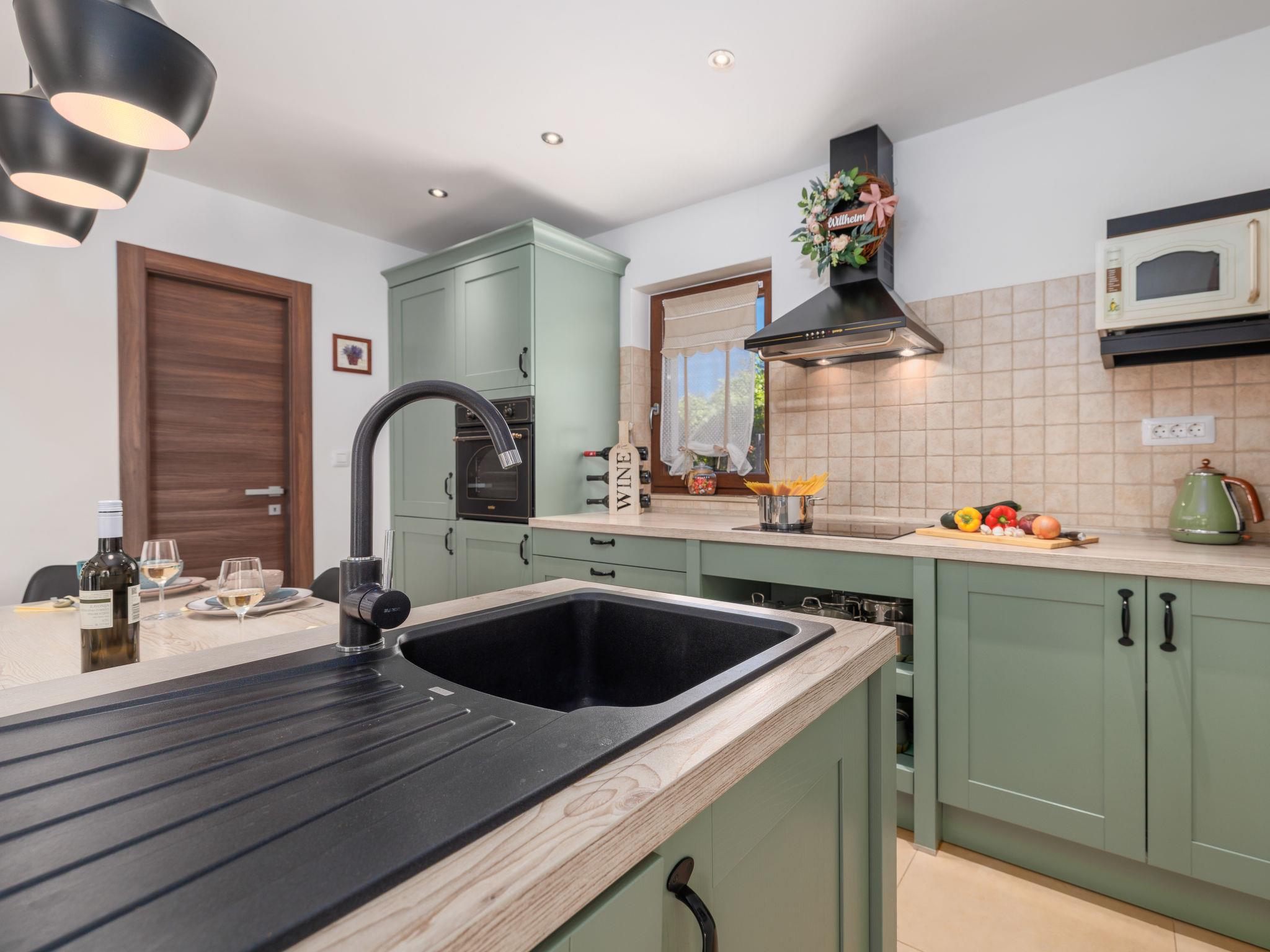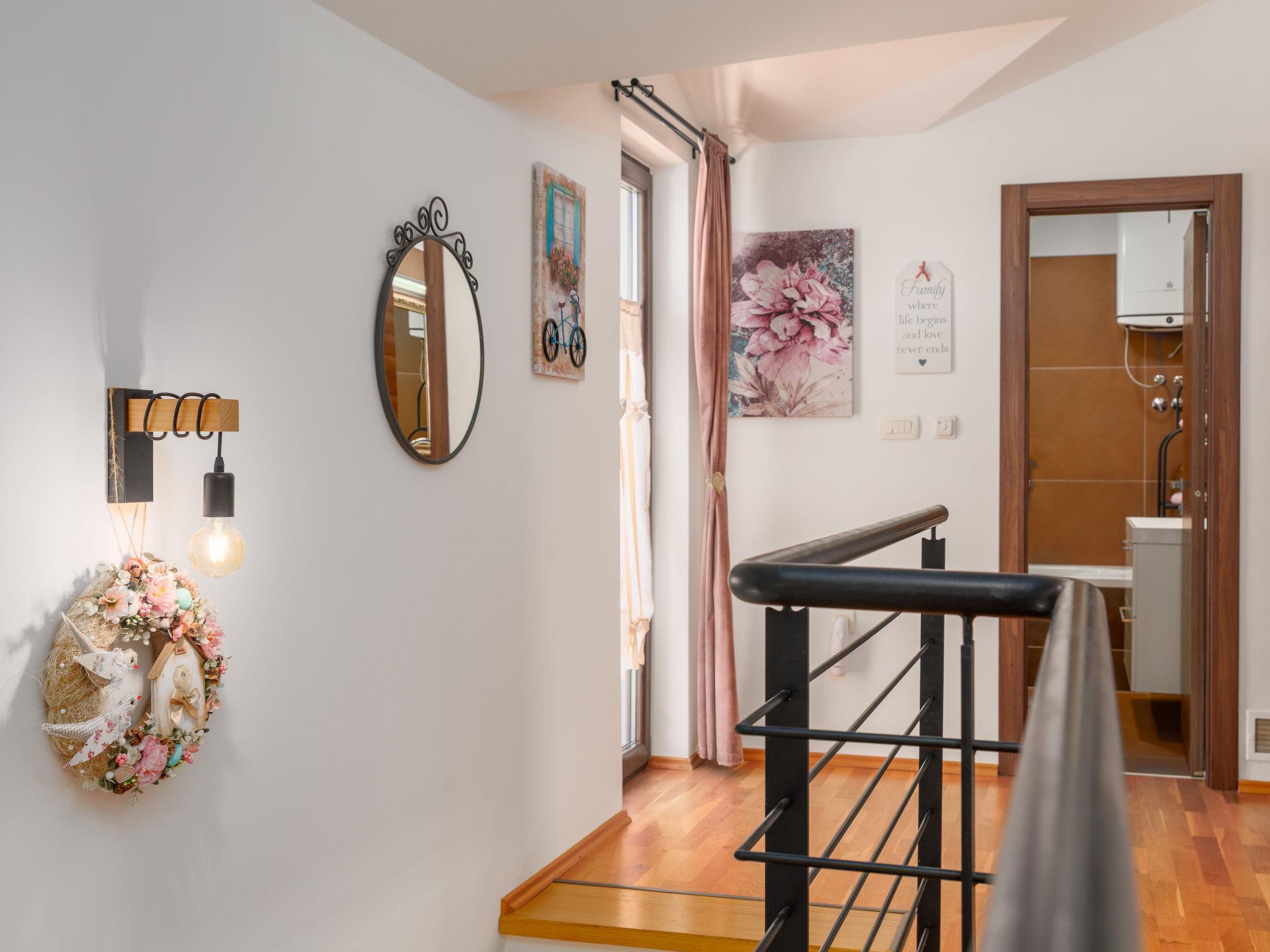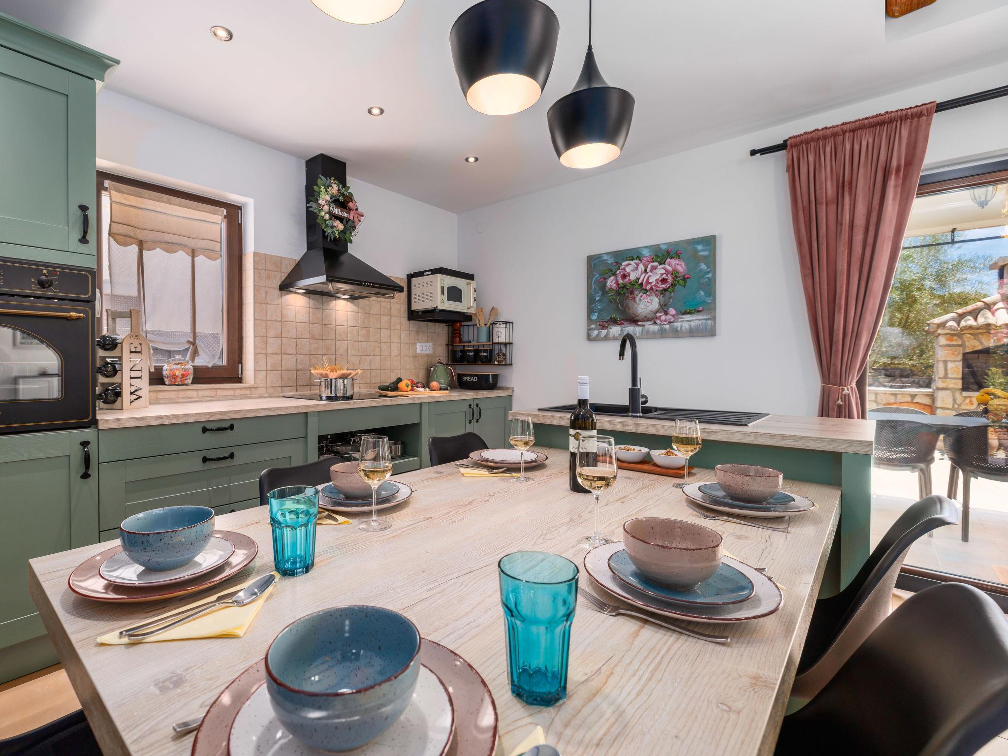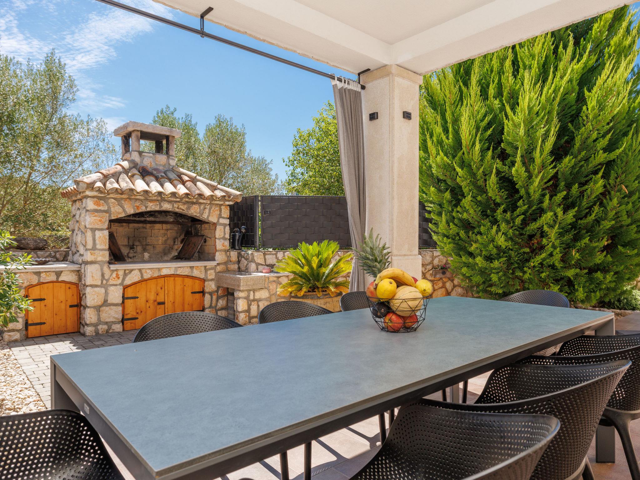 Sv.Ivan Dobrinjski 5 km from Dobrinj: Beautiful single-family house "Villa Willheim", 2 storeys. 4.5 km from the centre of Soline, 6 km from the centre of Malinska, 10 km from the centre of Šilo, in a sunny position, 3.5 km from the sea, 4 km from the beach. Private: property 500 m2 (fenced) with wildlife garden, beautiful garden to relax, swimming pool angular (6 x 3 m, 20 m2, depth 145 cm, seasonal availability: 18.Apr. - 10.Oct.) with internal staircase. Outdoor shower, barbecue, children's playground, pool maintenance by the owner/gardener. In the house: internet access, washing machine. Parking (for 2 cars) at the house on the premises. Shop 3 km, supermarket 5 km, restaurant 3 km, bus stop 4 km, pebble beach 4 km, concrete beach 4 km. Please note: airfield 18 km from the property.