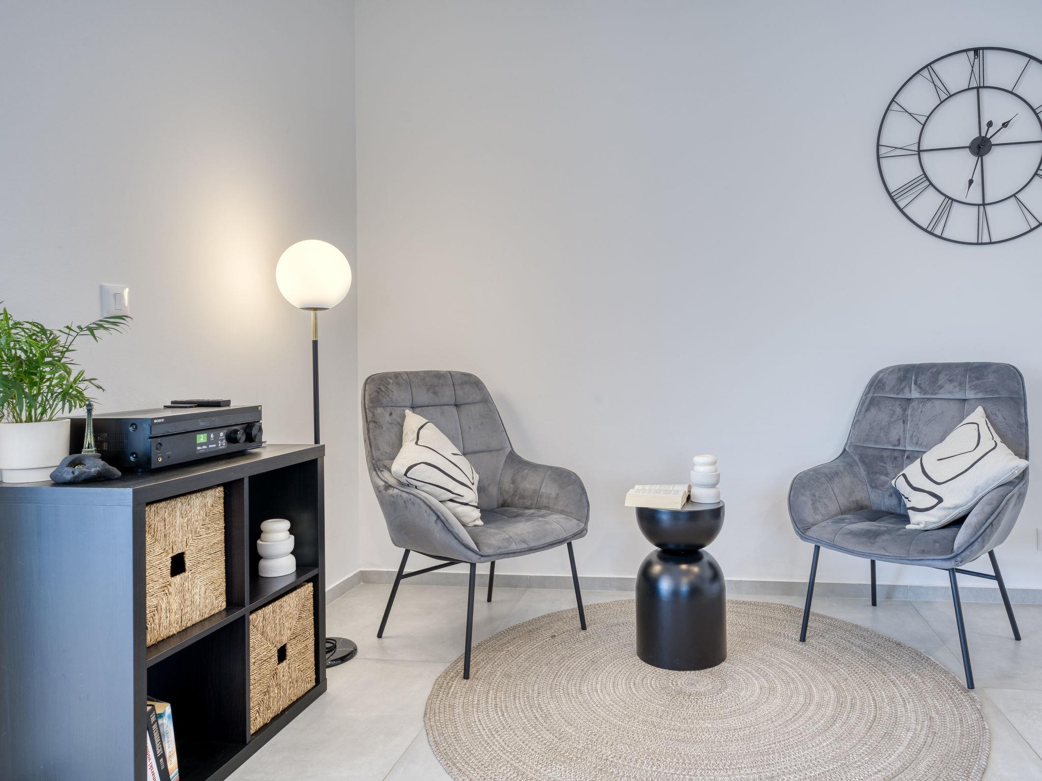 6-room villa 320 m2 on 3 levels. Comfortable and modern furnishings: living/dining room with satellite TV. Exit to the garden, to the swimming pool. 2 rooms, each room with 1 french bed (180 cm, length 200 cm), shower/WC and satellite TV. 2 rooms, each room with 1 bed (90 cm, length 200 cm), 1 french bed (180 cm, length 200 cm), shower/WC and satellite TV. Open kitchen (oven, dishwasher, 4 induction hot plates, toaster, kettle, microwave, freezer, electric coffee machine). On the lower ground floor: shower, sep. WC. Upper floor: (open staircase), 1 room with 1 french bed (180 cm, length 200 cm), shower/WC and satellite TV. Exit to the balcony. Floor heating. Large balcony 40 m2. Balcony furniture, barbecue, deck chairs. Beautiful panoramic view of the sea and the countryside. Facilities: Internet (WiFi, free). Please note: non-smoking house. Smoke alarm, fire extinguisher. Instead of an enclosed bedroom, some sleeping areas are located in an open-plan area (gallery, alcove, etc.).