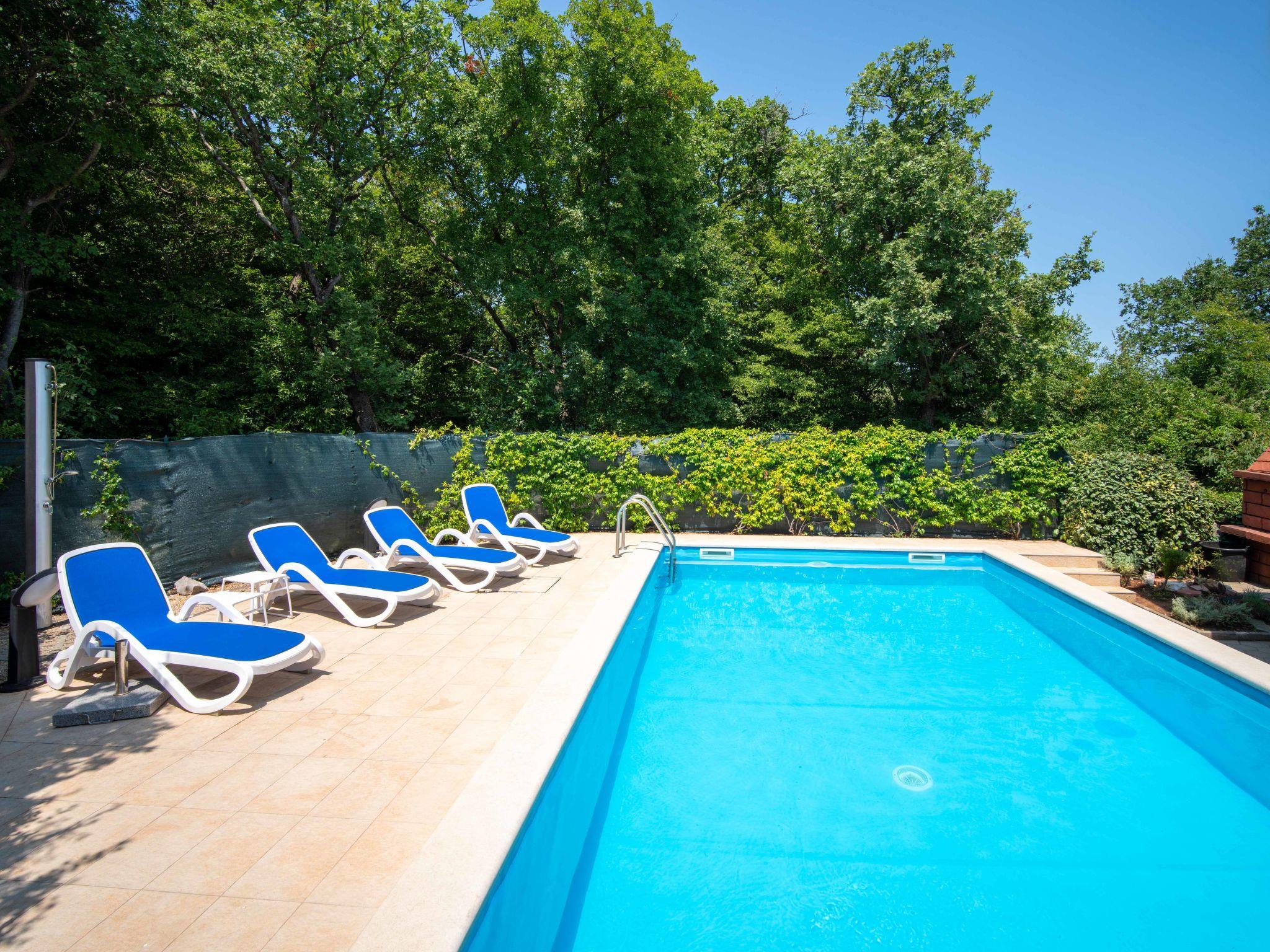 Single-family house "Graziani", 2 storeys, renovated in 2025. 350 m from the centre of Kornic, 3.5 km from the centre of Punta, in a quiet, sunny position, 1.4 km from the sea, 1.4 km from the beach, in a cul-de-sac, in the countryside. Private: property 724 m2 (fenced), swimming pool heated (32 m2, depth 150 cm, seasonal availability: 01.May. - 15.Oct.). Unconventional pool shape. Terrace (35 m2), barbecue, children's playground (swing). In the house: internet access, washing machine. Parking (for 4 cars) at the house on the premises. Shop 350 m, restaurant 1.4 km, bus stop 1.6 km, pebble beach 1.4 km, diving center 1.4 km, concrete beach 1.4 km. Walking paths from the house 1 km, cycle lane 1 km. The object consists of 2 same houses rented as one unit. Solar heating of the water in the swimming pool.