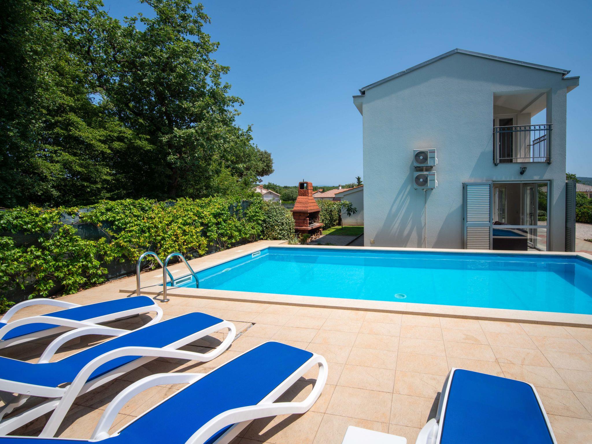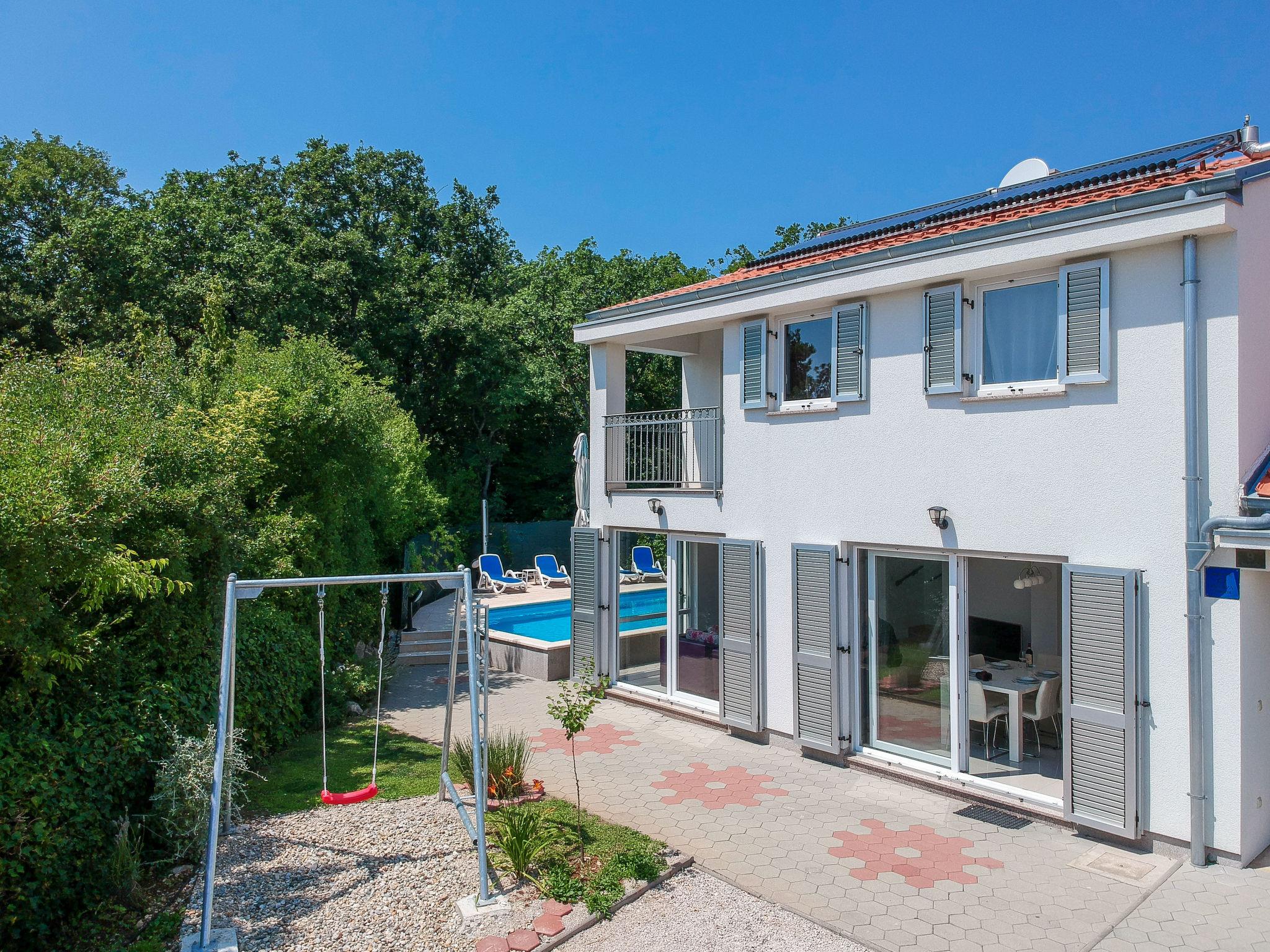 Single-family house "Graziani", 2 storeys, renovated in 2025. 350 m from the centre of Kornic, 3.5 km from the centre of Punta, in a quiet, sunny position, 1.4 km from the sea, 1.4 km from the beach, in a cul-de-sac, in the countryside. Private: property 724 m2 (fenced), swimming pool heated (32 m2, depth 150 cm, seasonal availability: 01.May. - 15.Oct.). Unconventional pool shape. Terrace (35 m2), barbecue, children's playground (swing). In the house: internet access, washing machine. Parking (for 4 cars) at the house on the premises. Shop 350 m, restaurant 1.4 km, bus stop 1.6 km, pebble beach 1.4 km, diving center 1.4 km, concrete beach 1.4 km. Walking paths from the house 1 km, cycle lane 1 km. Solar heating of the water in the swimming pool.