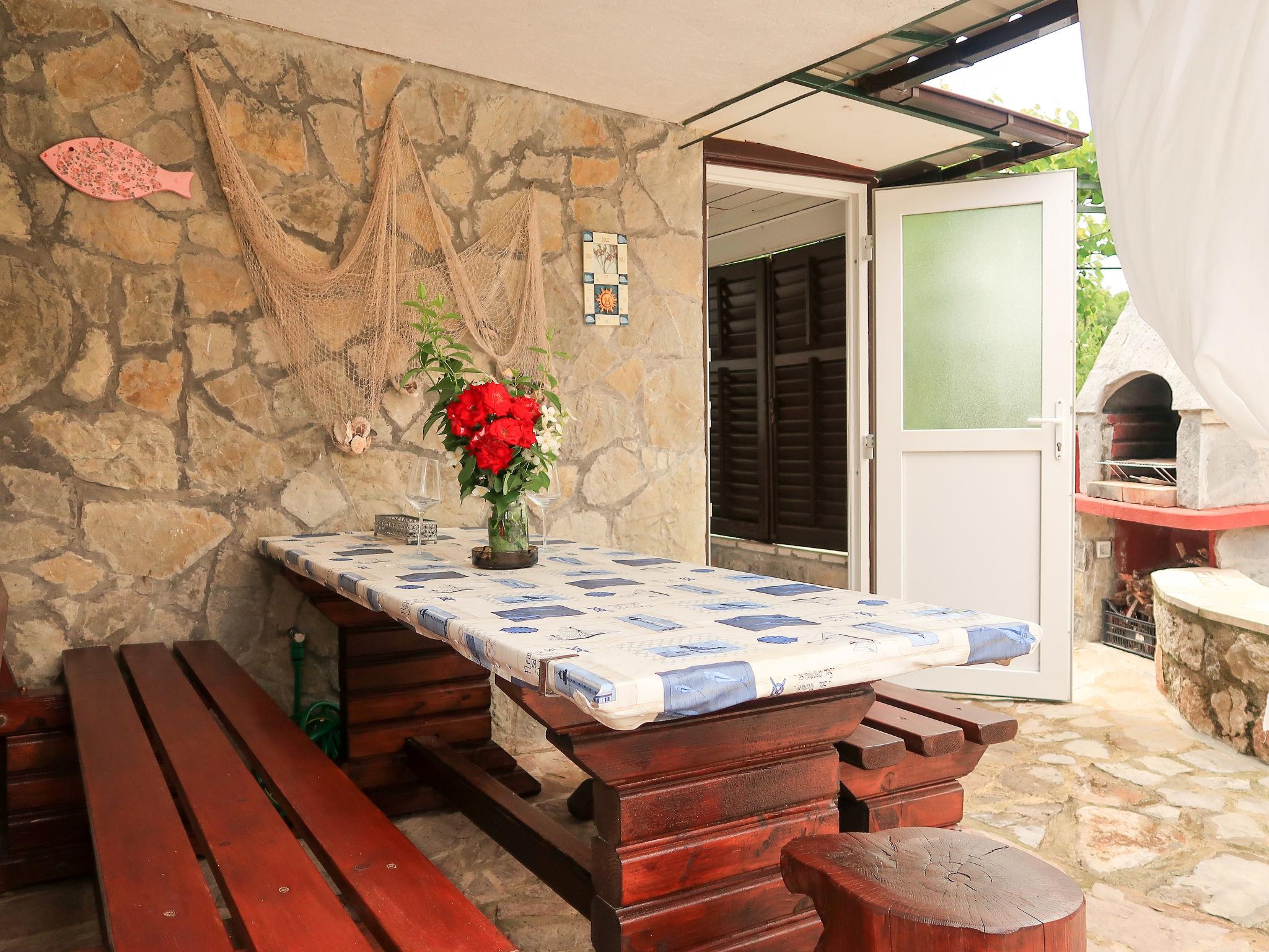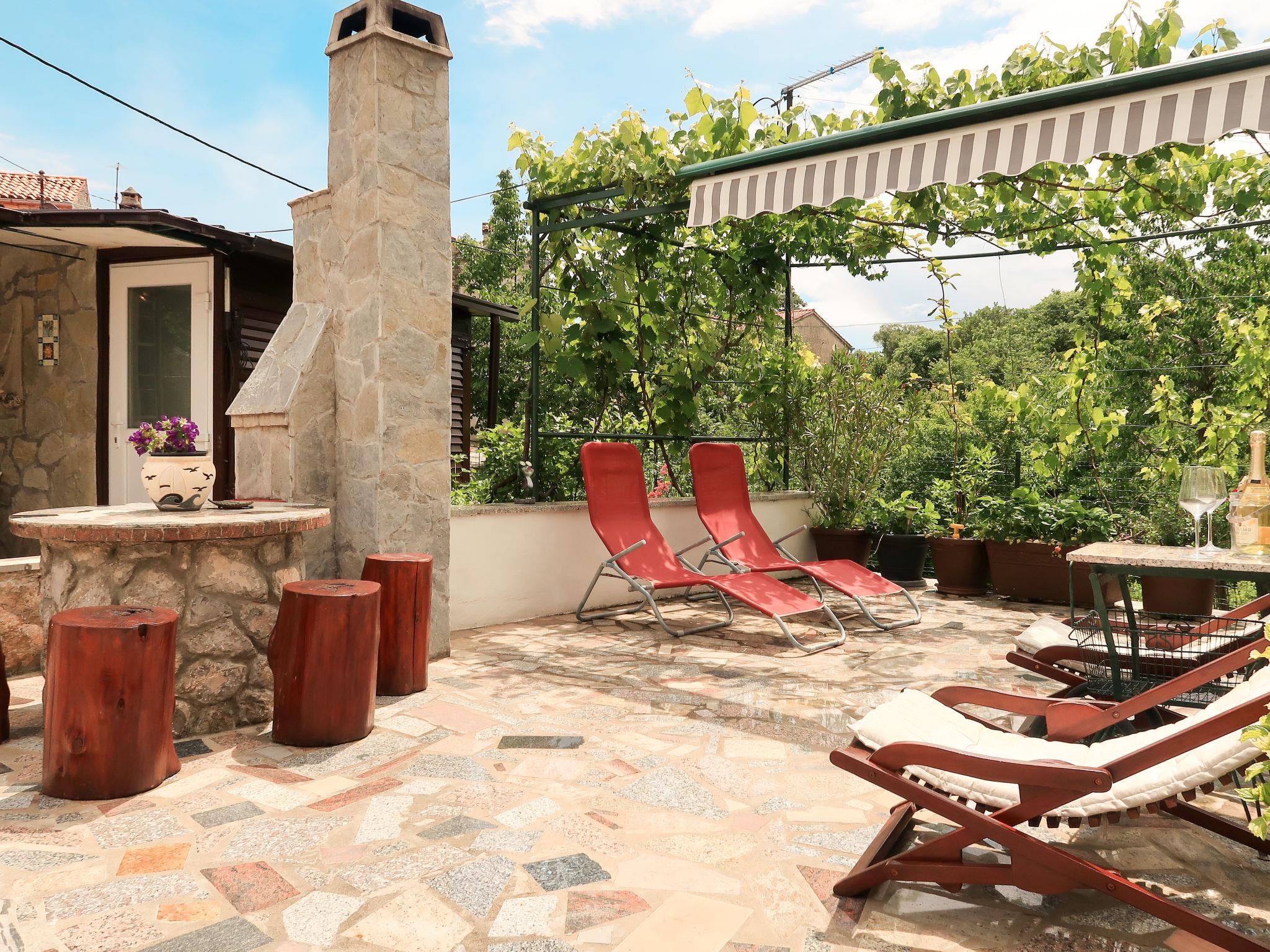 Terraced house "Margeta", 2 storeys. In the hamlet Lakmartin 5 km from the centre of Krk, 2 km from the centre of Kornic, 3.5 km from the centre of Punat, 3 km from the sea, 3 km from the beach. For shared use: property. Private: swimming pool round (2.5 m diameter, depth 80 cm, seasonal availability: 01.May. - 01.Nov.). Terrace (45 m2), garden furniture, barbecue. In the house: internet access, washing machine. Roofed, parking (for 2 cars). Shop 2 km, restaurant 3.5 km, bus stop 2 km, pebble beach 3 km. Please note: airfield 25 km from the property. For privately use: summer kitchen (4 ceramic hobs, dishwasher, fridge). The owner lives on the edge of the property (access via terrace, 45 m2).