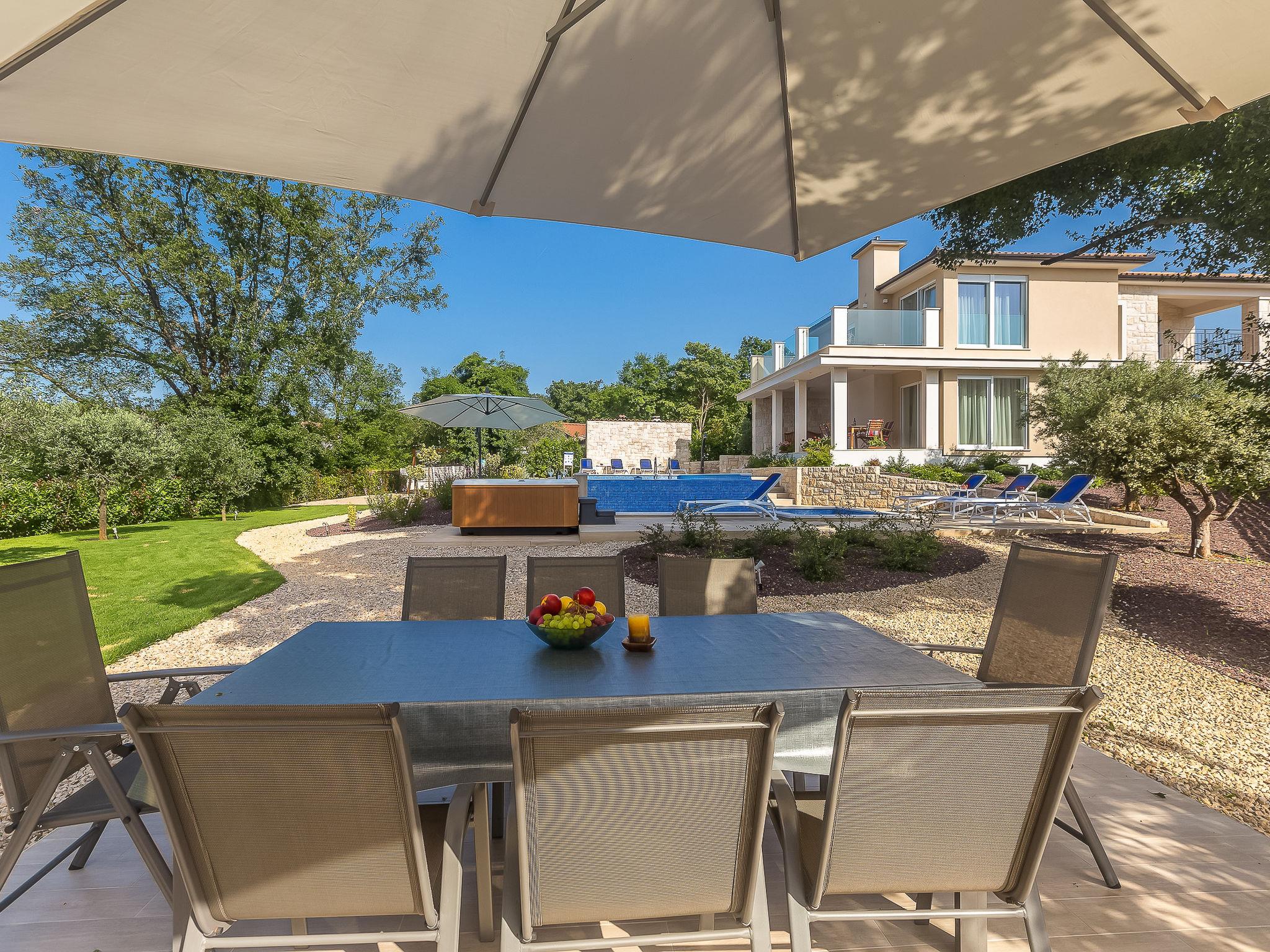 Beautiful villa "Roko", 3 storeys. In the hamlet Ljutici 2.5 km from the centre of Malinska, in a quiet, sunny position, 2.5 km from the sea, 2.5 km from the beach, in the countryside. Private: property 1'200 m2, swimming pool angular (10 x 3 m, depth 150 cm, seasonal availability: 01.May. - 31.Oct.). Paddling pool, outdoor shower, hot tub, terrace (100 m2). In the house: internet access, sauna, relaxation room, billiard table, washing machine, tumble dryer. Parking (for 4 cars) at the house on the premises. Shop 2 km, supermarket 4 km, restaurant 2 km, bus stop 1.3 km, pebble beach 2.5 km, public bathing area 2.5 km, concrete beach 2.5 km. Groups of teenagers on request only. By groups of young people double deposit is requested on arrival.