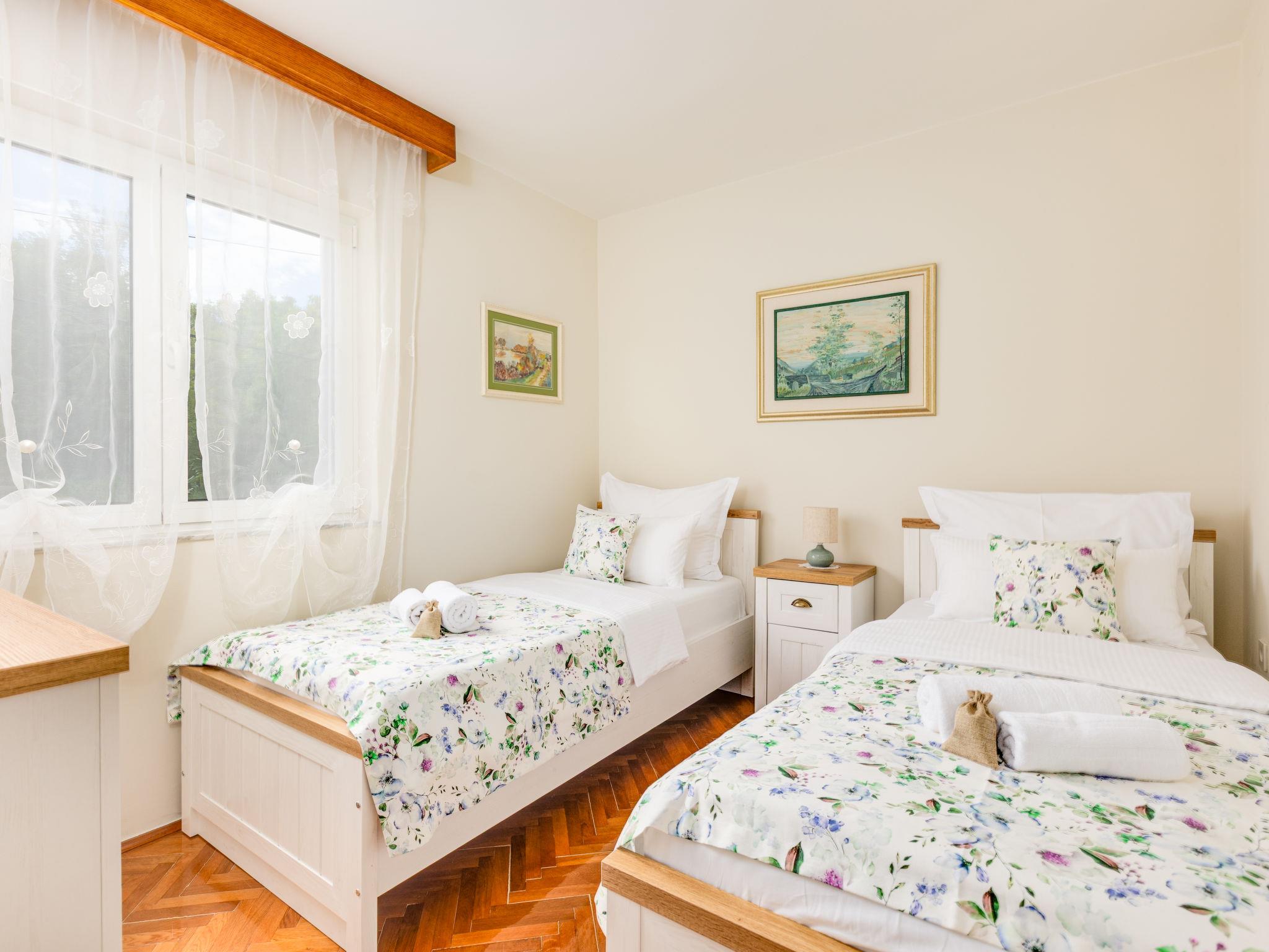 Cosy single-family house "Villa Gisela", 2 storeys, detached. In the hamlet Vantacici 3 km from the centre of Malinska, 10 m from the sea, 50 m from the beach, direct access to the beach. Private: property 600 m2 (fenced) with natural garden. Barbecue, parking (for 2 cars) at the house on the premises. Shop 100 m, supermarket 3.5 km, bakery 80 m, bus stop 100 m, pebble beach 50 m. Groups of teenagers on request only. Please note: airfield 18 km from the property.