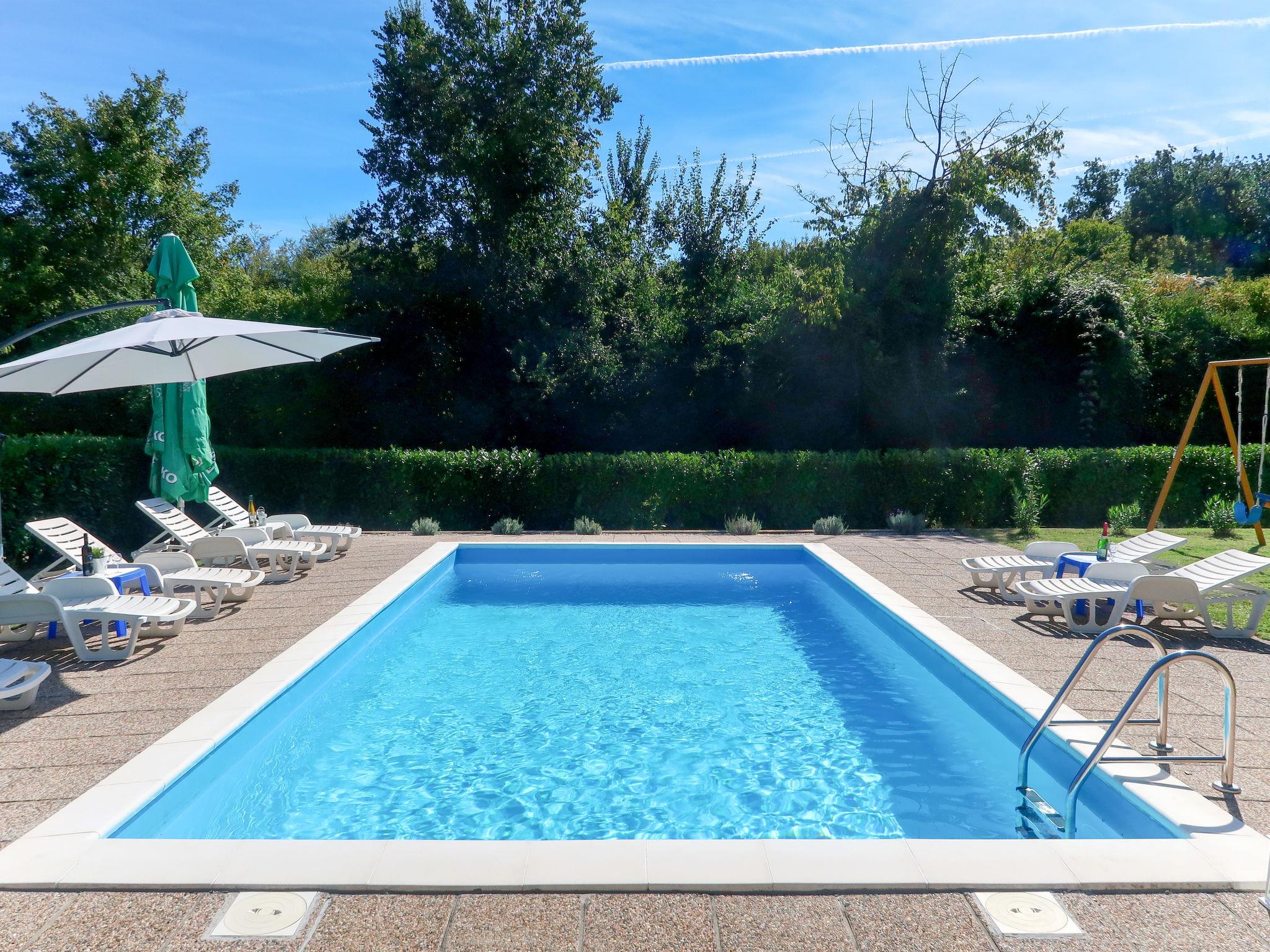 Apartment house "Radmila". In the hamlet Sveti Vid Dobrinjski 10 km from the centre of Malinska, 1 km from the centre of Dobrinj, 14.5 km from the centre of Krk, in a quiet position, 4 km from the sea, 4 km from the beach, in the countryside. For shared use: property 1'500 m2 (fenced) with lawn, swimming pool (8 x 4 m, depth 150 cm, seasonal availability: 15.May. - 01.Oct.). Outdoor shower, patio, terrace, garden furniture, barbecue. In the house: internet access. Parking on the premises. Shop, grocery 500 m, bus stop 1 km, pebble beach 6 km, rocky beach 4 km. The owner does not accept any youth groups. Please note: the owner lives in the same residence. Airfield 15 km from the property.