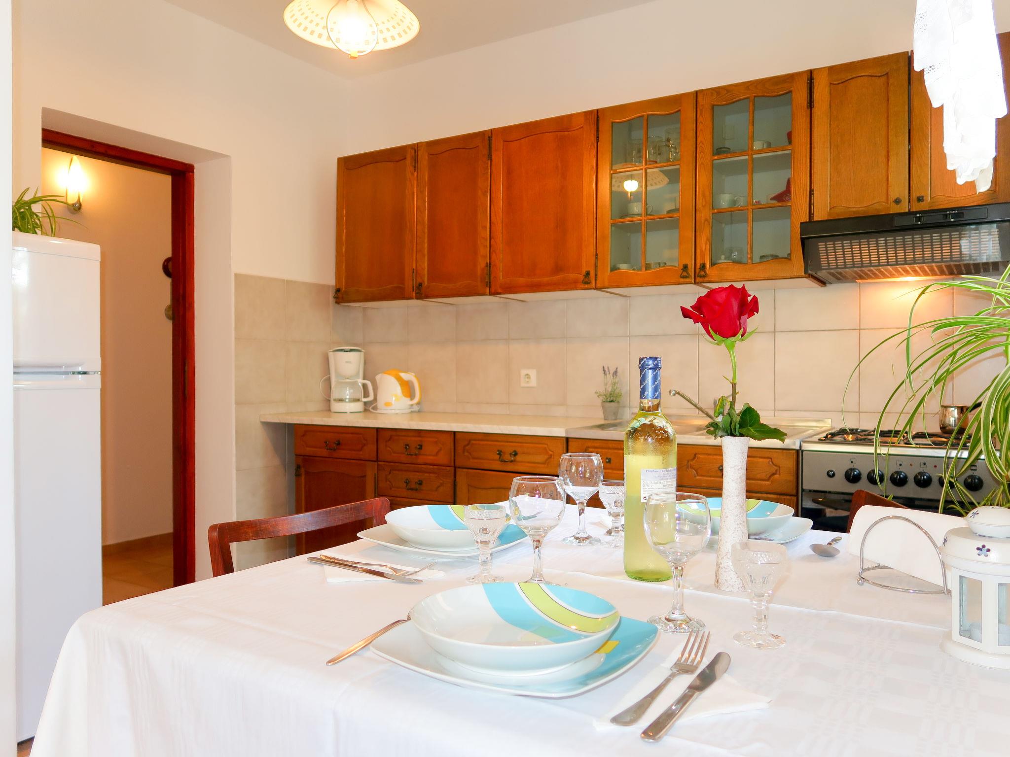 "Vera", 2-room apartment 40 m2, on the ground floor. Living/sleeping room with satellite TV. Exit to the terrace. 1 room with 1 double bed (2 x 90 cm, length 190 cm). Dining room. Open kitchen (1 hot plate, oven, 3 gas rings, toaster, kettle, microwave, freezer, electric coffee machine). Shower/WC. No heating option. Terrace. Terrace furniture, deck chairs (2). Facilities: hair dryer. Internet (WiFi, free). Please note: non-smoking house.