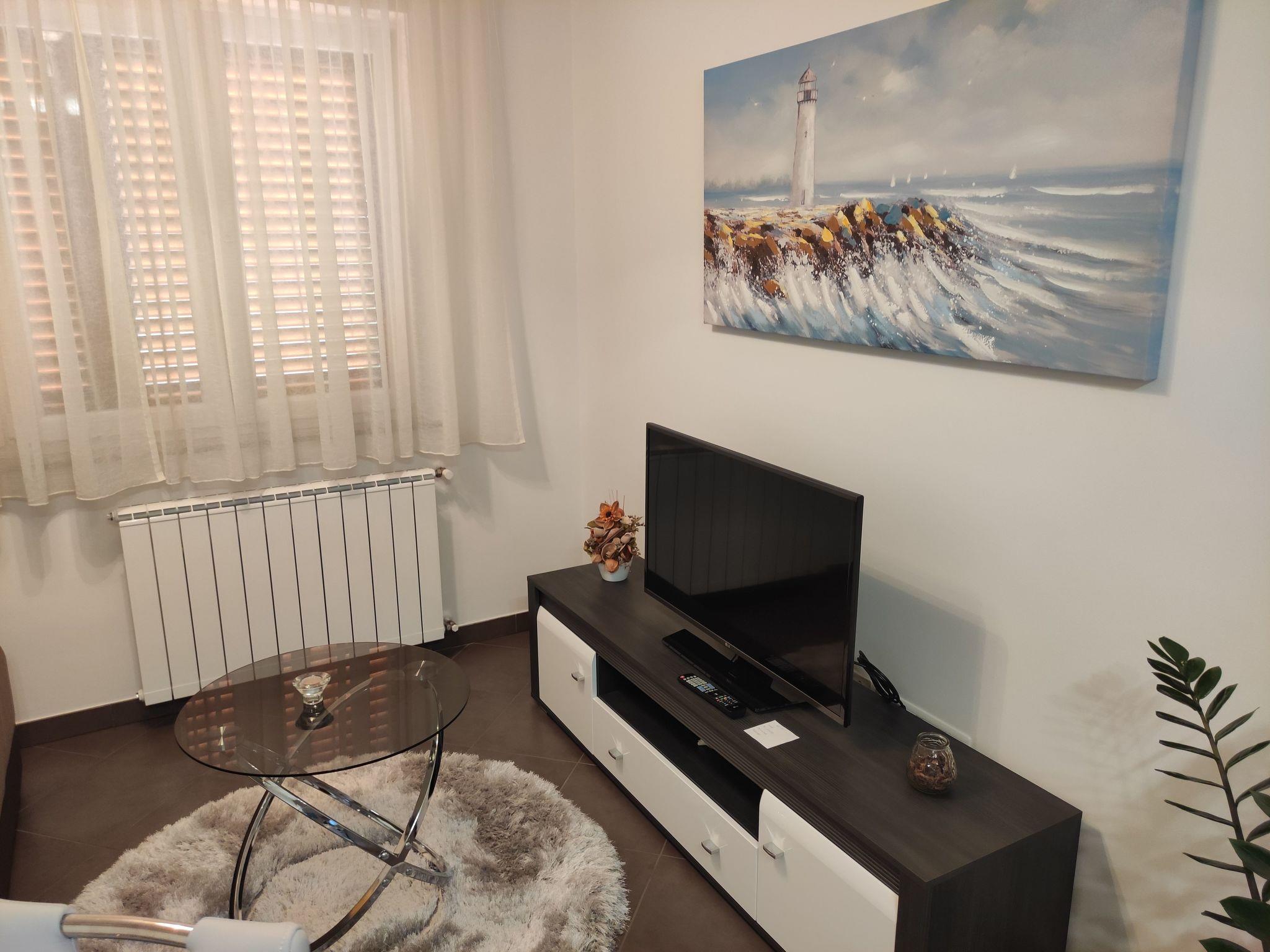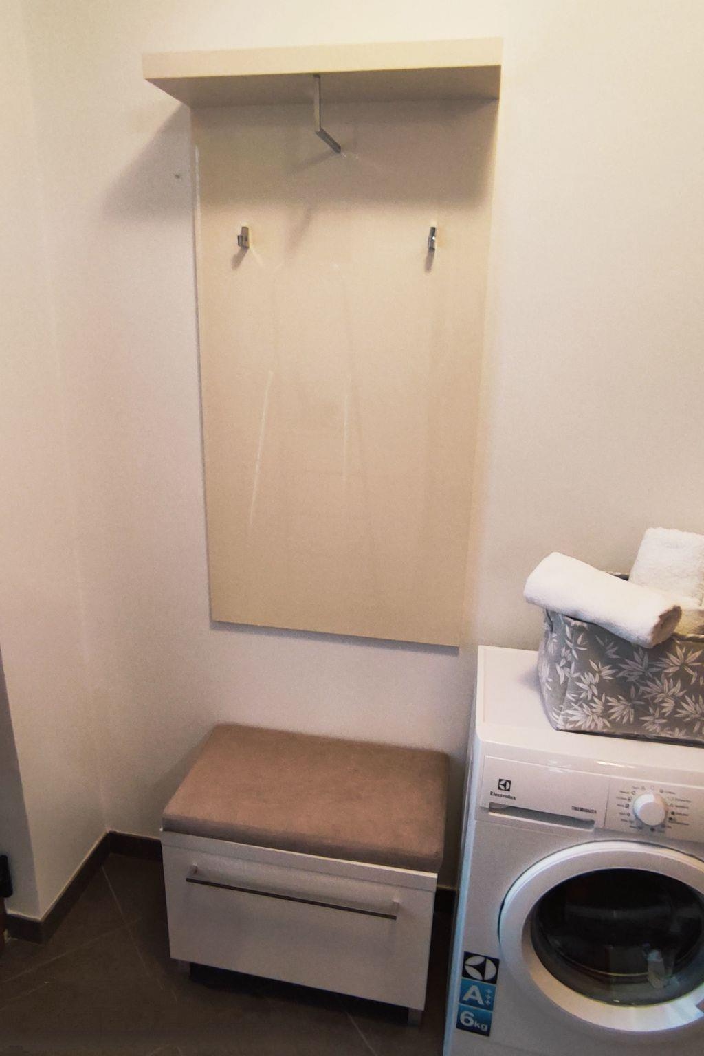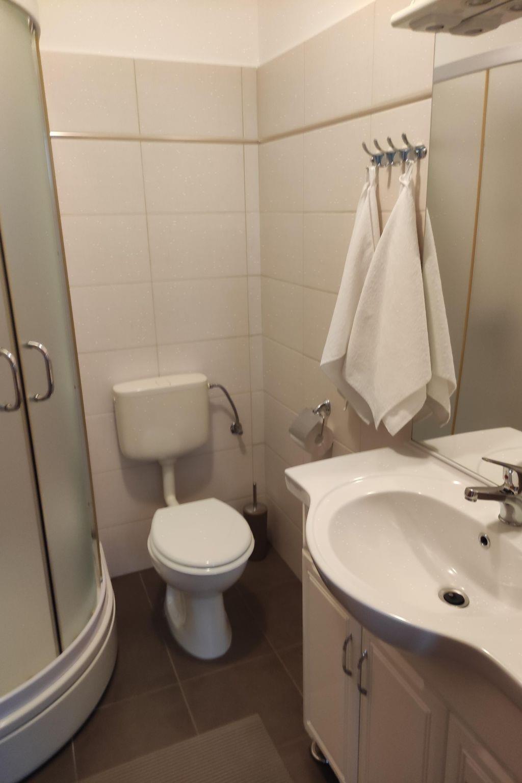 The 40m² apartment is on the first floor and can accommodate two to four people. It has a bathroom with a shower and a bedroom with a double bed (180 x 200cm). The spacious living room-kitchen has a dining area, a sitting area with a double sofa bed (140 x 190cm) and a kitchen unit, equipped with a stove, oven, fridge, microwave and coffee machine. Terrace is front of spartment cca 4 sq. meters.