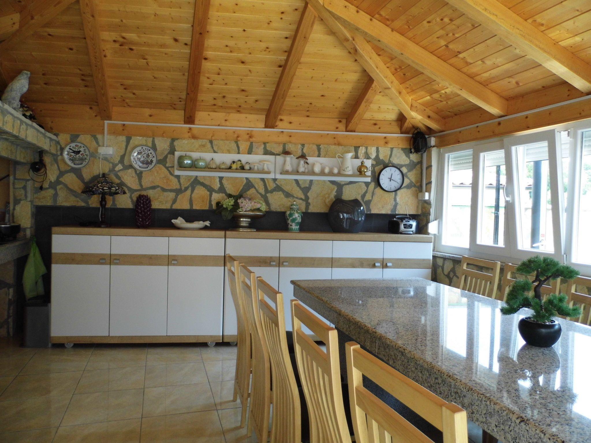 There is dinning table with chairs for all. Kitchen and dinning area are connected (same space) with living room, where is Sat Tv, air condition, sofa where can be prepared an extra bed suitable only for child till 12 years old.