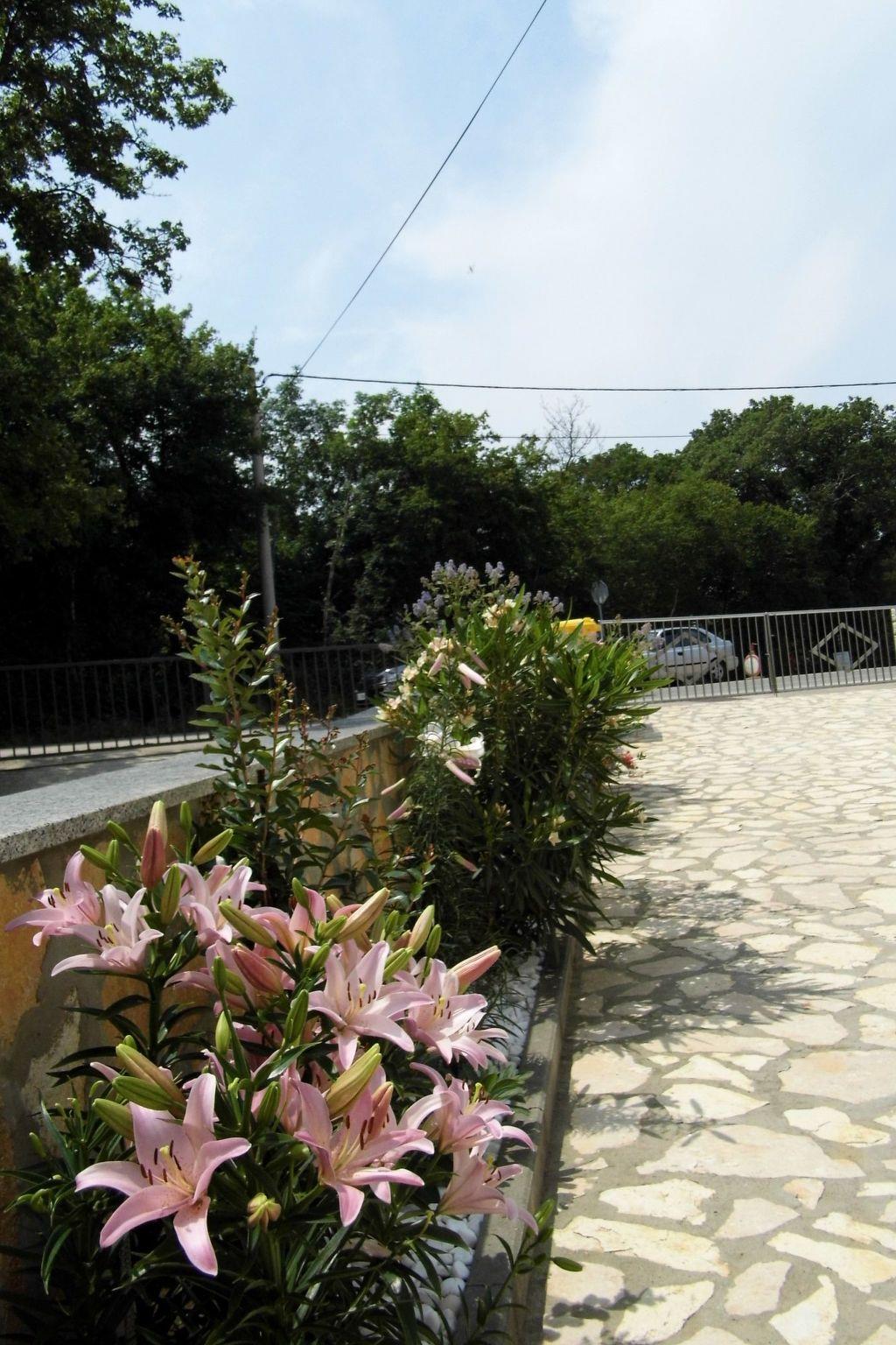 It is completely enclosed yard, with private parking, terrace with garden furniture, outside shower,