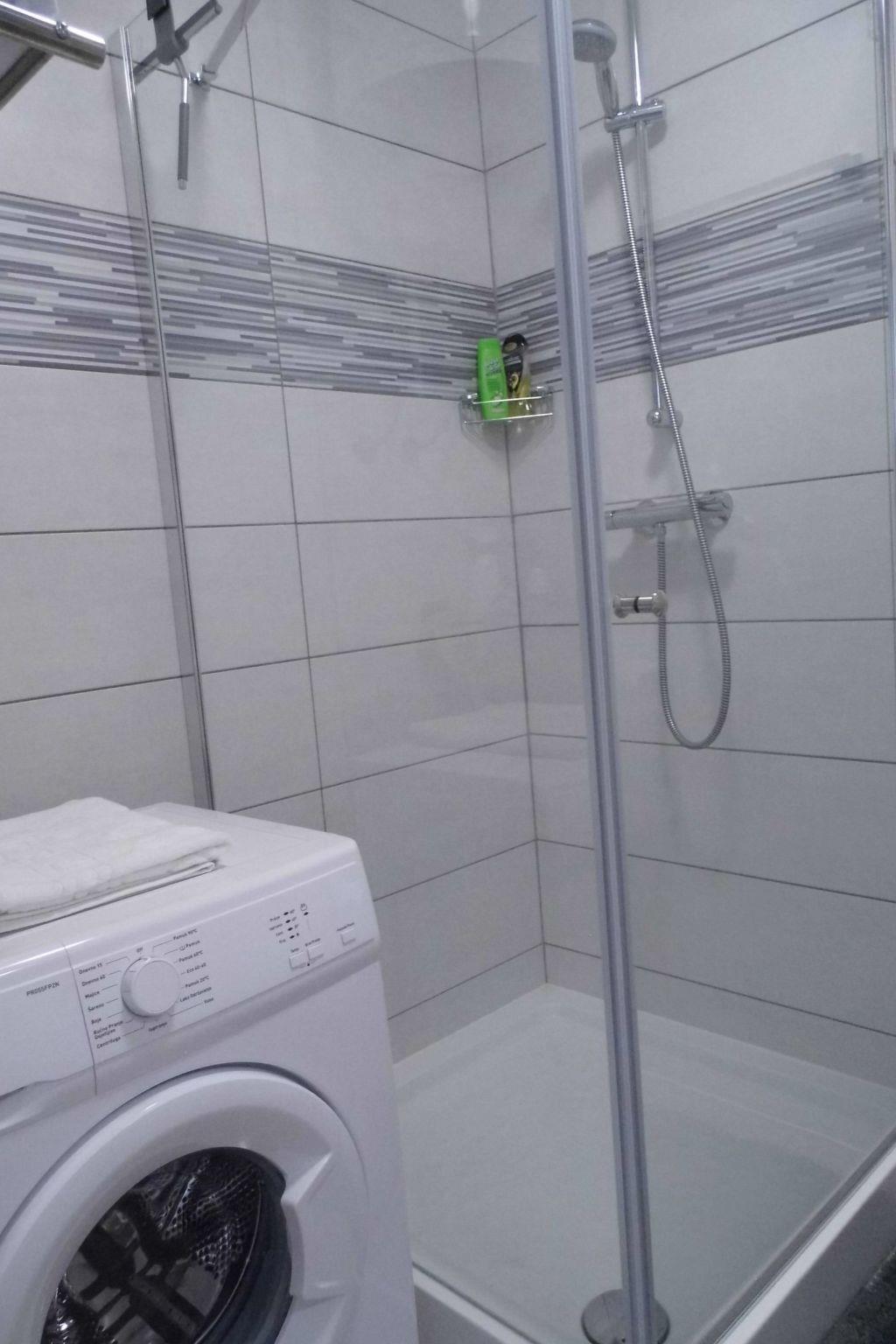 Apartment is situated on the first floor of the house, approximately 50m2. It has nice modern kitchen with electric stove, oven, dish washer, coffee machine, fridge with freezing compartment.