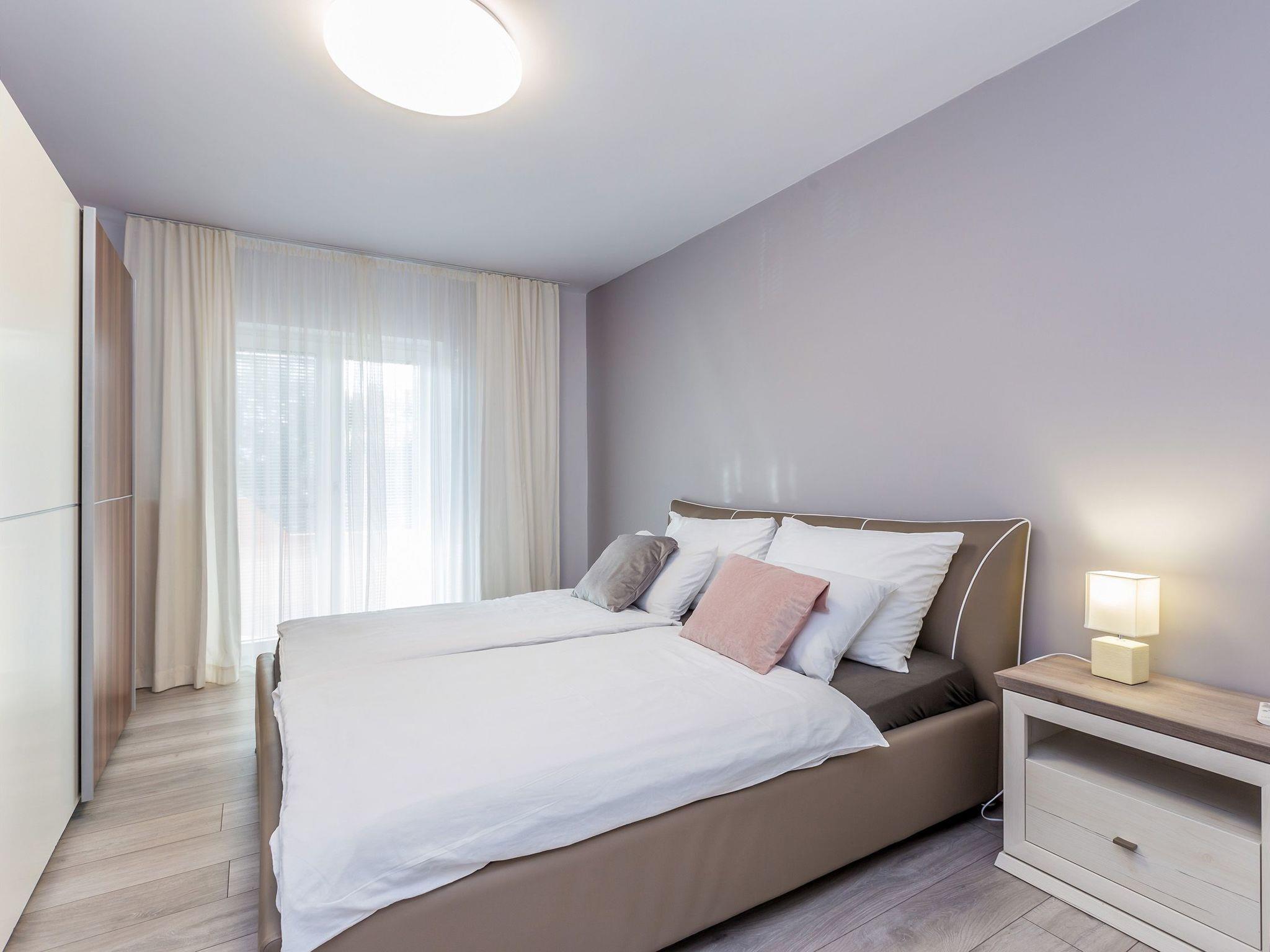 Inside, the accommodation impresses with its practical and welcoming furnishings. The two bedrooms offer plenty of space for rest and relaxation. A cosy seating area with a minibar and coffee machine invites you to relax. Thanks to the partial air conditioning, the climate is pleasant even on warmer days. The communal washing machine in the building is a practical addition for longer stays.