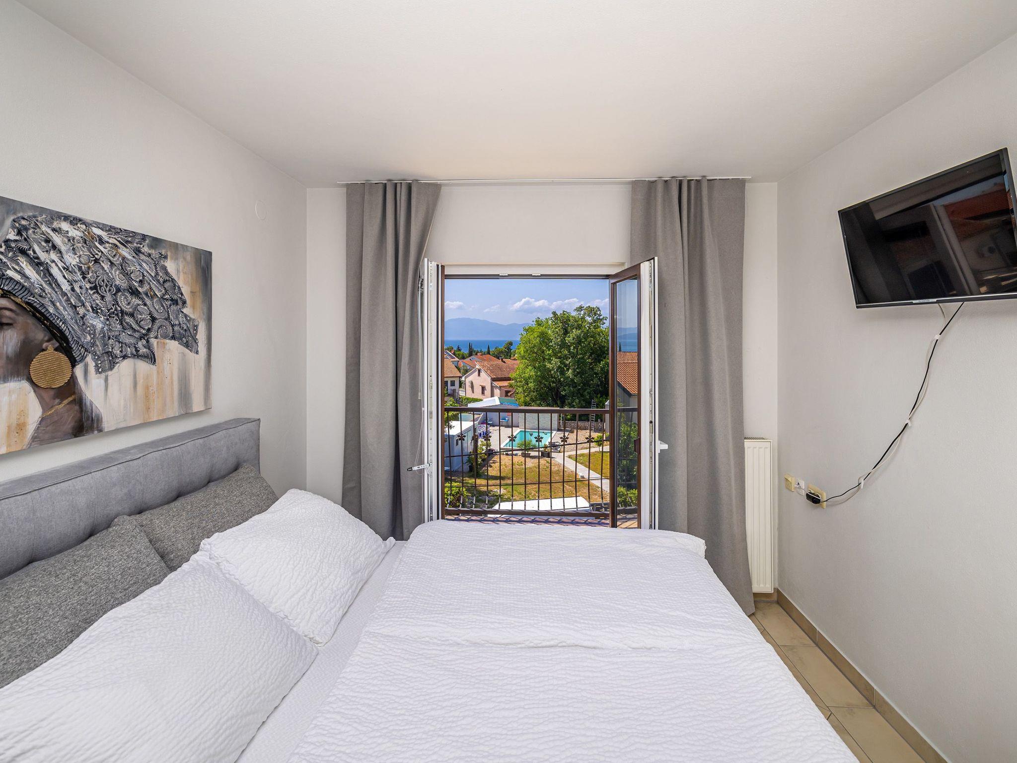 Discover your charming guest room in Radici, located in the picturesque Kvarner Bay. Perfect for couples who want to enjoy a relaxing break, this guest room on the second floor offers a wonderful setting for your holiday. With its beautiful sea view, a cosy seating area including a minibar and a separate sleeping area, you will find everything you need for a comfortable stay. Enjoy the peace and charm of your holiday home, complemented by amenities such as two televisions and mosquito nets, while you can regulate the fresh breeze with the help of the fan provided.