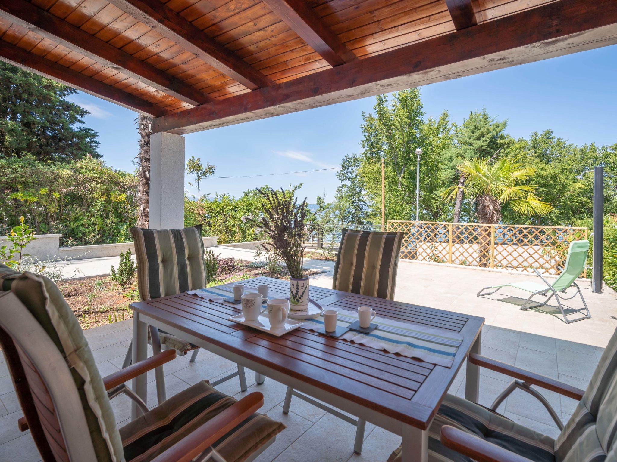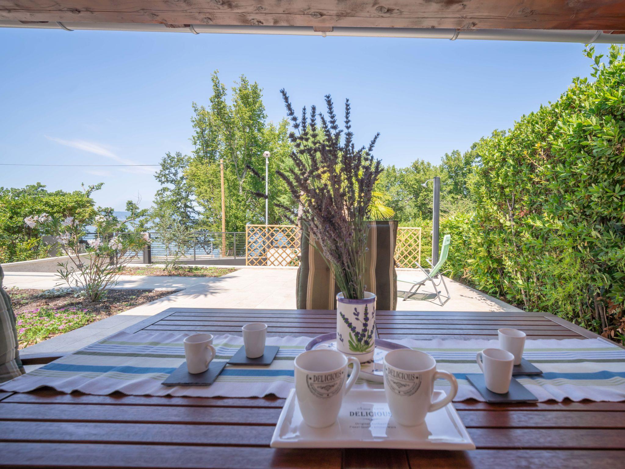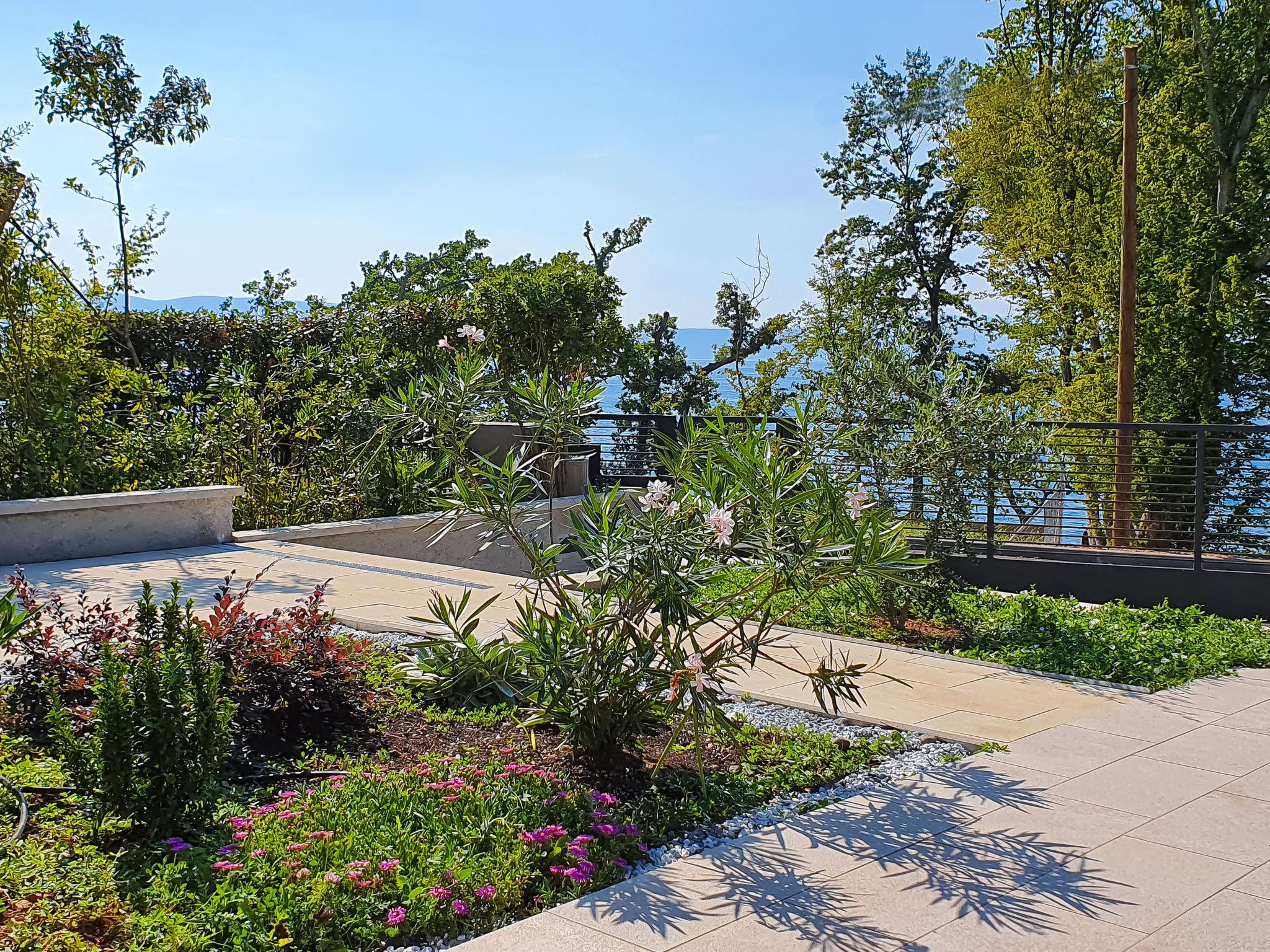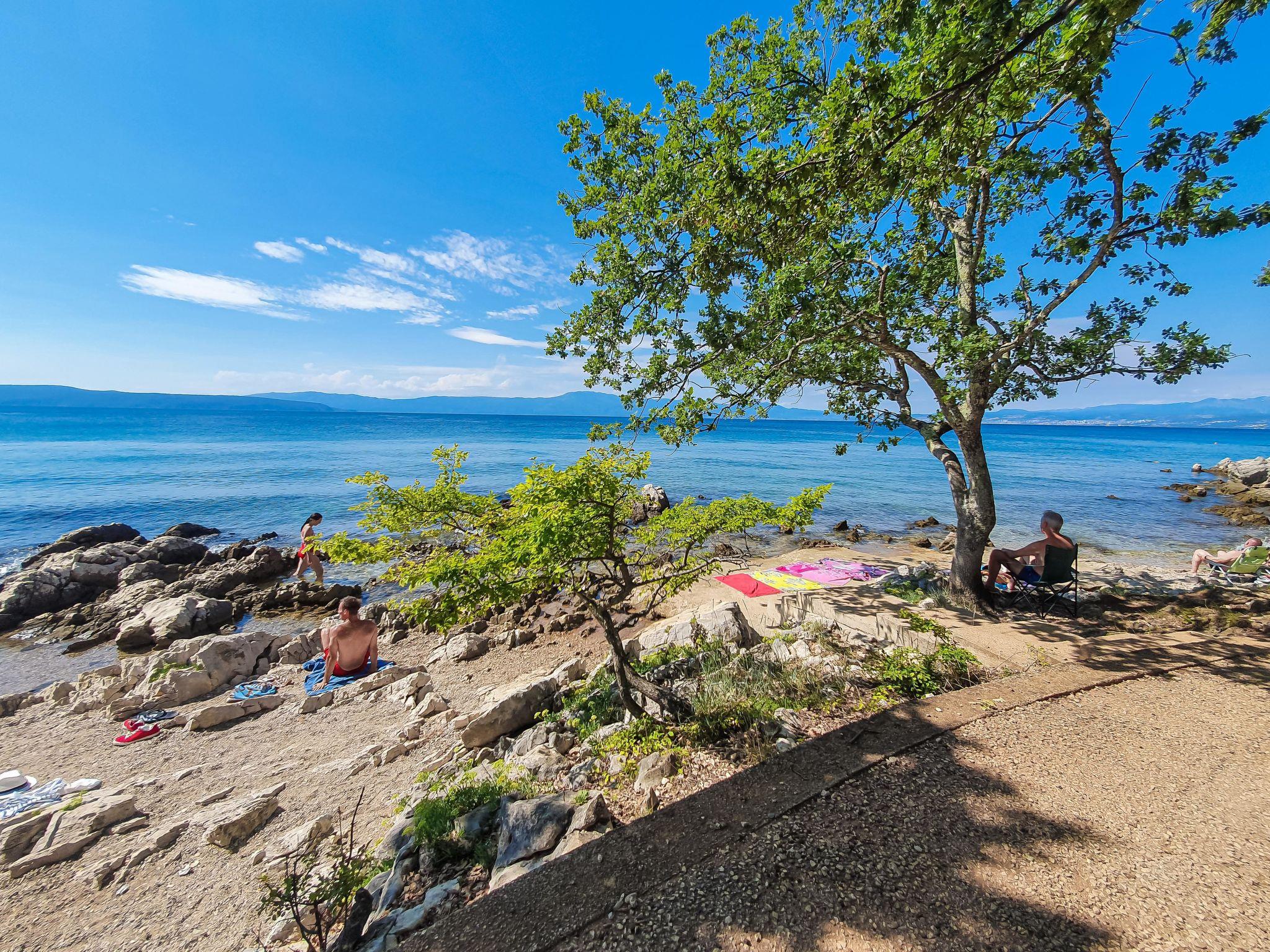 Beautiful single-family house "Natali", renovated in 2020. 1.5 km from the centre of Njivice, in a quiet, sunny position, 20 m from the sea, 20 m from the beach, in the countryside. Private: property 400 m2 (fenced), wildlife garden. Outdoor shower, barbecue. In the house: internet access, washing machine. Parking at the house on the premises. Shop 1.5 km, supermarket 3.5 km, restaurant 1.5 km, bus stop 550 m, pebble beach, rocky beach 20 m, public bathing area 200 m. Please note: 1st floor is closed and not occupied.
