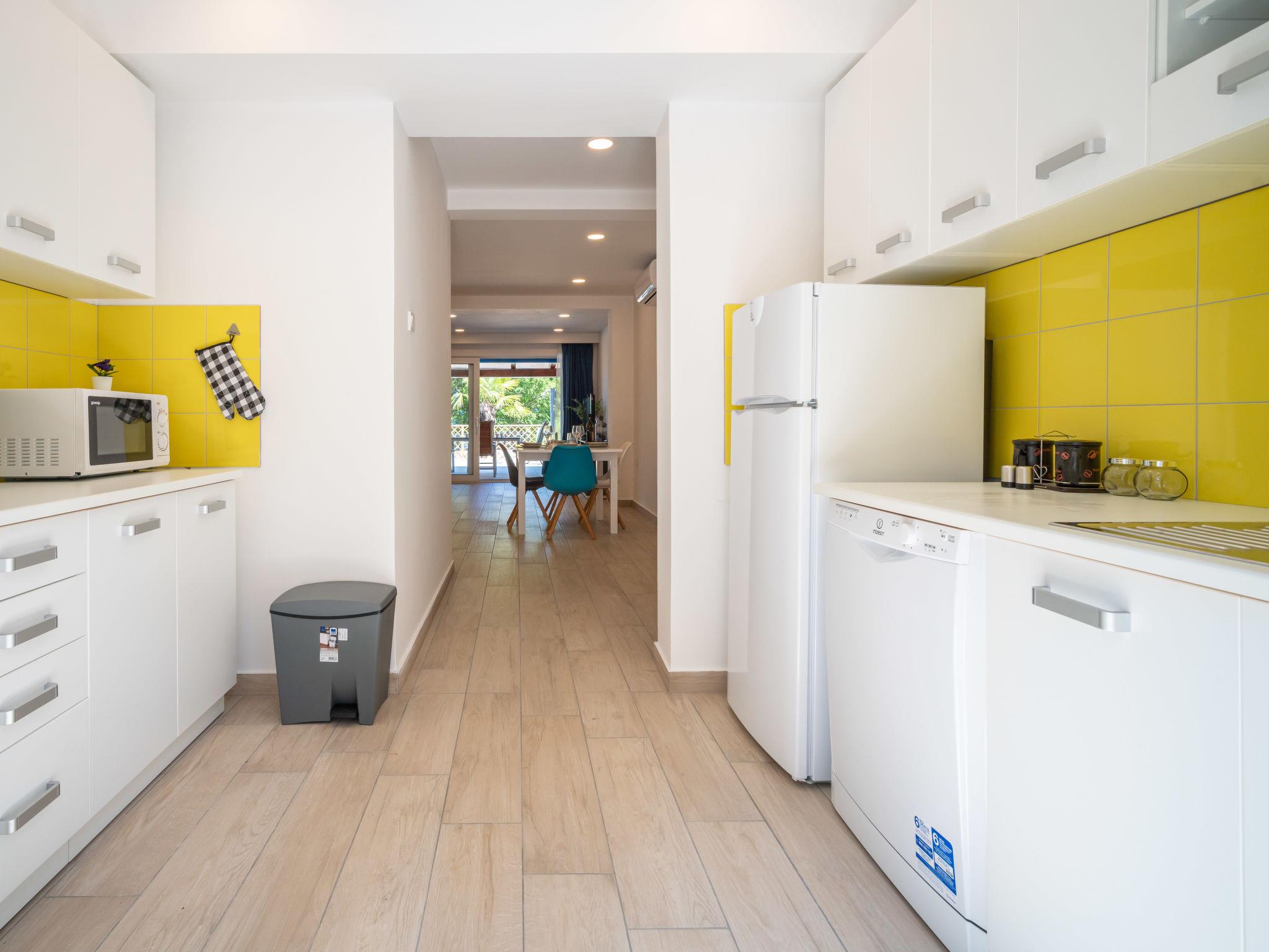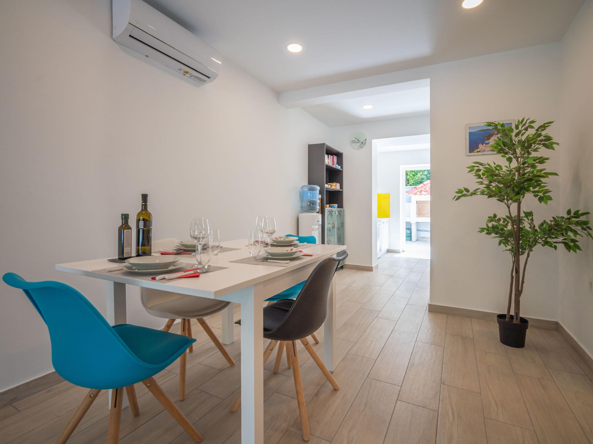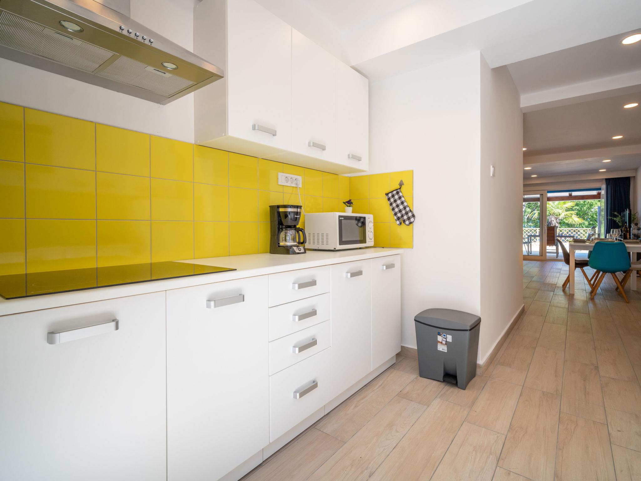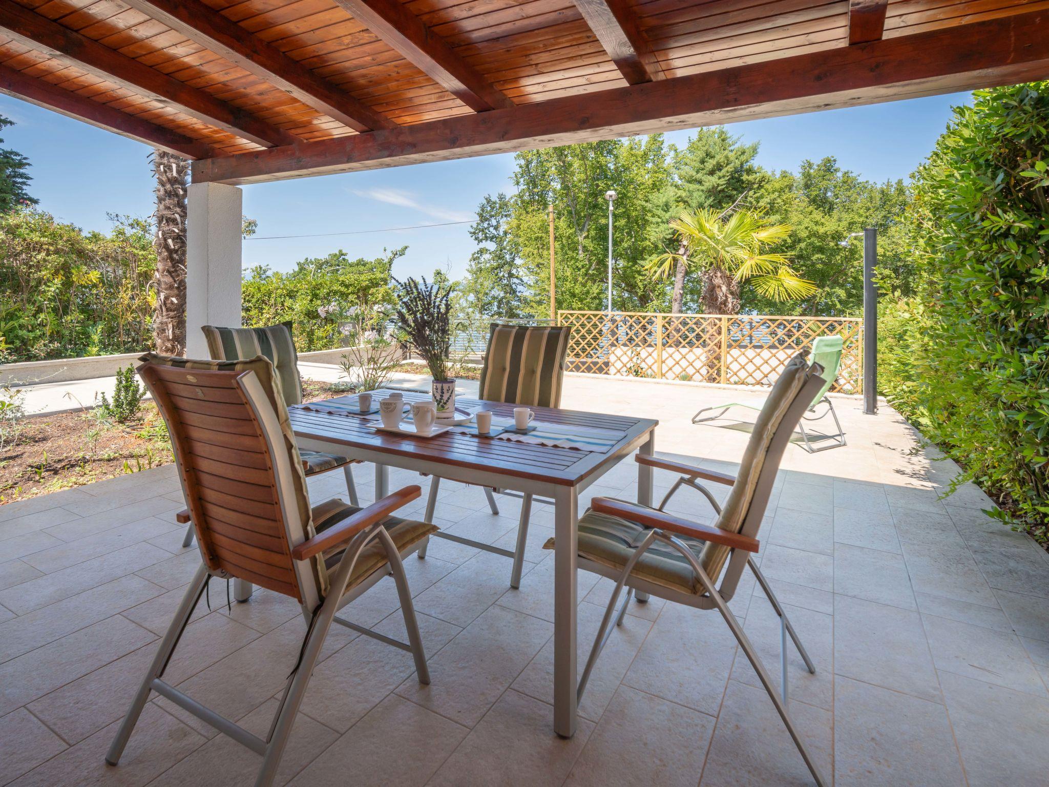 Beautiful single-family house "Natali", renovated in 2020. 1.5 km from the centre of Njivice, in a quiet, sunny position, 20 m from the sea, 20 m from the beach, in the countryside. Private: property 400 m2 (fenced), wildlife garden. Outdoor shower, barbecue. In the house: internet access, washing machine. Parking at the house on the premises. Shop 1.5 km, supermarket 3.5 km, restaurant 1.5 km, bus stop 550 m, pebble beach, rocky beach 20 m, public bathing area 200 m. Please note: 1st floor is closed and not occupied.