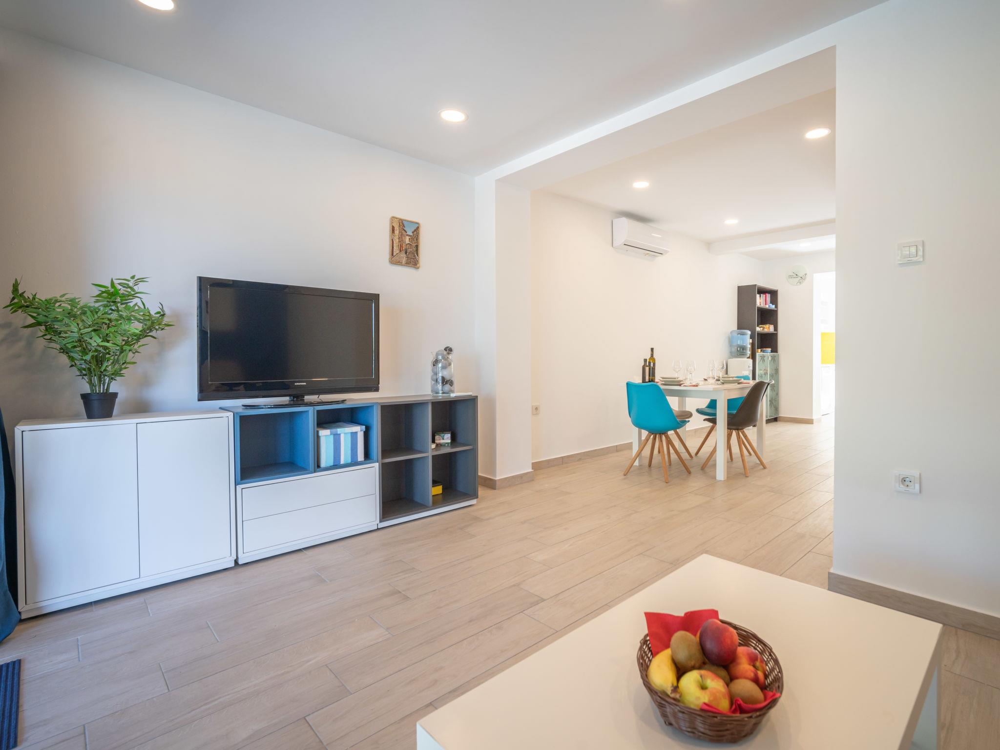 3-room house 85 m2, south facing position. Cosy furnishings: living/dining room 25 m2 with TV (flat screen), air conditioning. Exit to the terrace. 1 room 10 m2 with 1 french bed (160 cm, length 200 cm). 1 room 10 m2 with 1 french bed (140 cm, length 200 cm). Open kitchen (dishwasher, 4 ceramic glass hob hotplates, kettle, microwave, freezer, electric coffee machine). Exit to the terrace. Shower/WC. Floor heating (extra). Terrace 45 m2 partly roofed, terrace 40 m2. Terrace furniture. Partial view of the sea. Facilities: hair dryer. Internet (WiFi, free). Maximum 1 pet/ dog allowed.